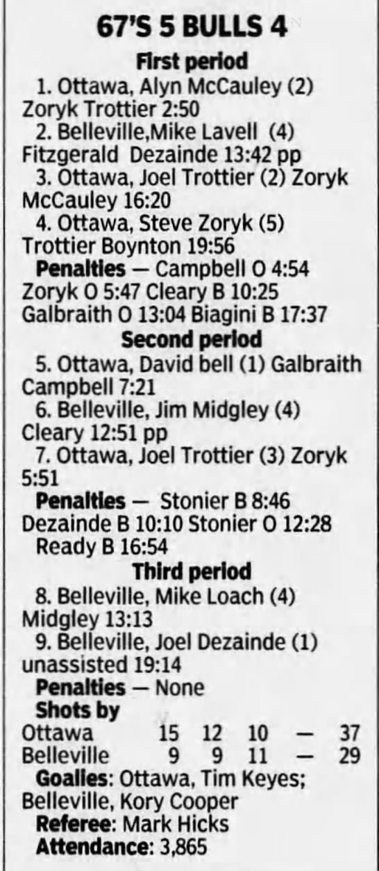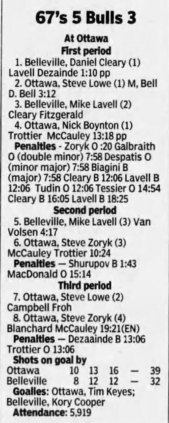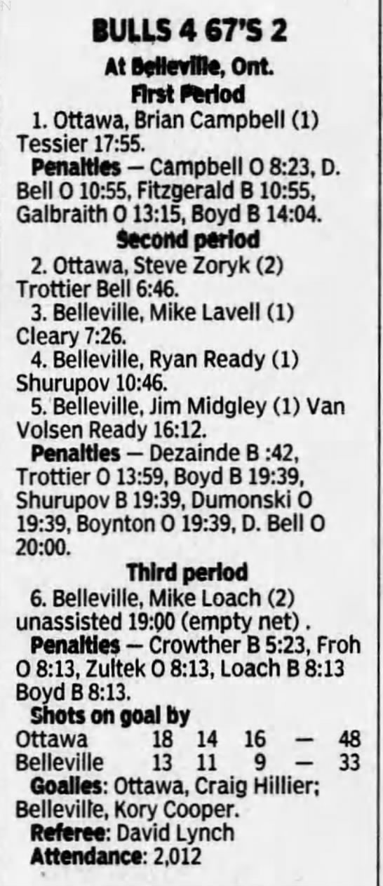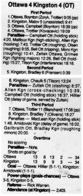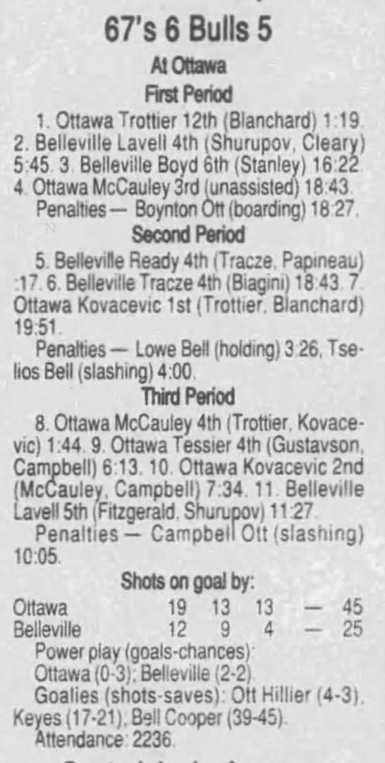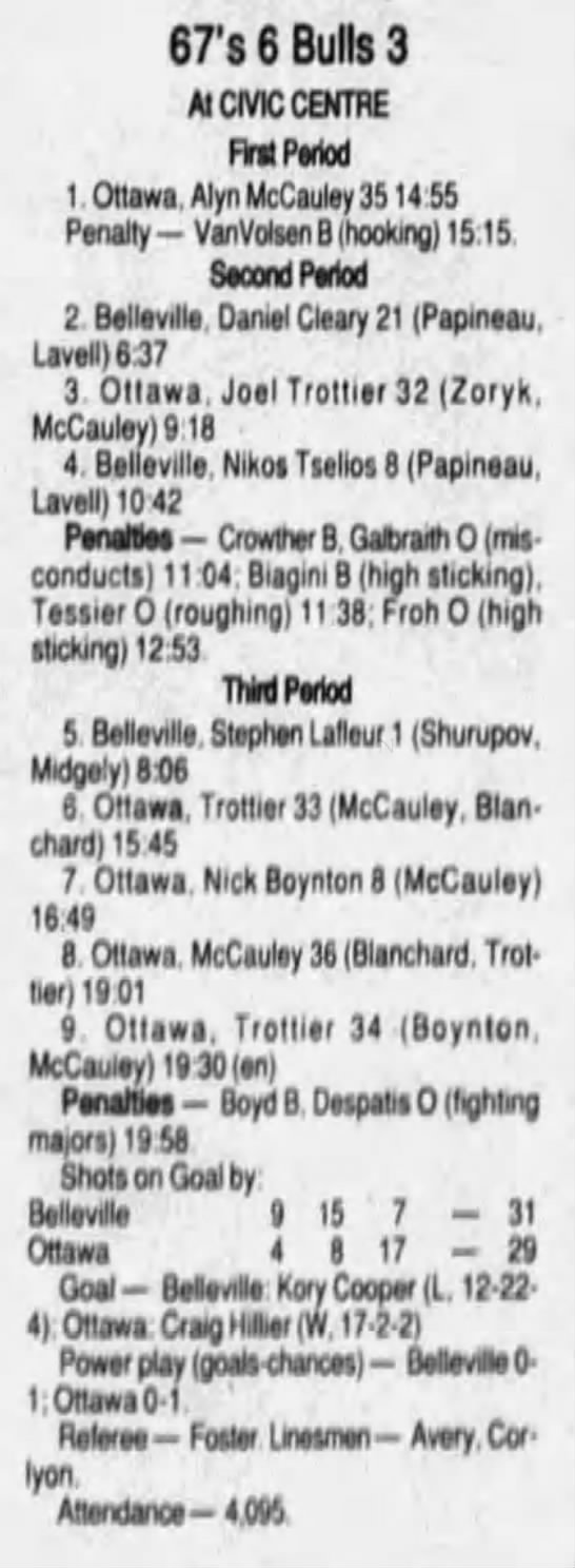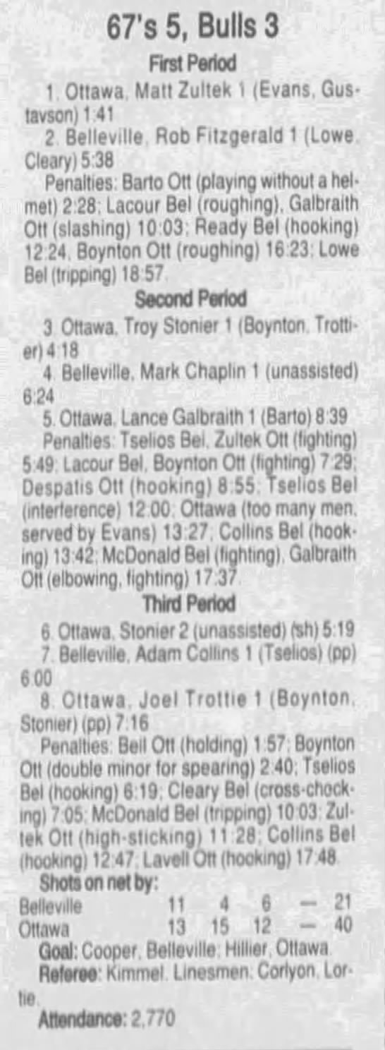 January 1 1997- Ottawa @ Belleville (6-3 Ottawa)