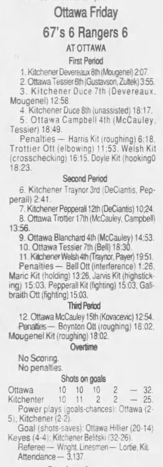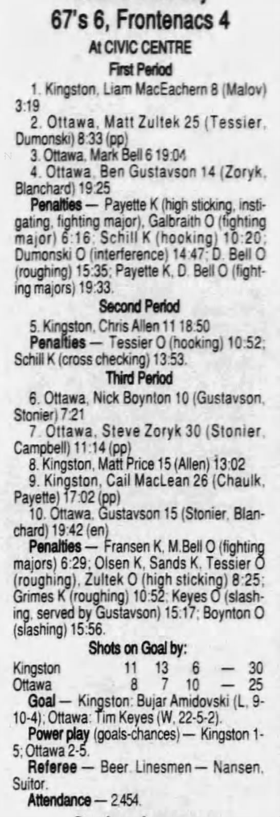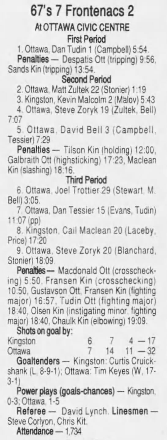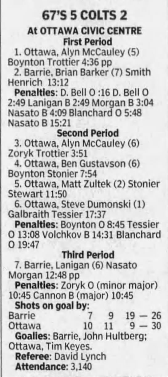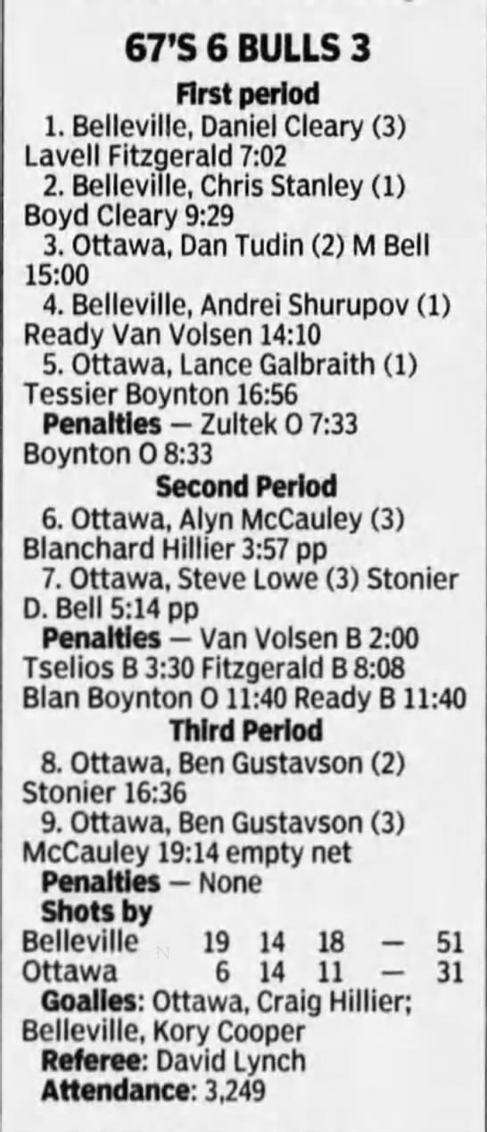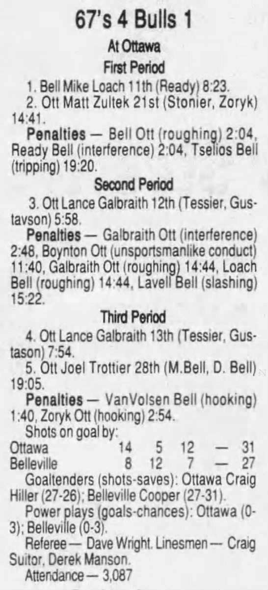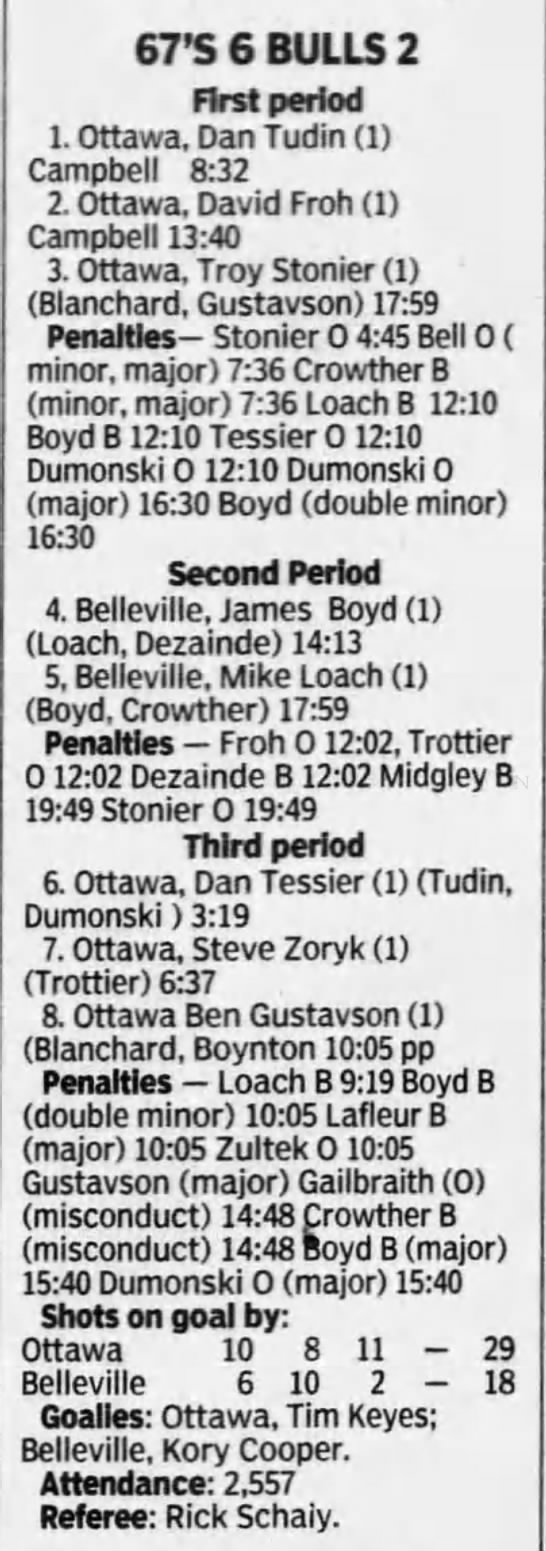 January 1 1997- Ottawa @ Belleville (6-3 Ottawa)