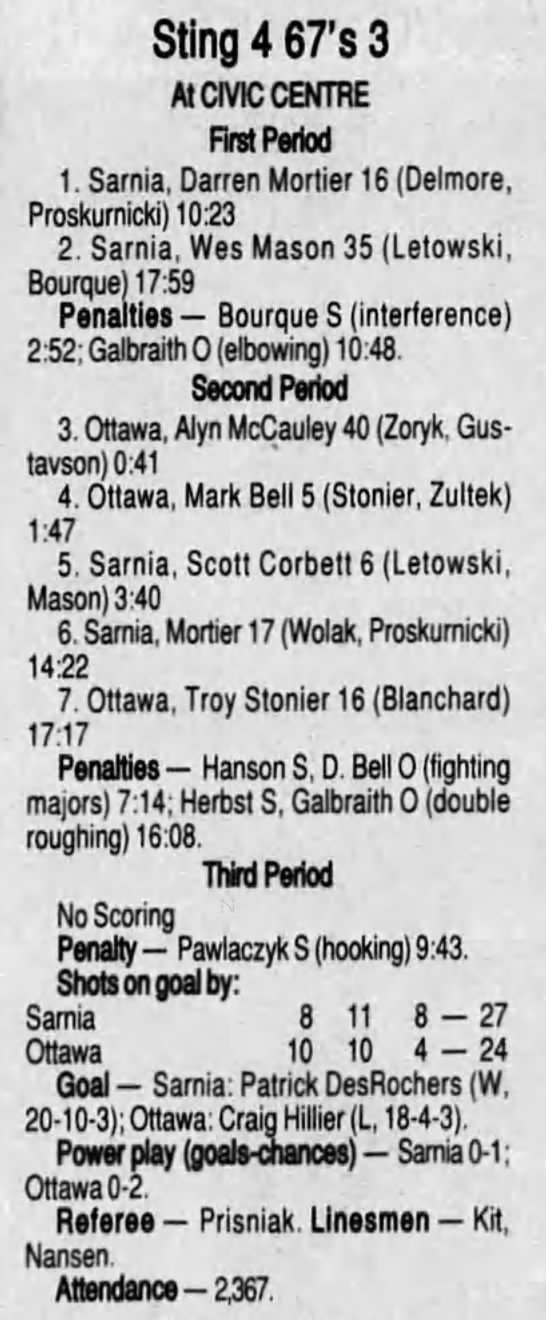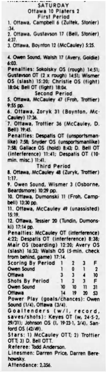 December 6 1996- Ottawa @ Sarnia (9-2 Ottawa)