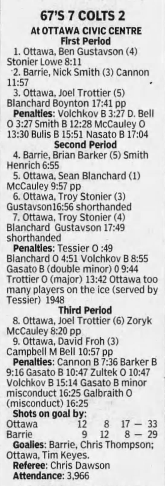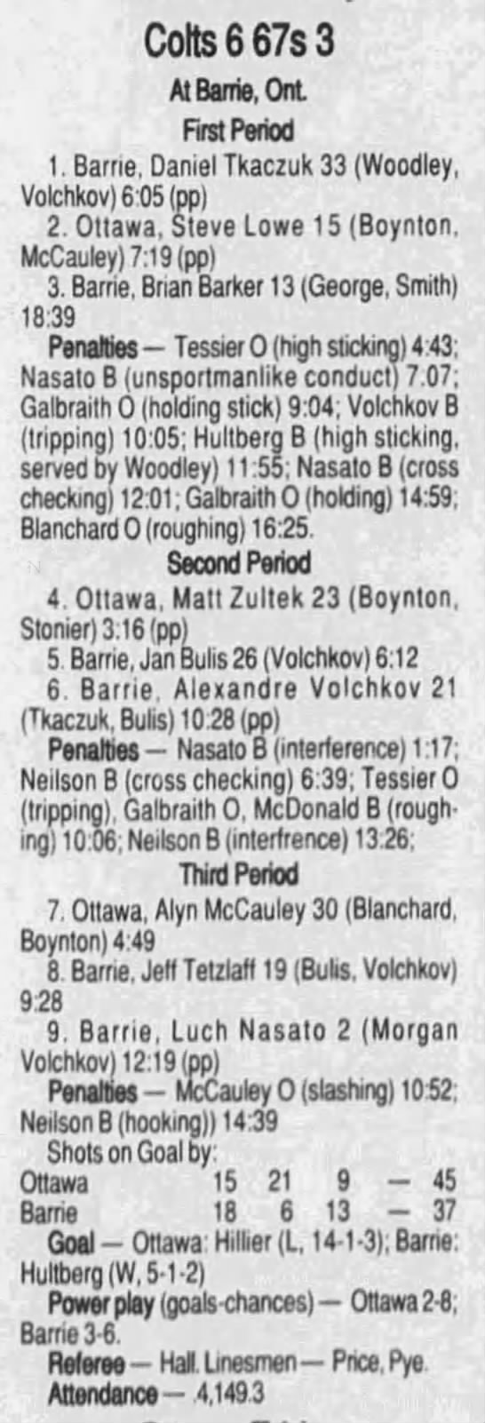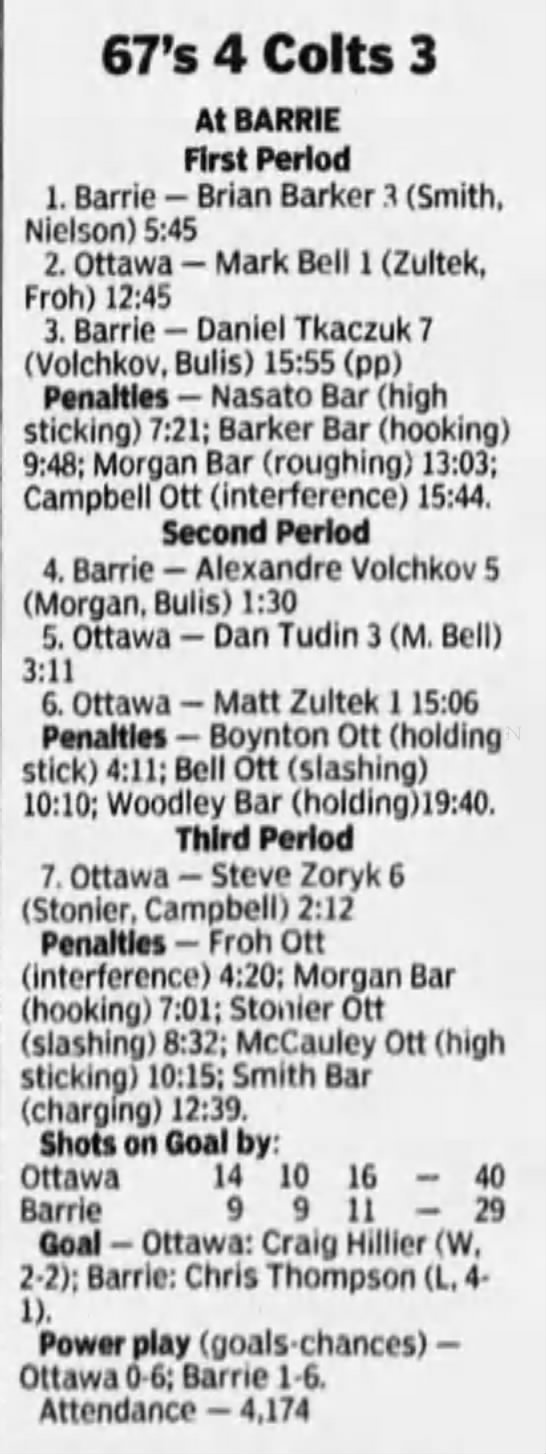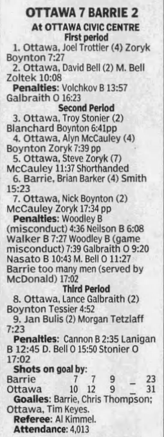 October 20 1996- Barrie @ Ottawa (7-5 Ottawa)