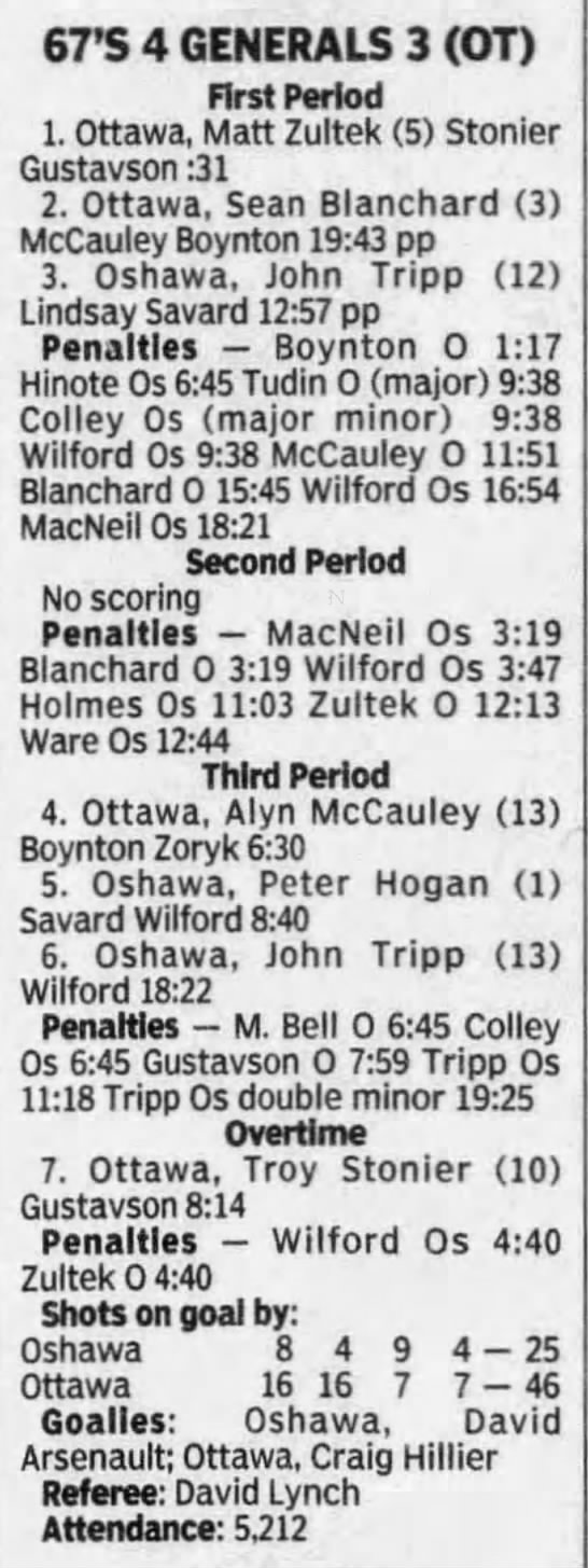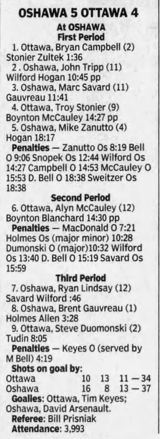 December 29 1996- Ottawa @ Oshawa (4-3 Ottawa)