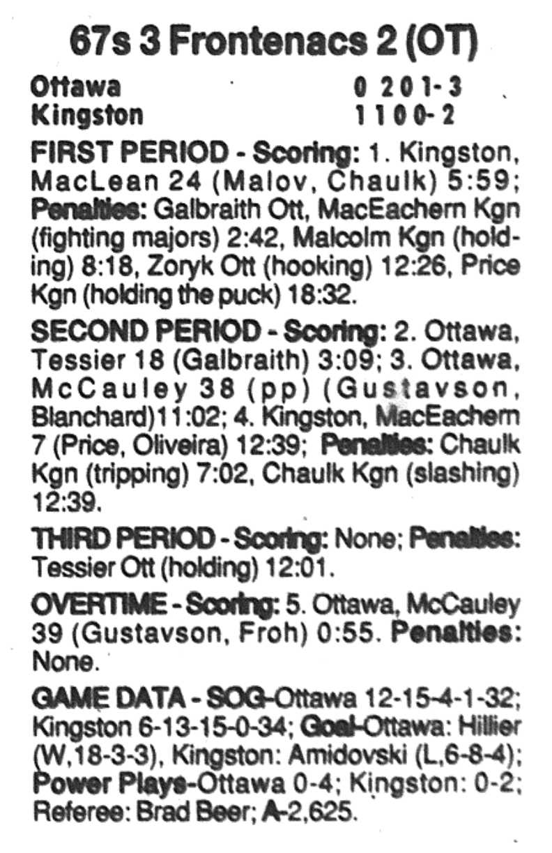 January 26 1997- Ottawa @ Oshawa (4-3 Oshawa)