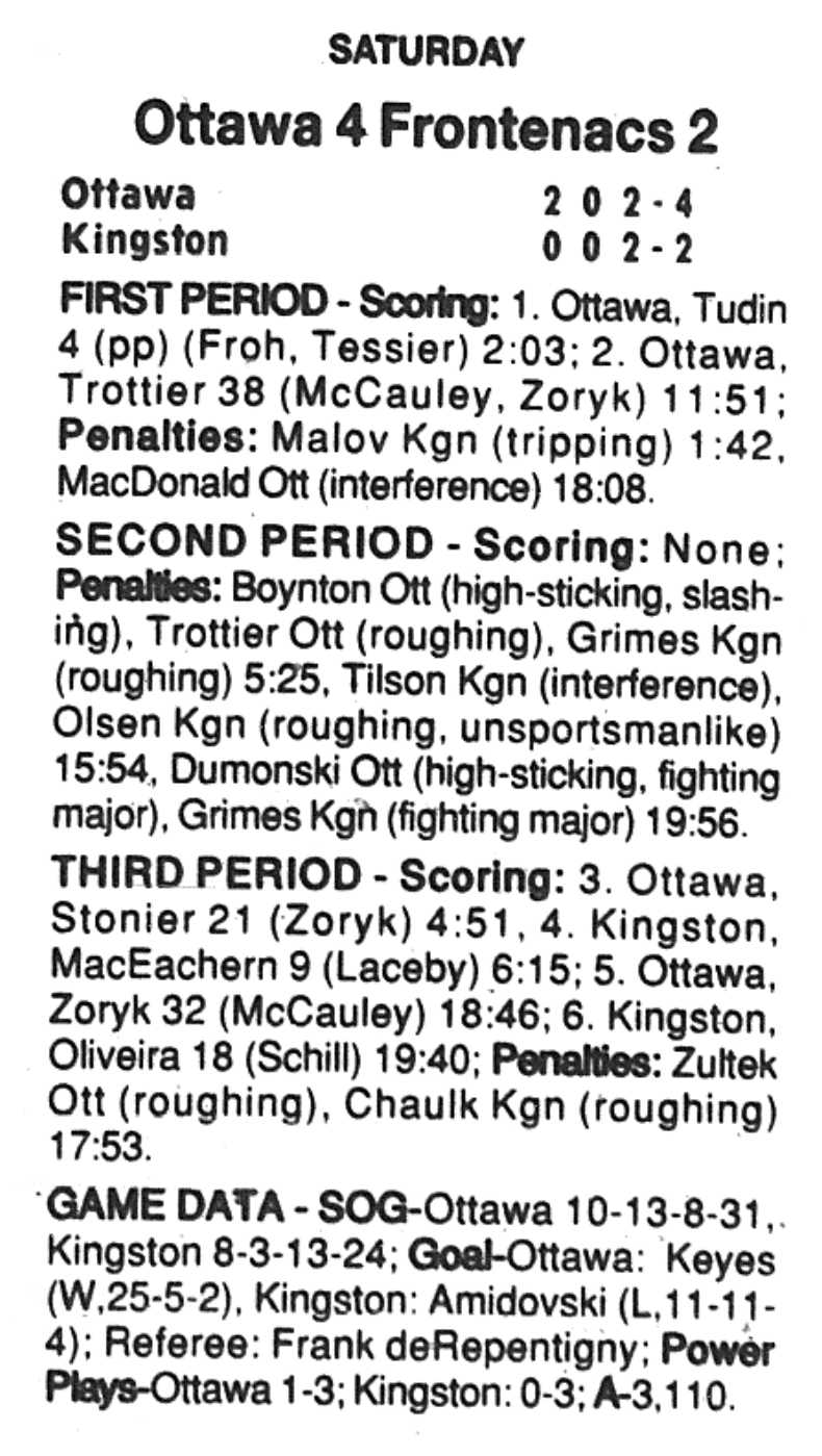 November 24 1996- Ottawa @ Oshawa (4-2 Ottawa)