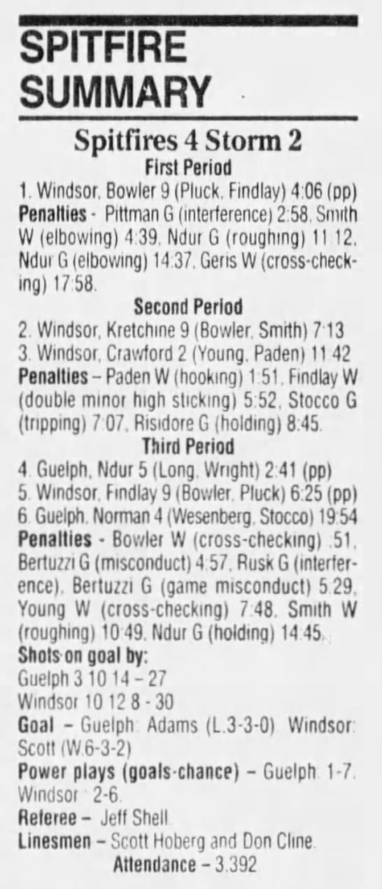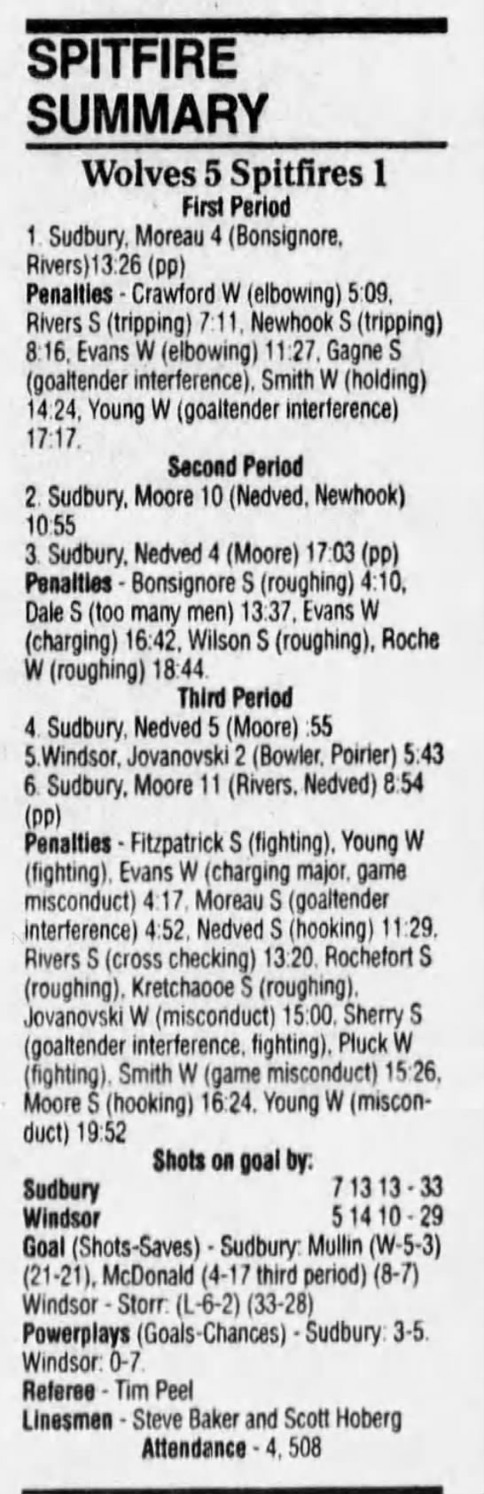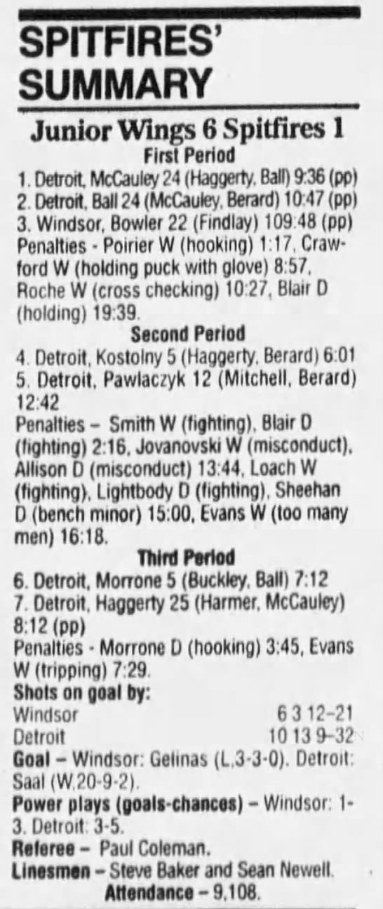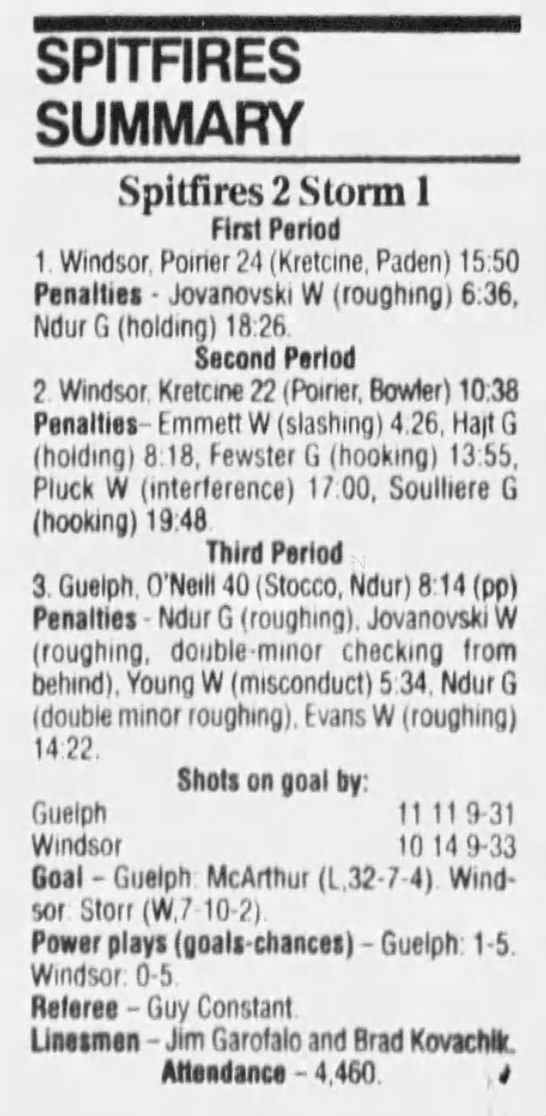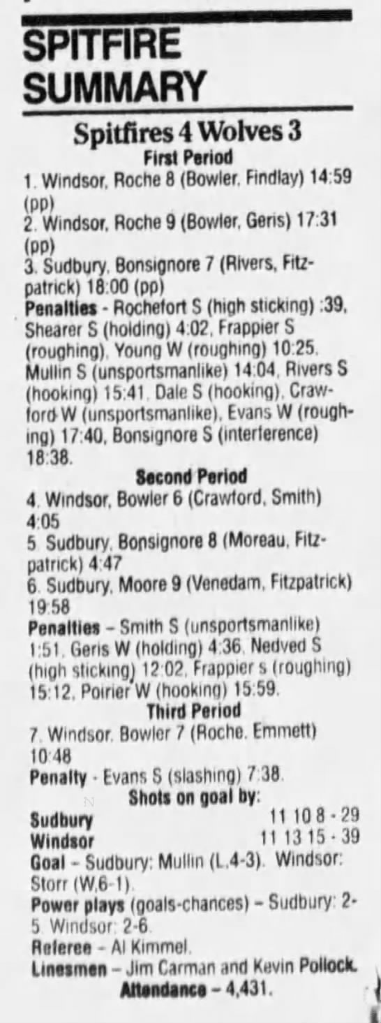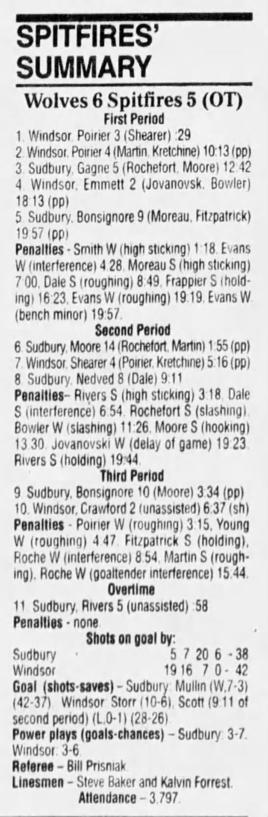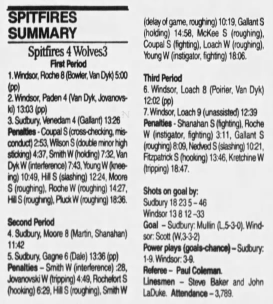 January 6 1995- Windsor @ Sudbury (4-2 Sudbury)