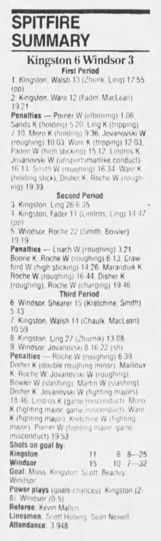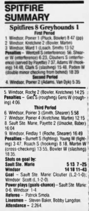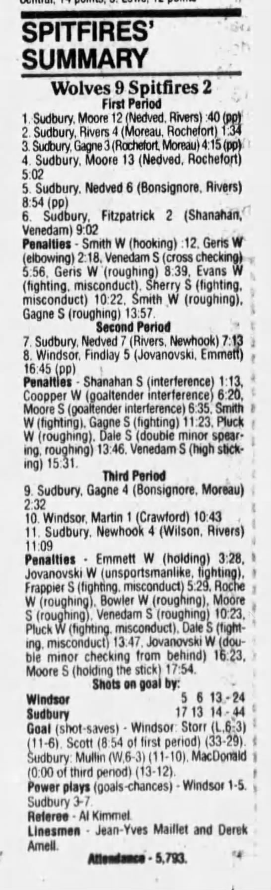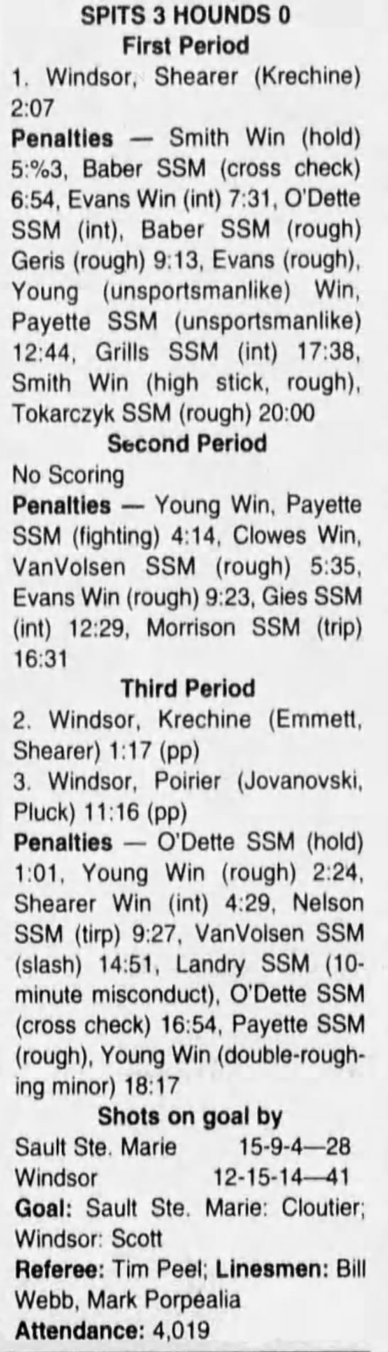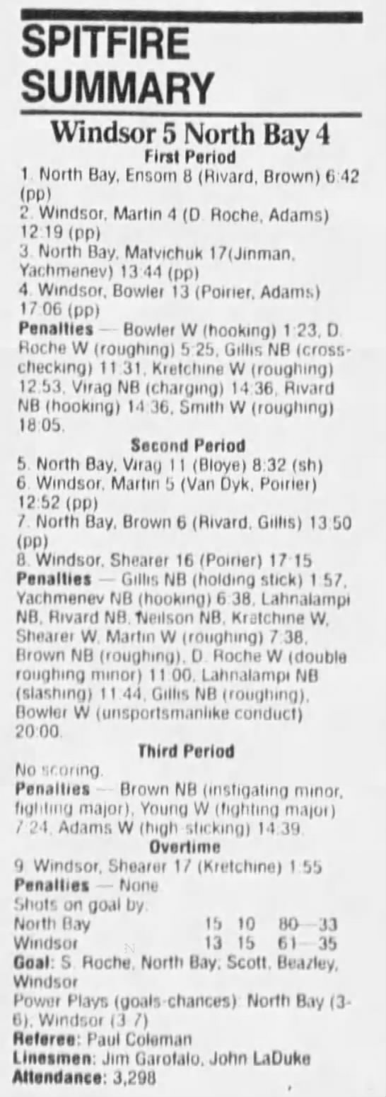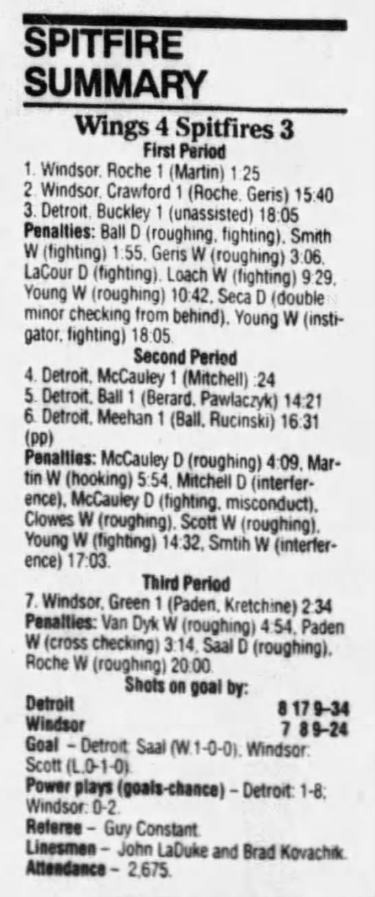 January 6 1995- Windsor @ Sudbury (4-2 Sudbury)