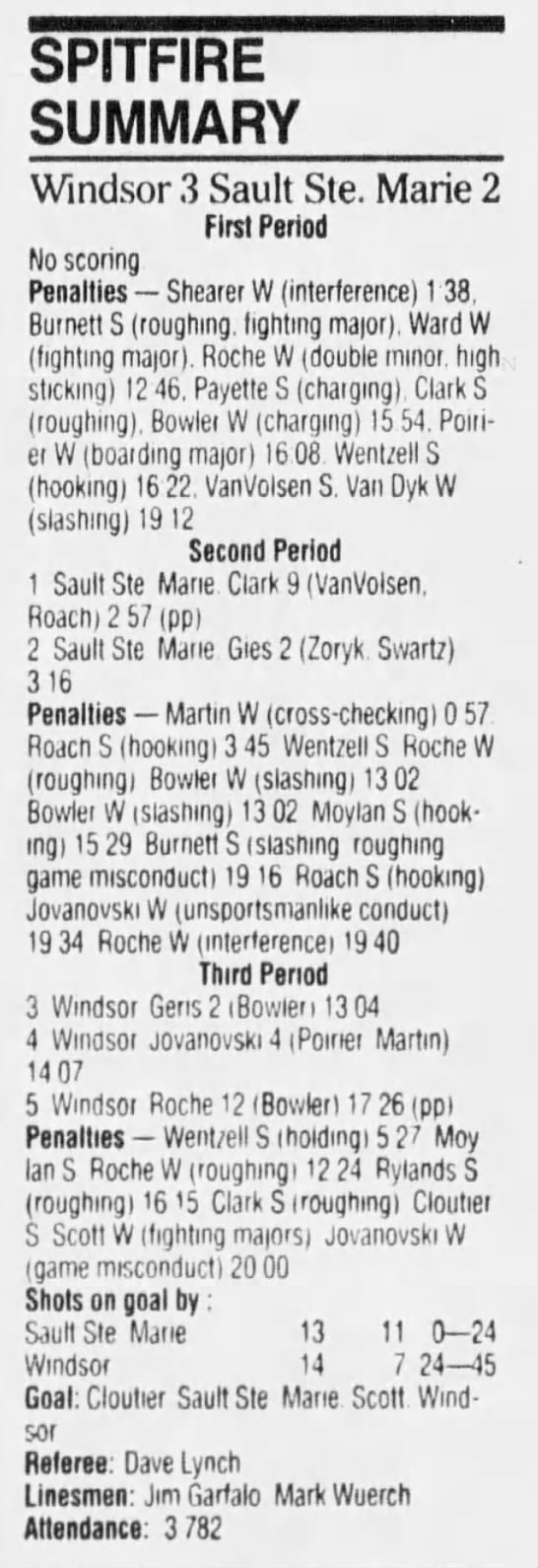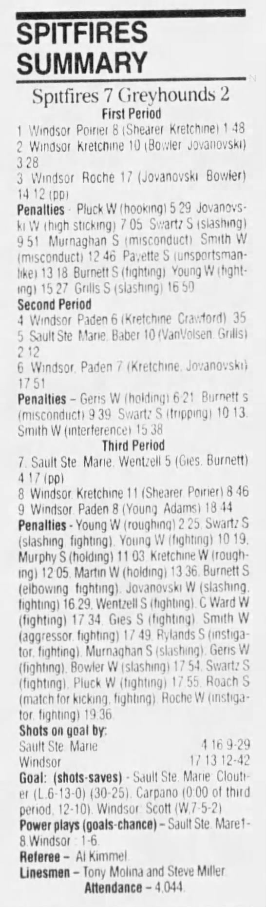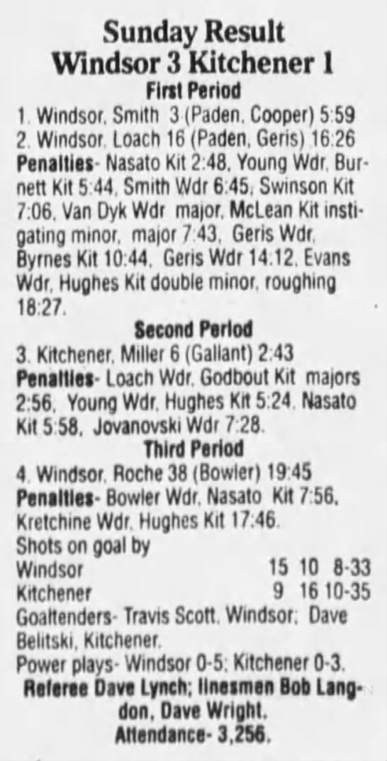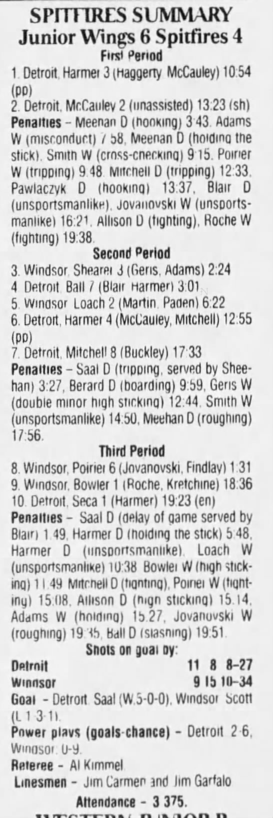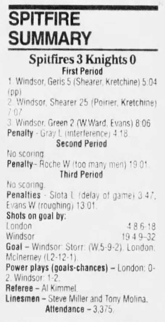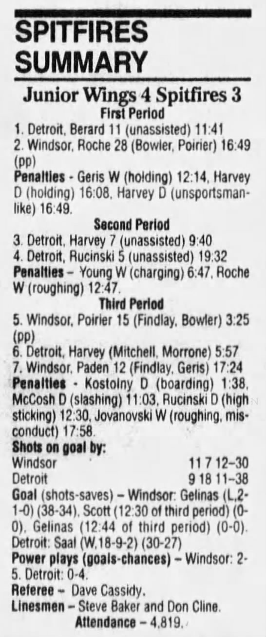 January 6 1995- Windsor @ Sudbury (4-2 Sudbury)