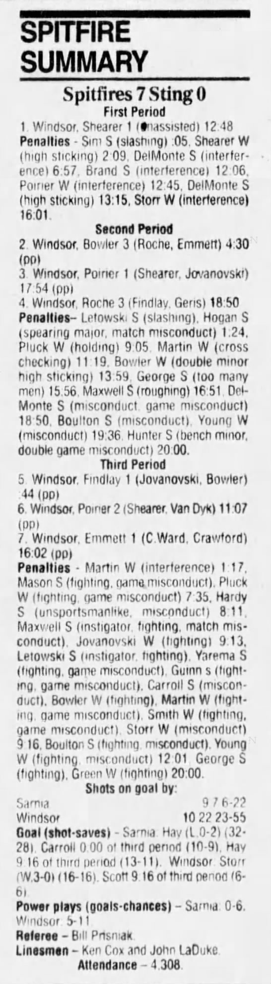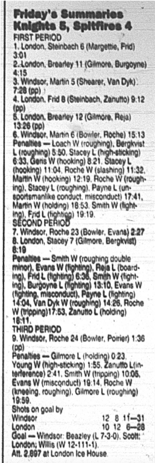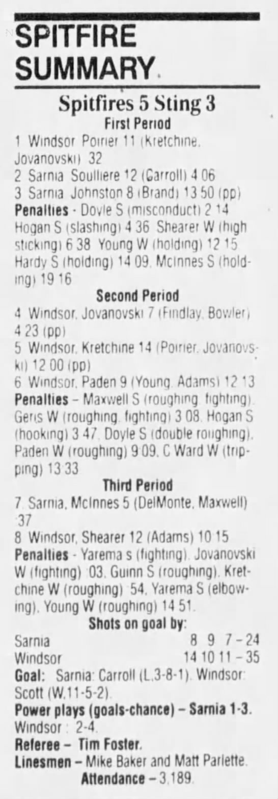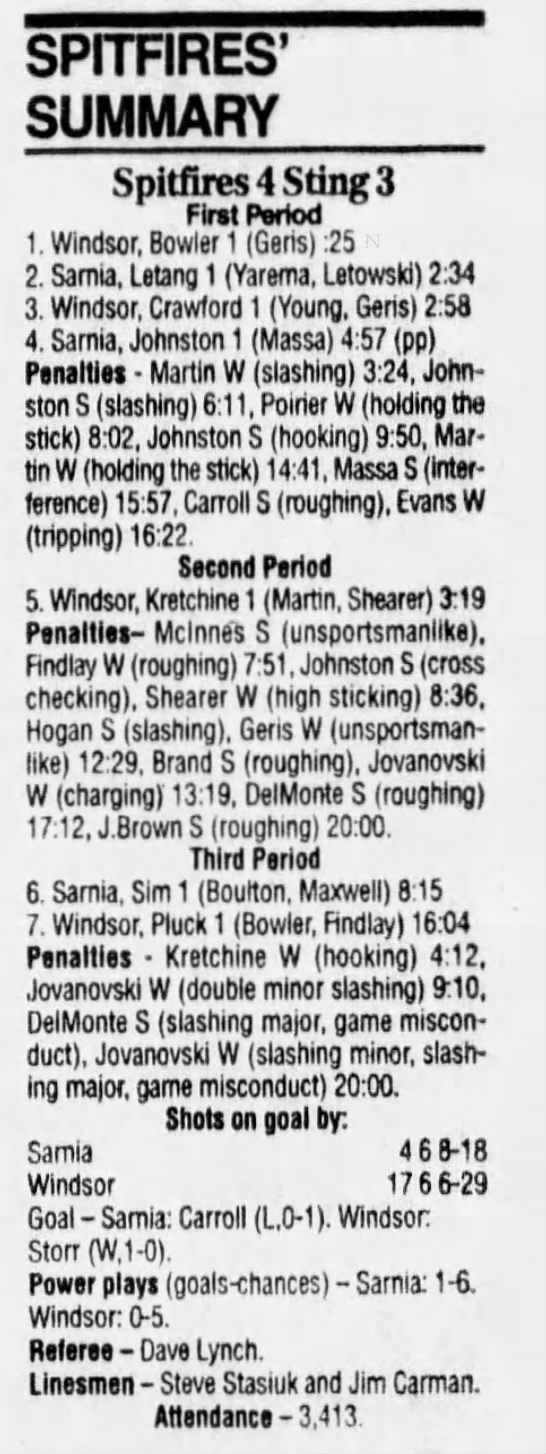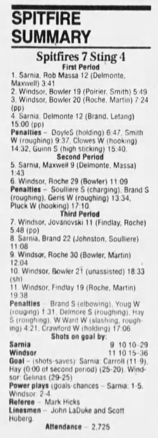 February 10 1995- Windsor @ Sarnia (7-2 Sarnia)