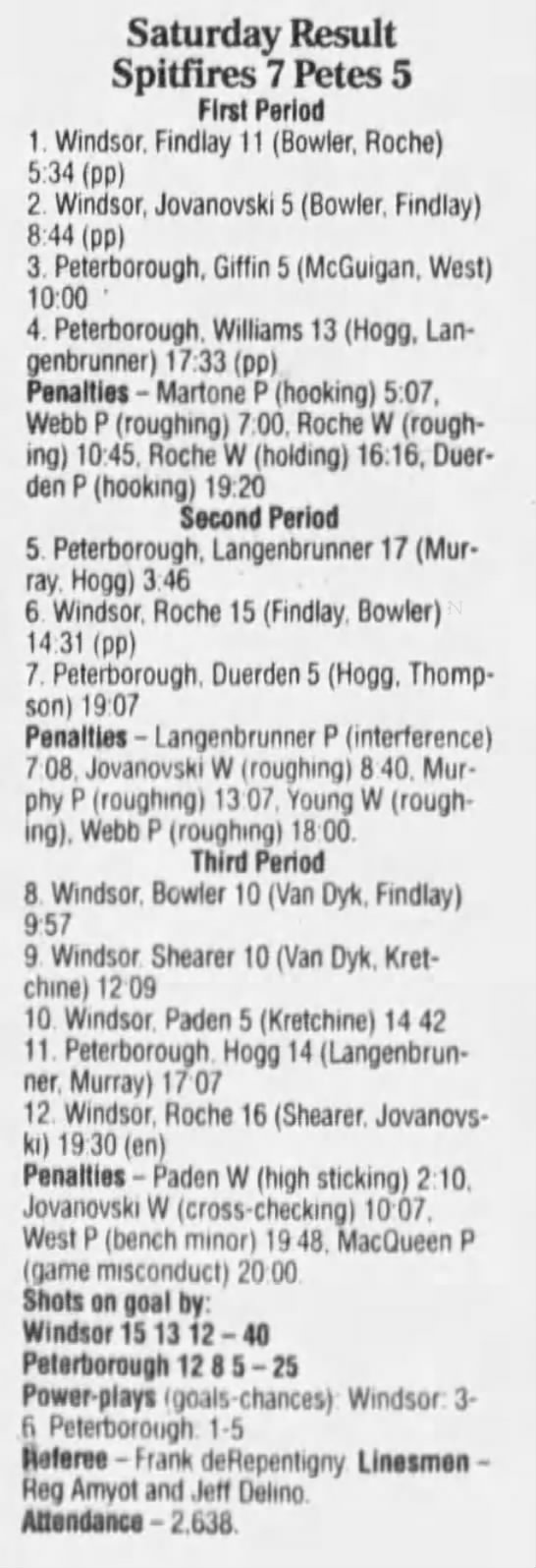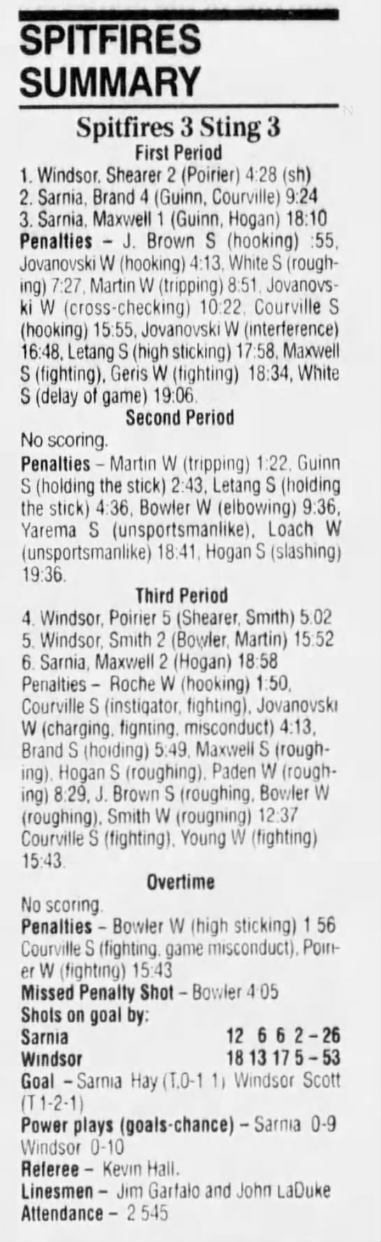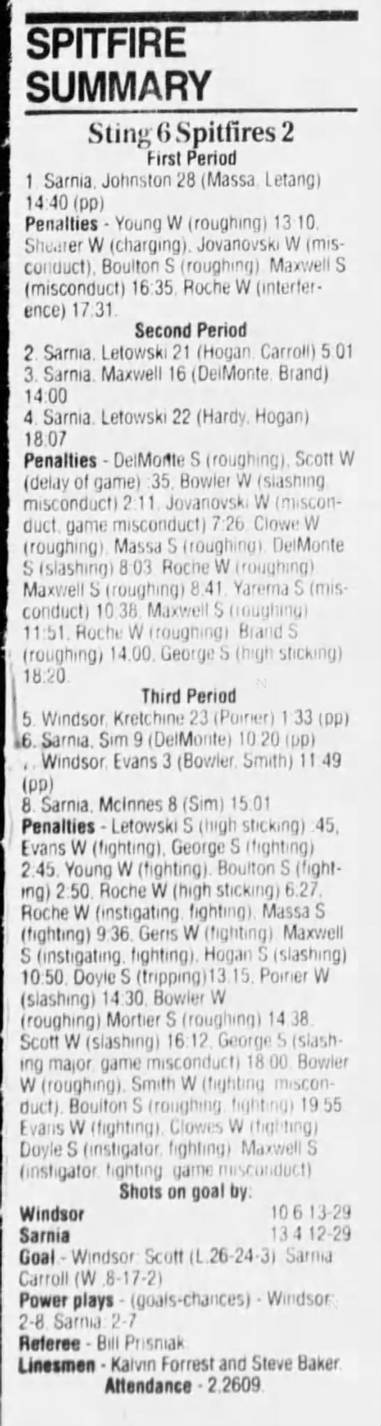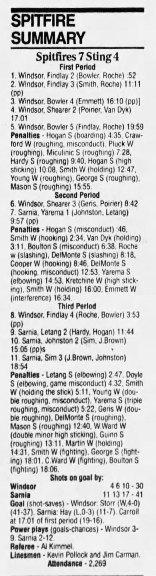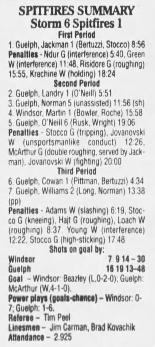 February 10 1995- Windsor @ Sarnia (7-2 Sarnia)