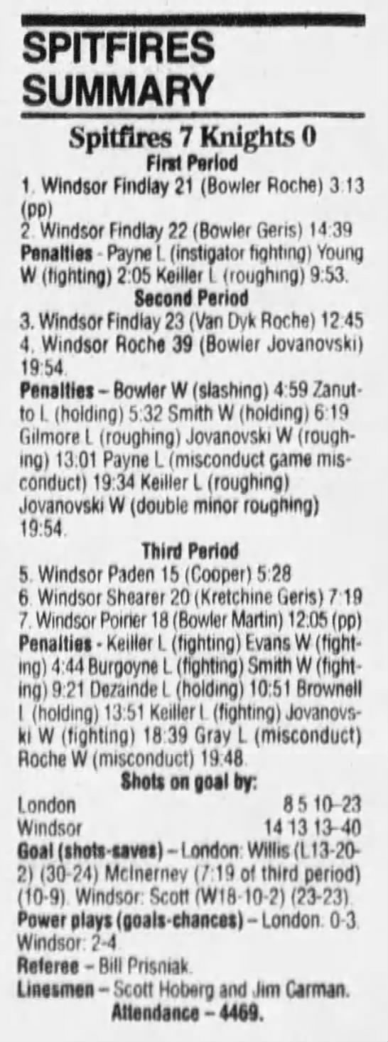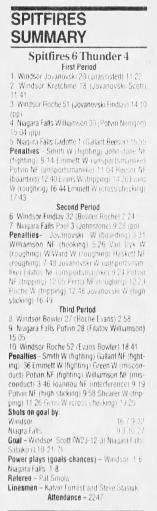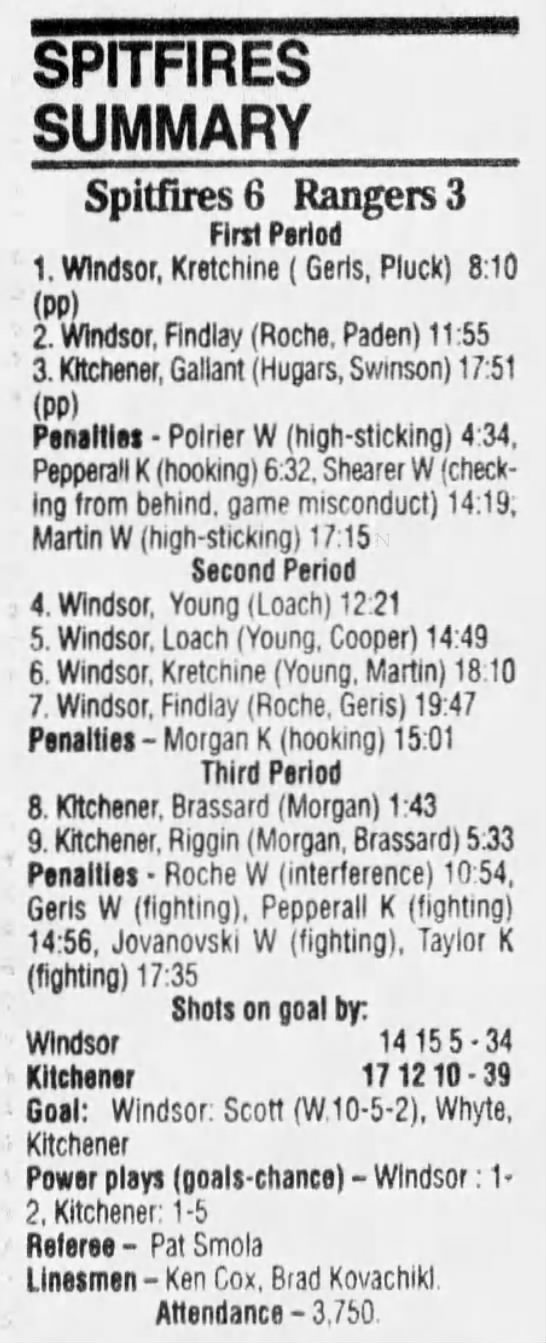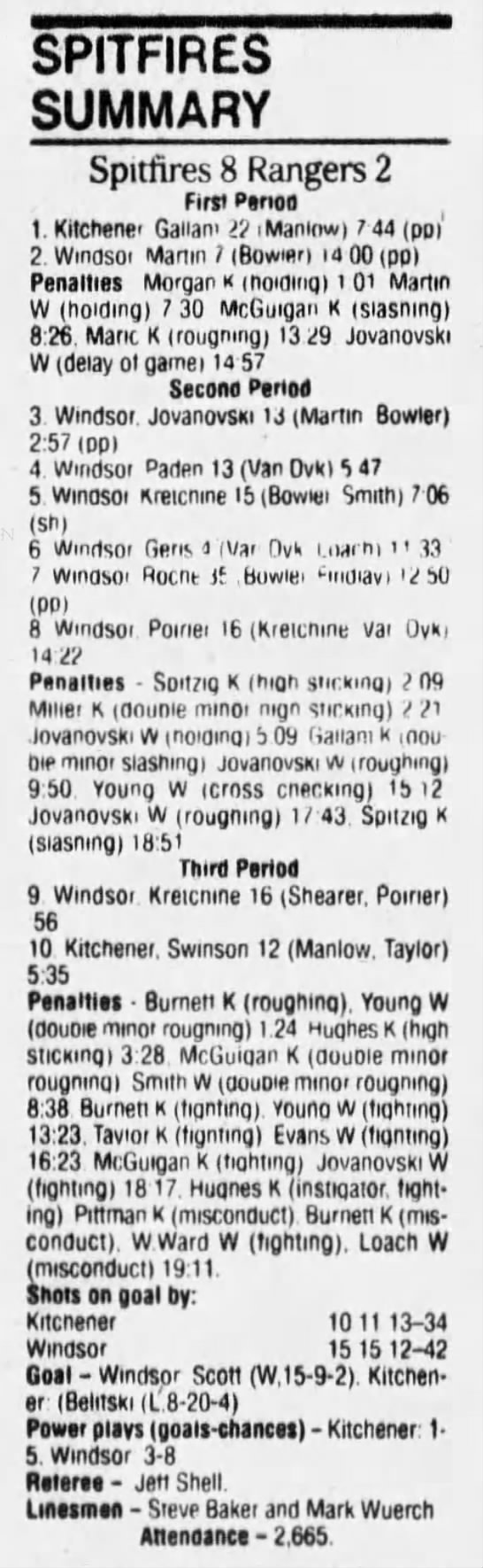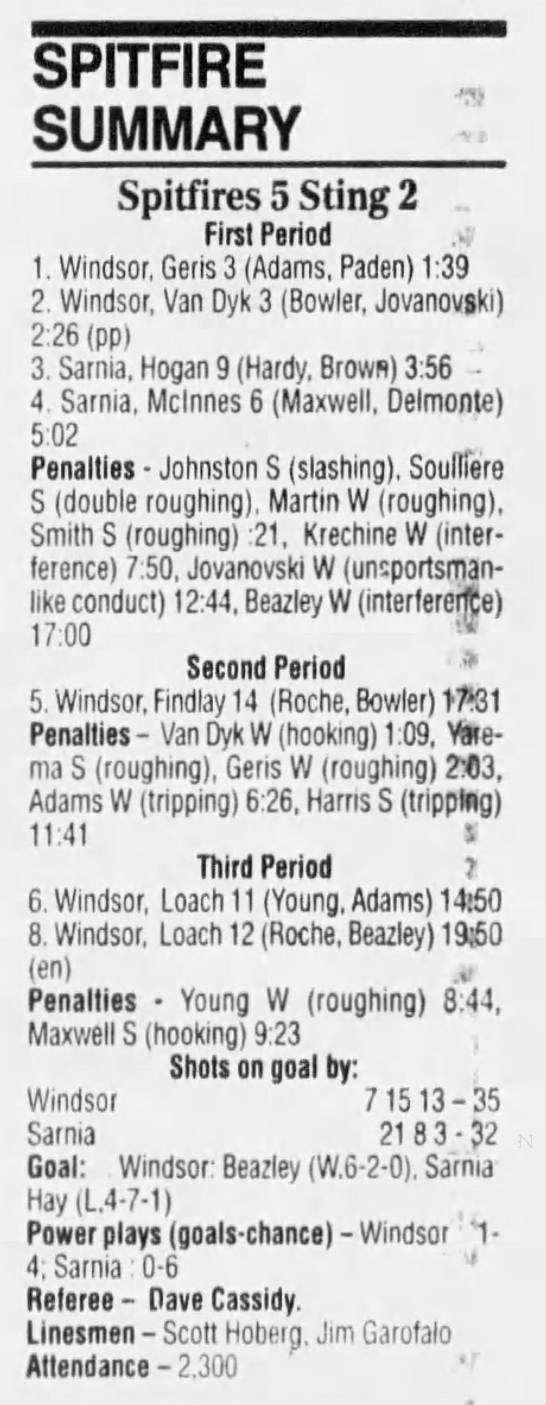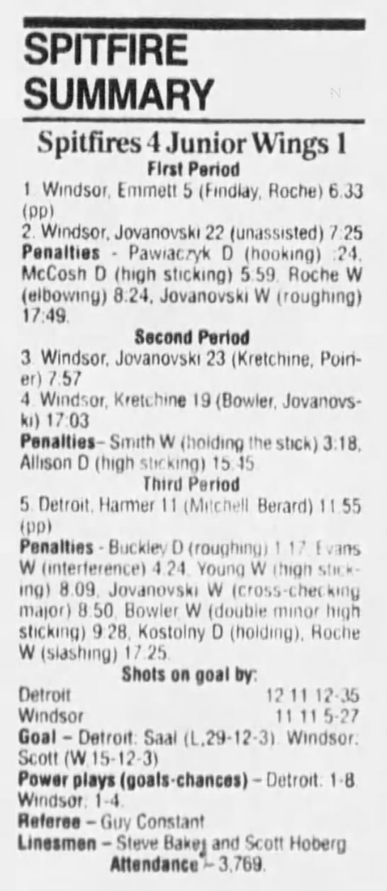 Here are the boxscores from the 1994-95 Windsor Spitfires season. There are a few that are missing, but most of them are here (71/76 boxscores). If you have any of the games that are missing, please send them my way.