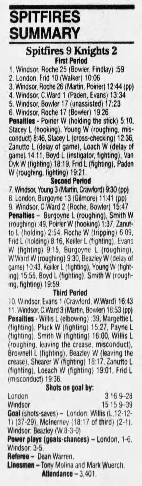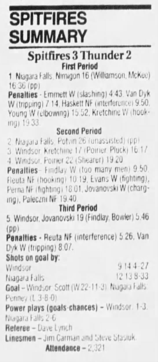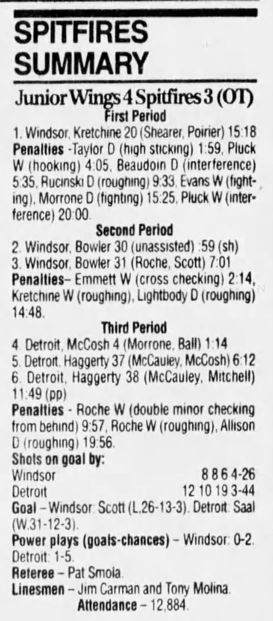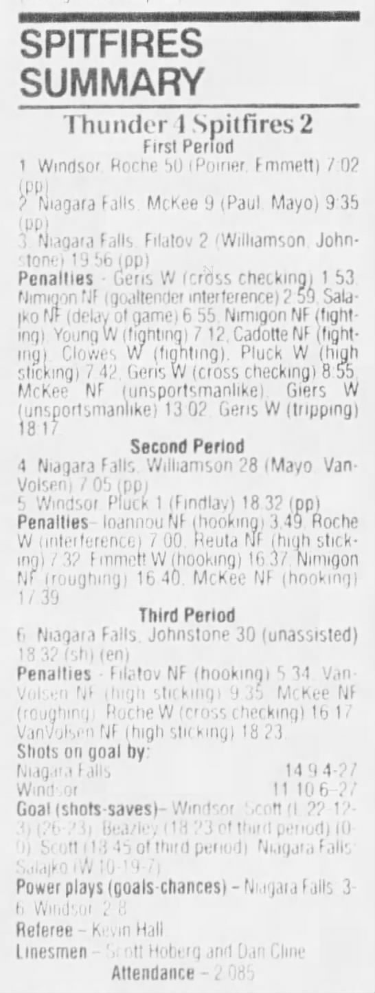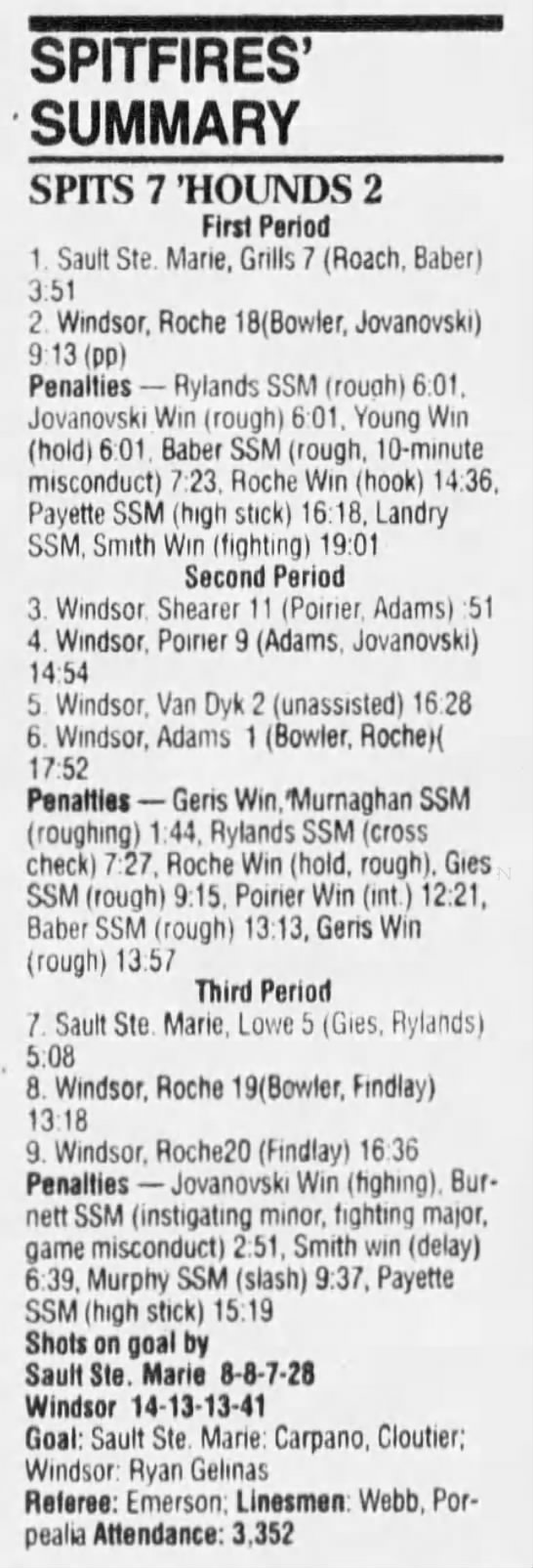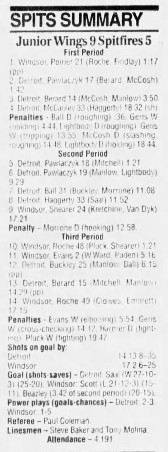 Here are the boxscores from the 1994-95 Windsor Spitfires season. There are a few that are missing, but most of them are here (71/76 boxscores). If you have any of the games that are missing, please send them my way.