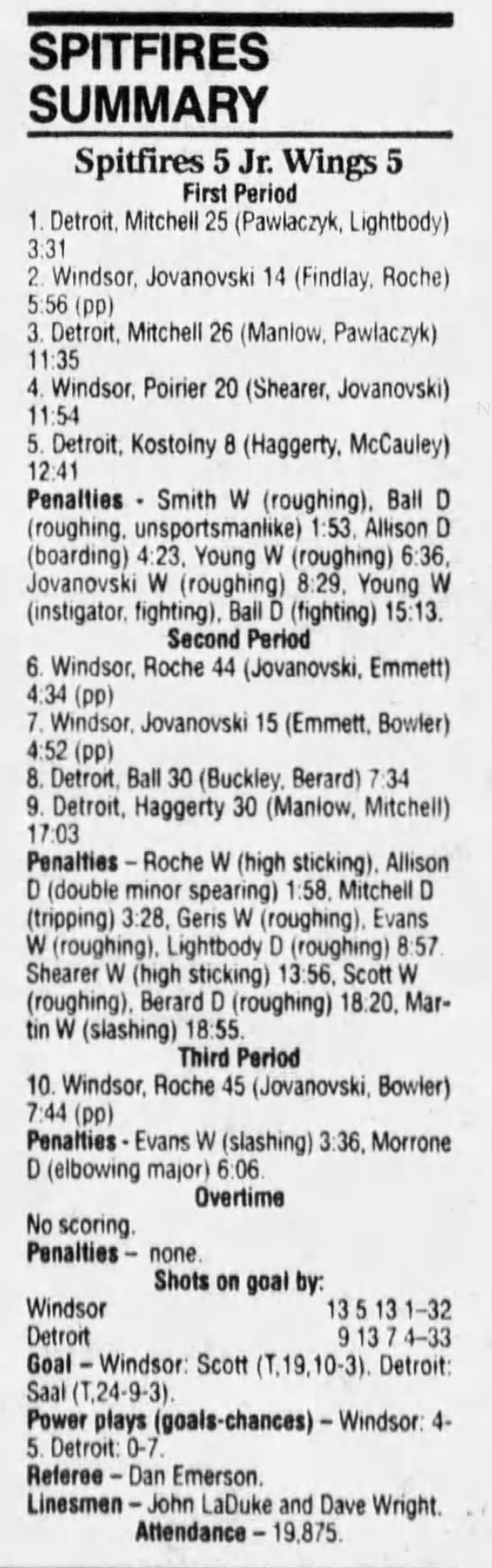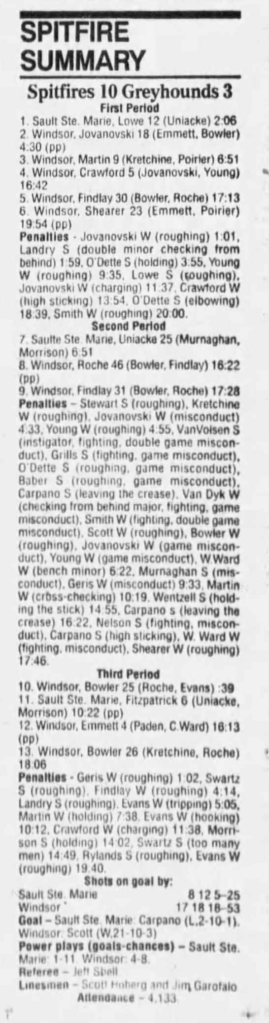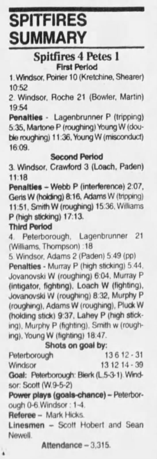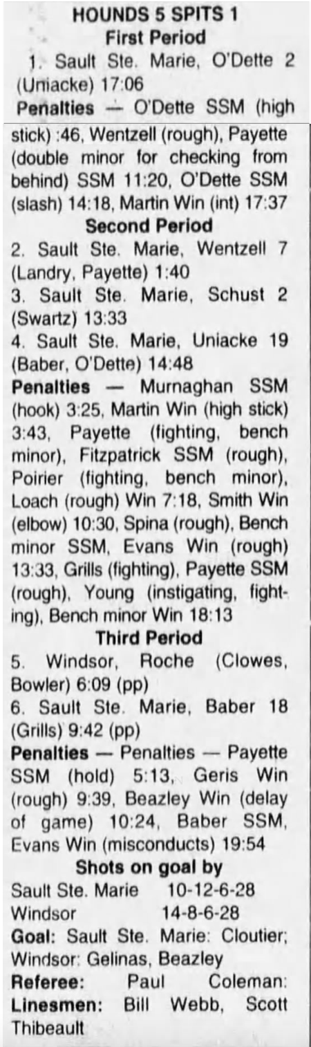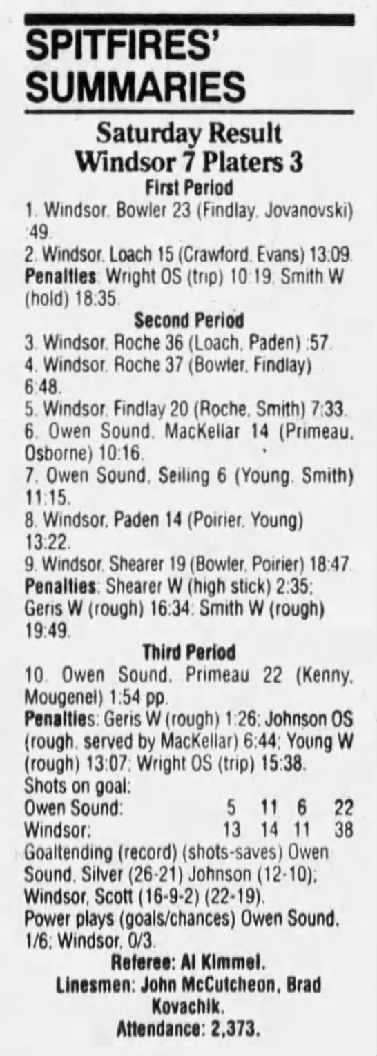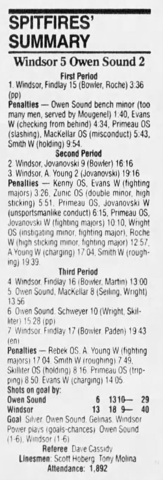 Here are the boxscores from the 1994-95 Windsor Spitfires season. There are a few that are missing, but most of them are here (71/76 boxscores). If you have any of the games that are missing, please send them my way.