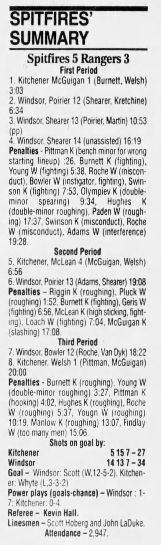 February 2 1995- Kitchener @ Windsor