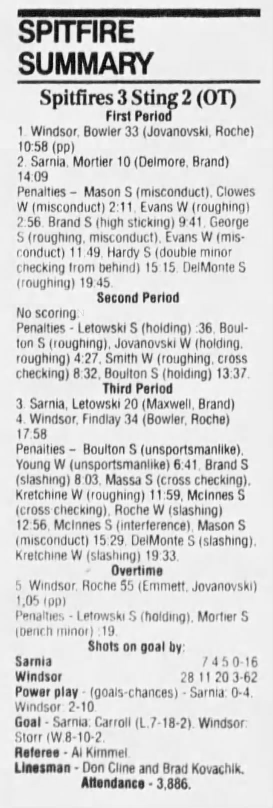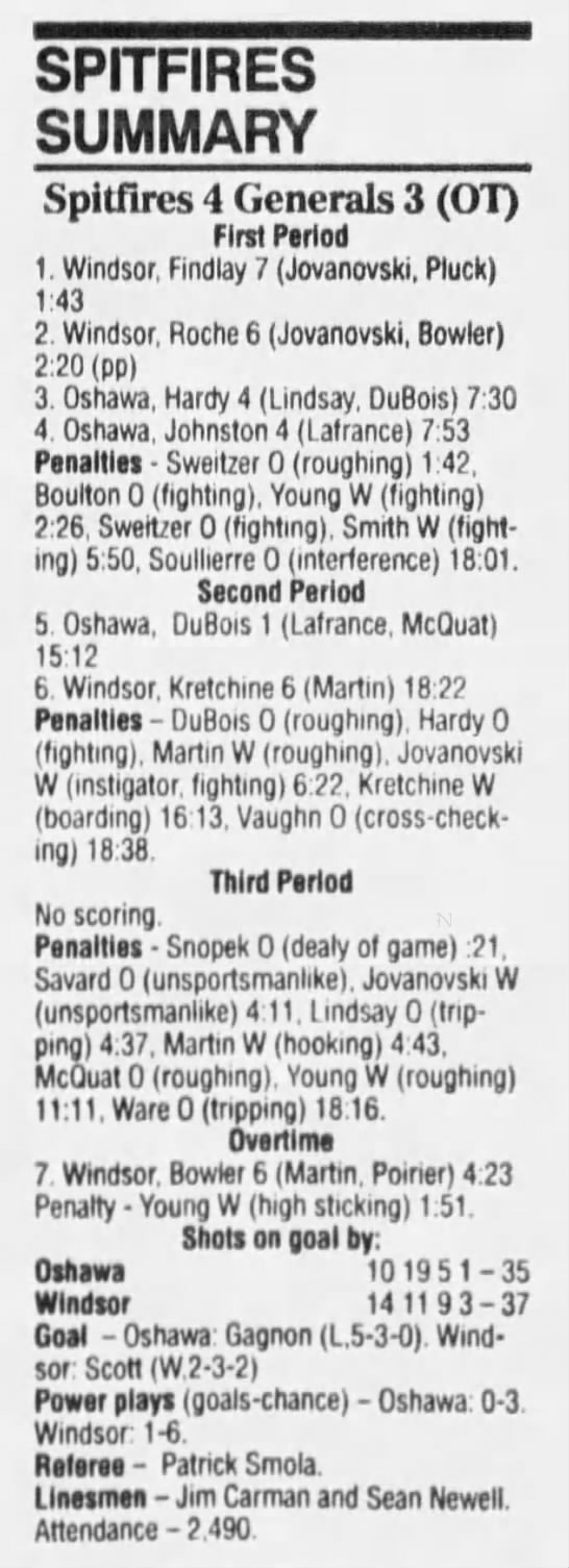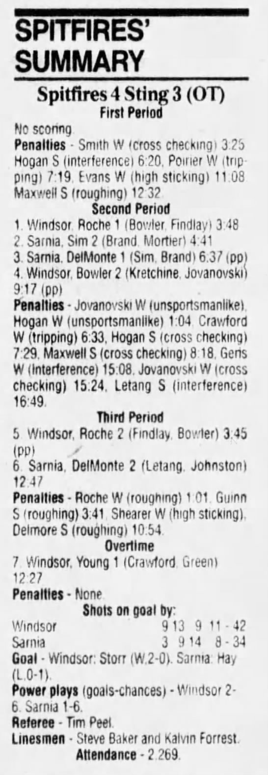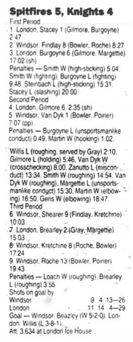 January 15 1995- Windsor @ Sarnia (5-4 Sarnia OT)