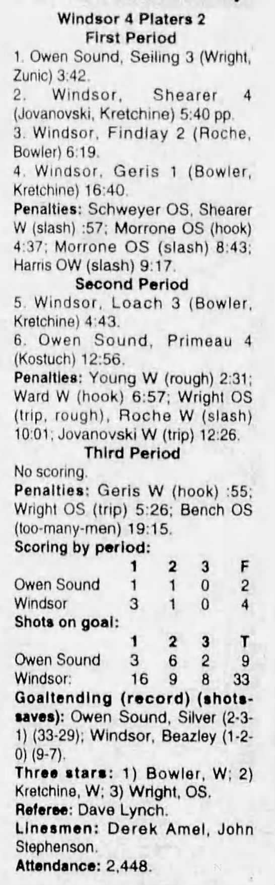 February 27 1995- Owen Sound @ Windsor