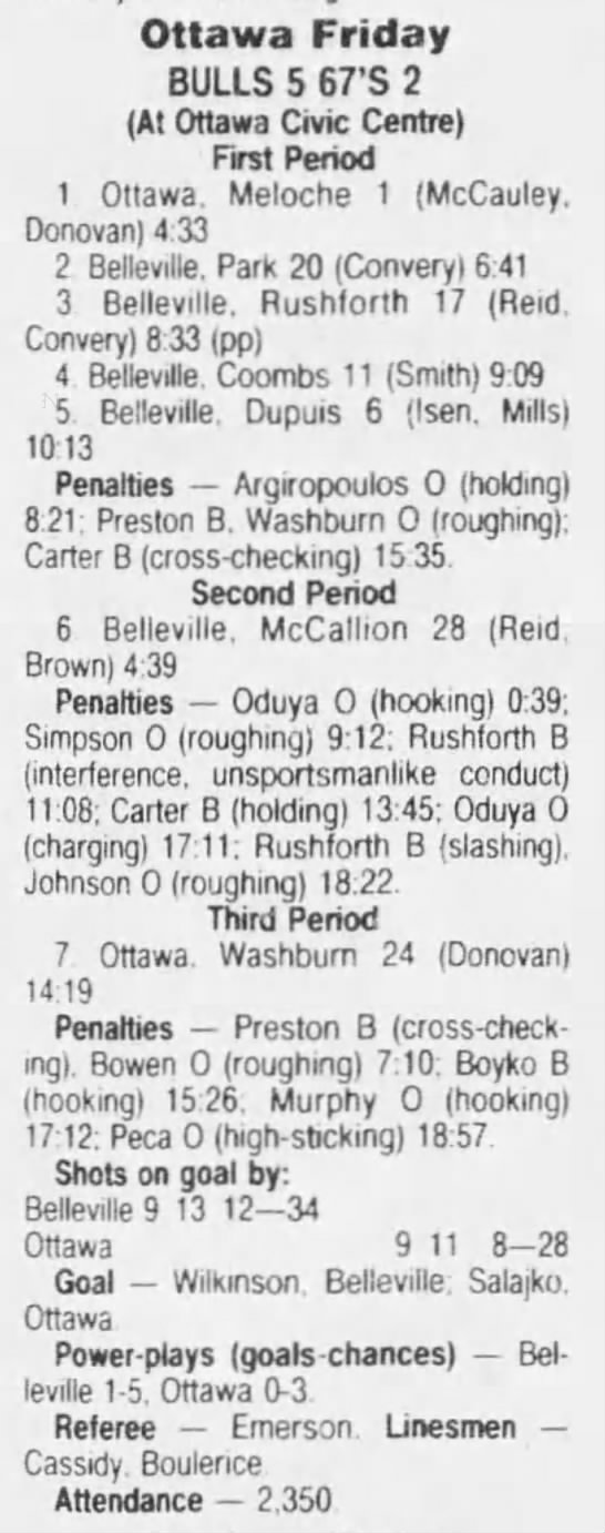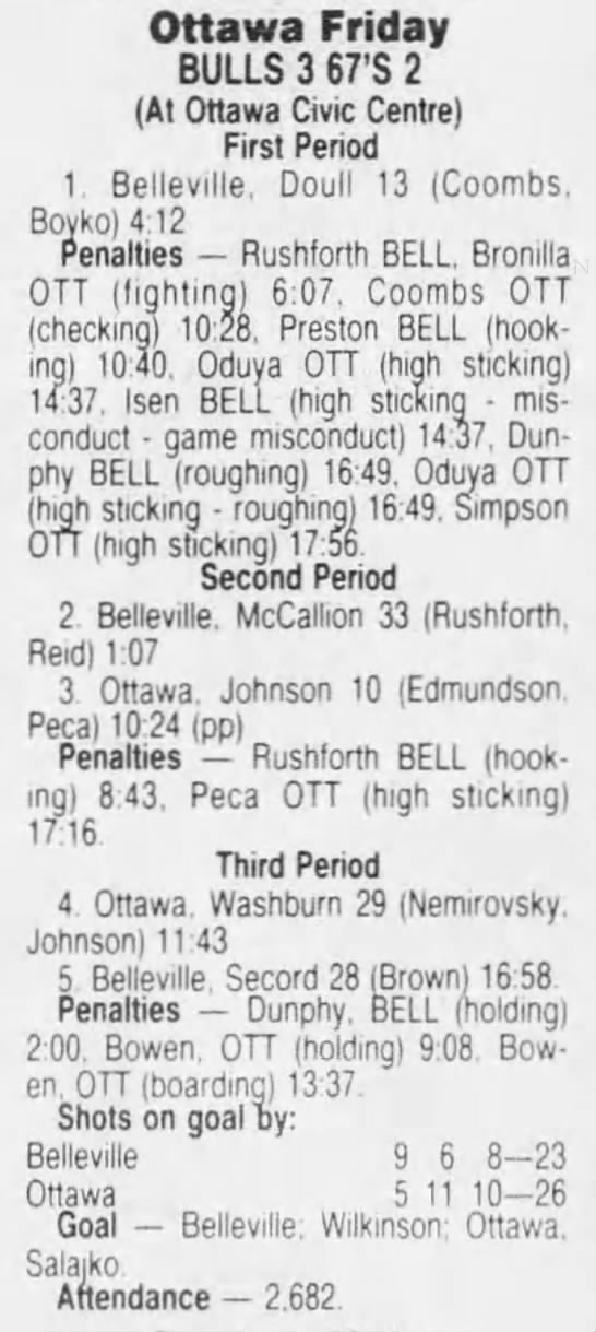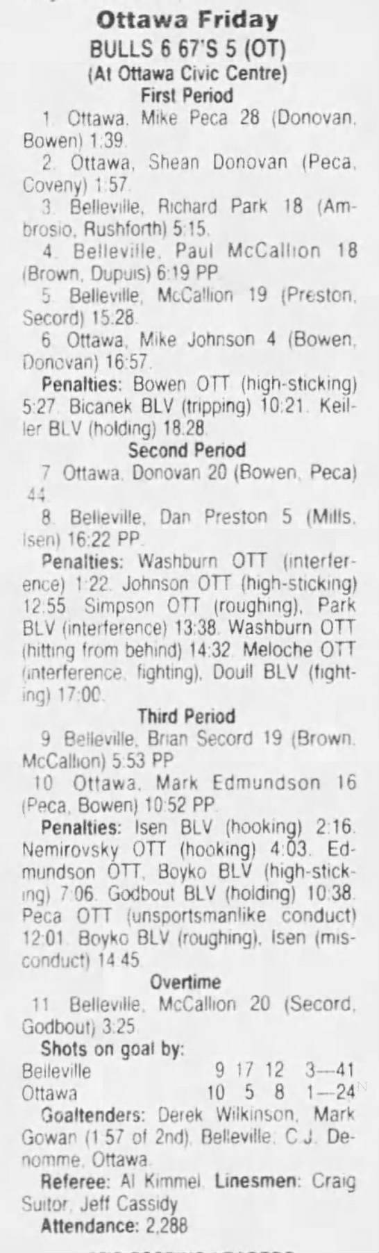 November 16 1993- Ottawa @ Belleville (7-4 Belleville)