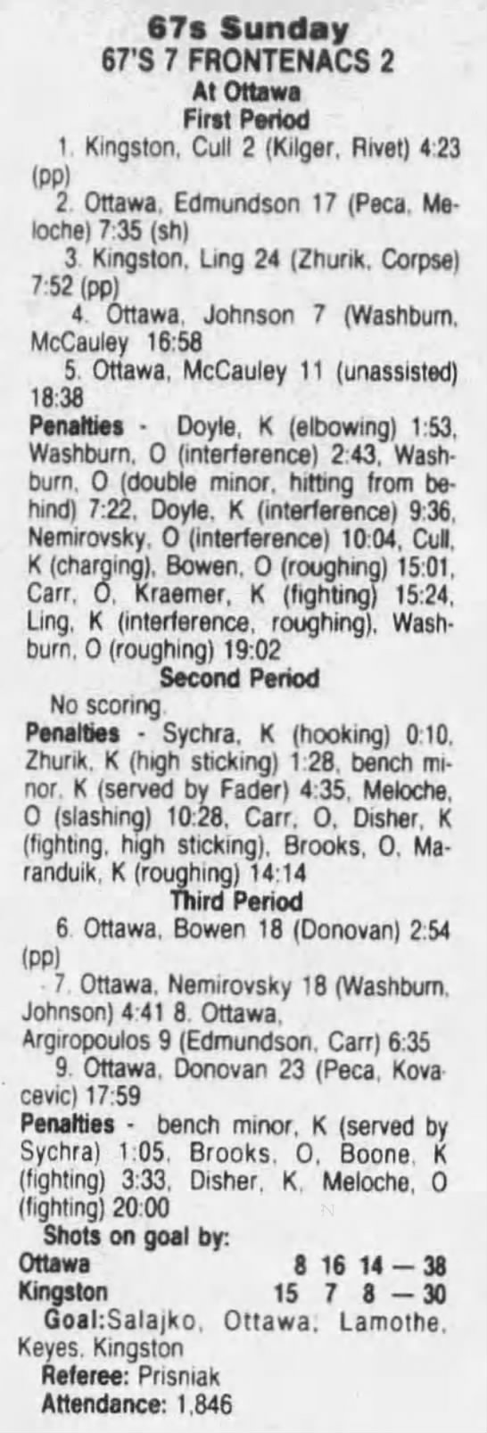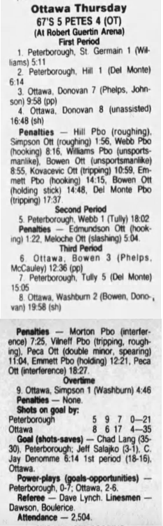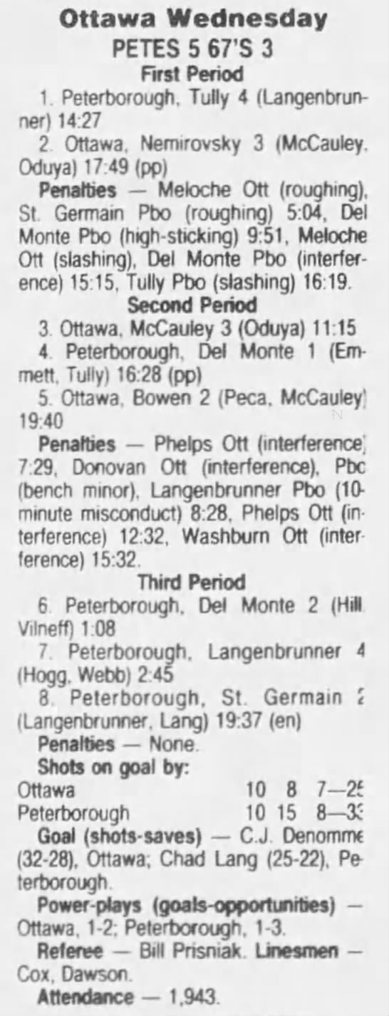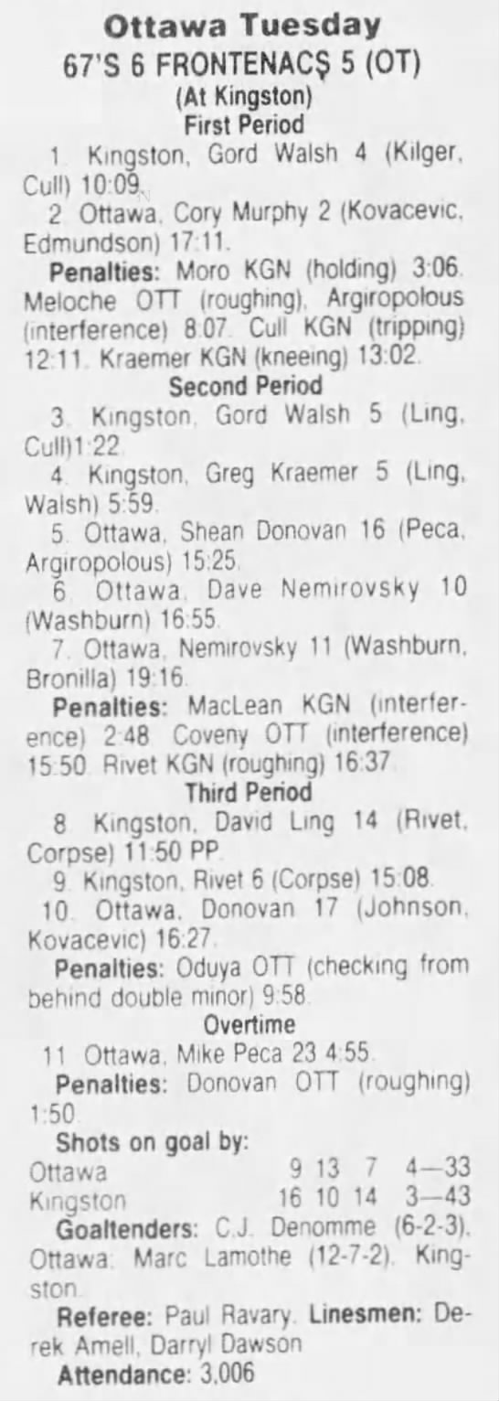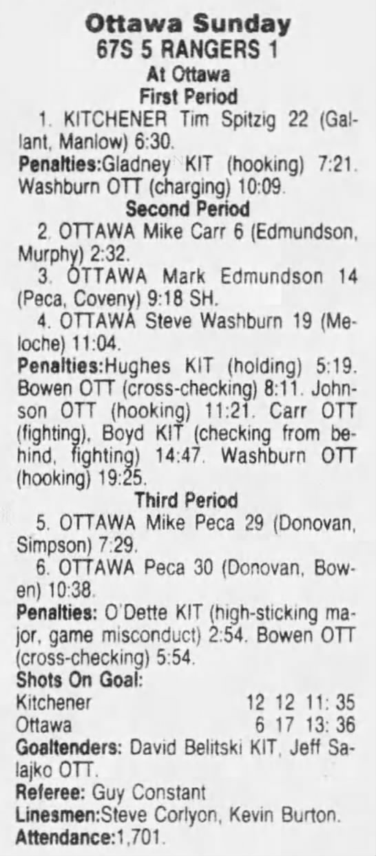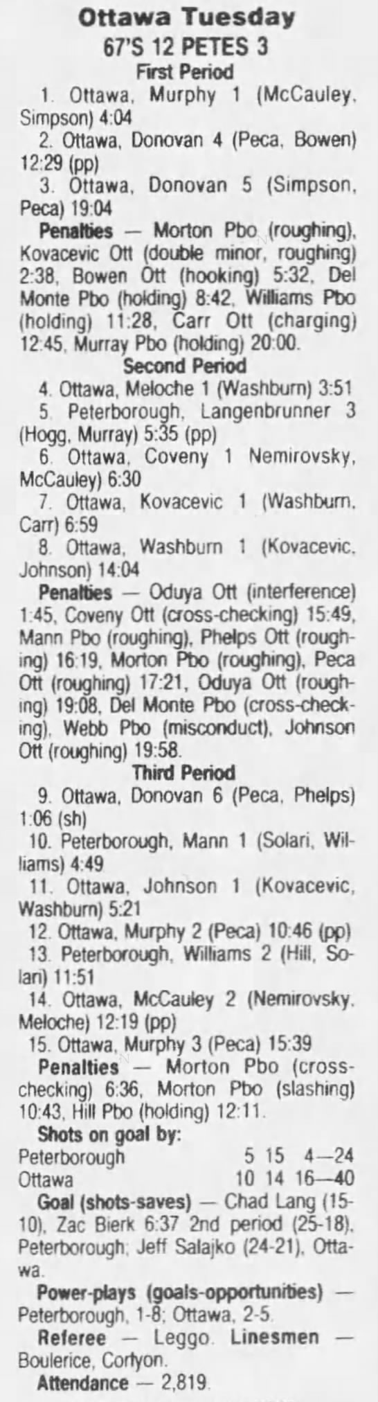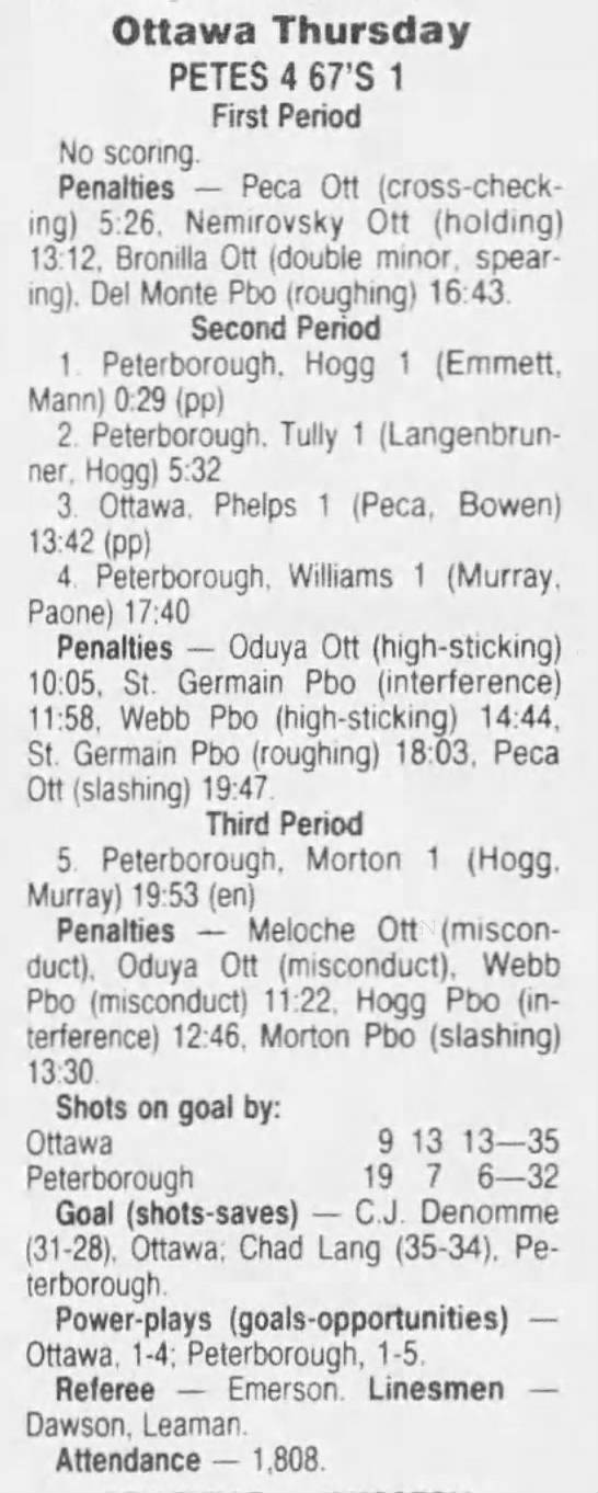 December 9 1993- Ottawa @ Peterborough (8-5 Peterborough)