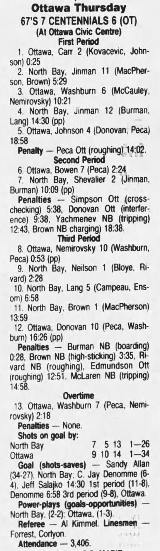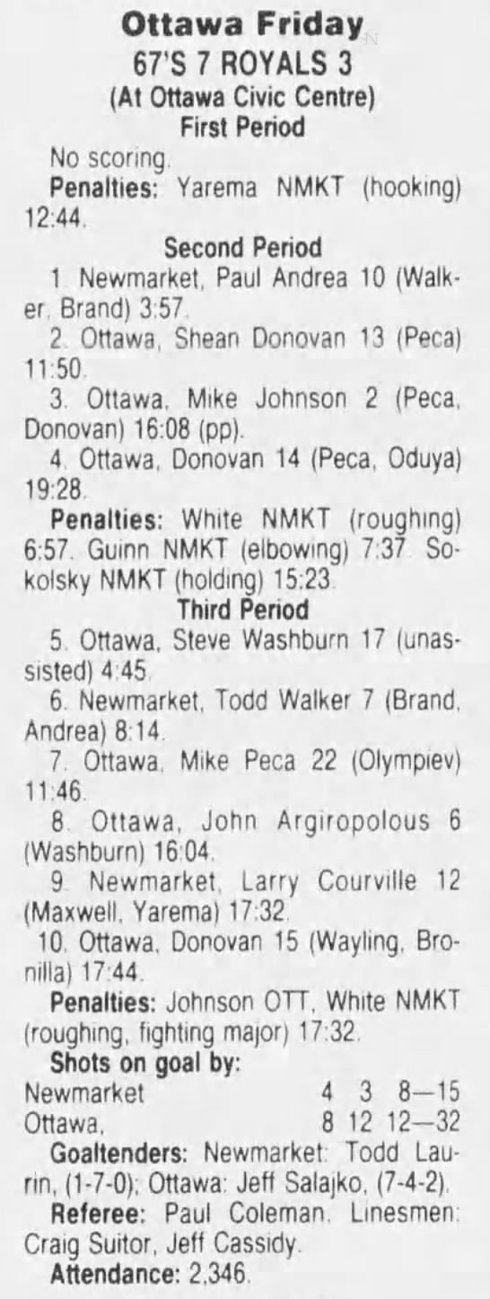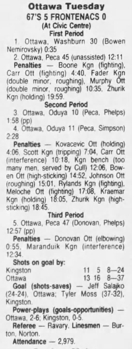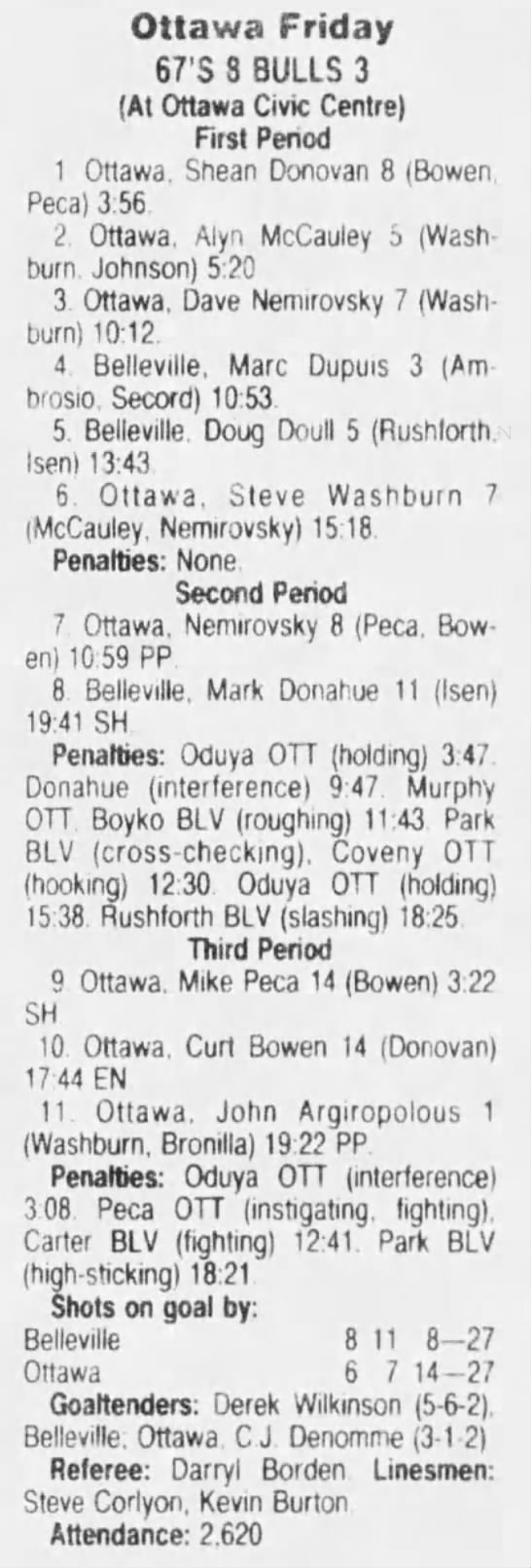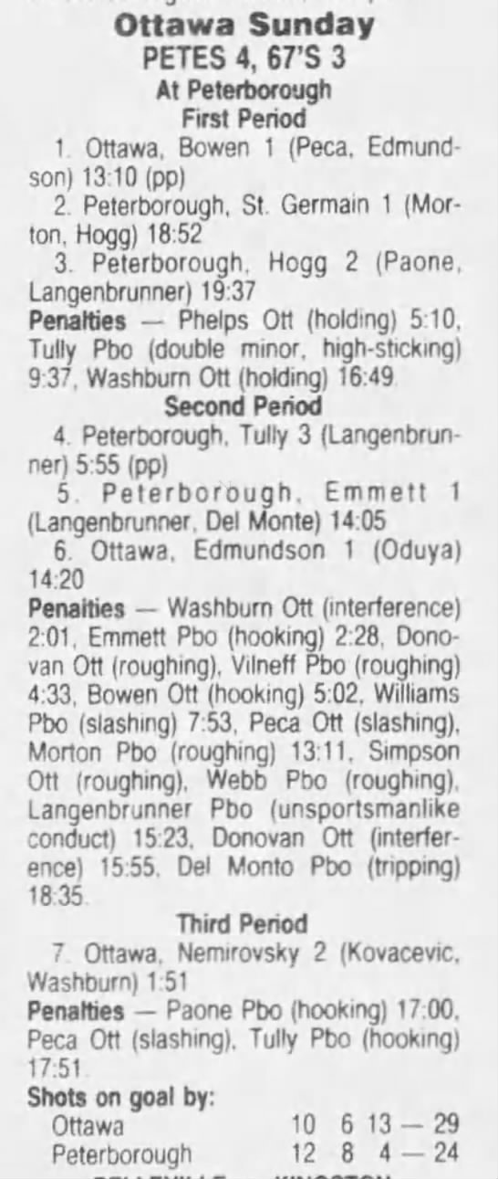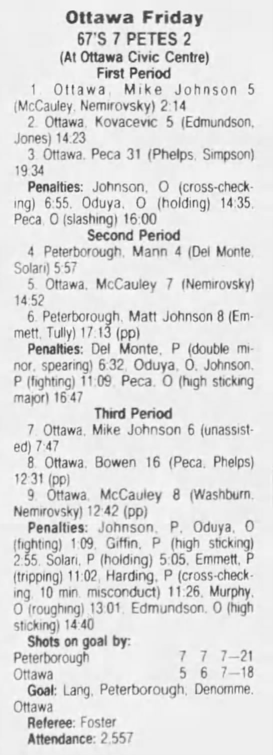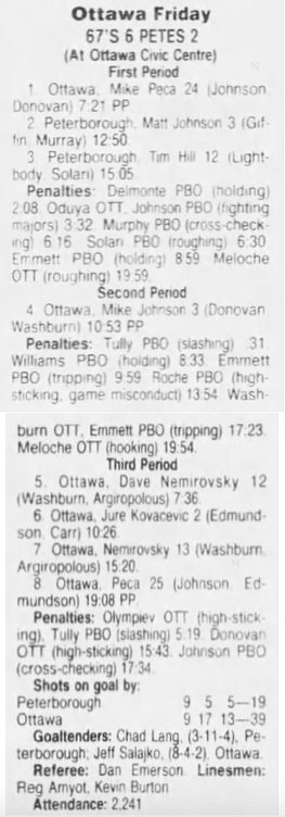 December 9 1993- Ottawa @ Peterborough (8-5 Peterborough)