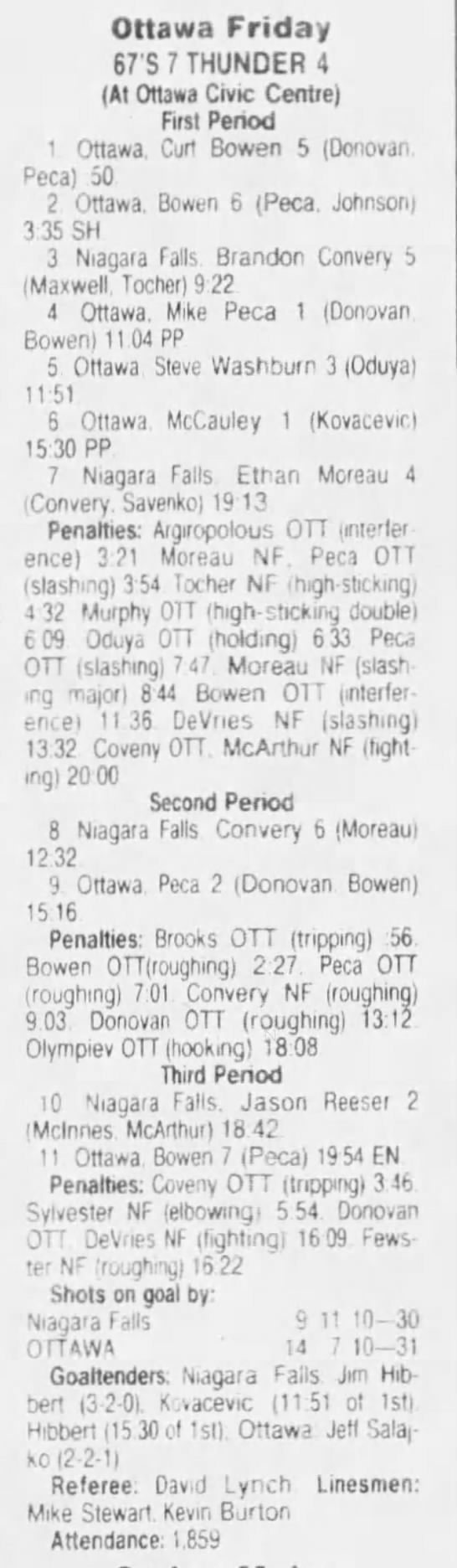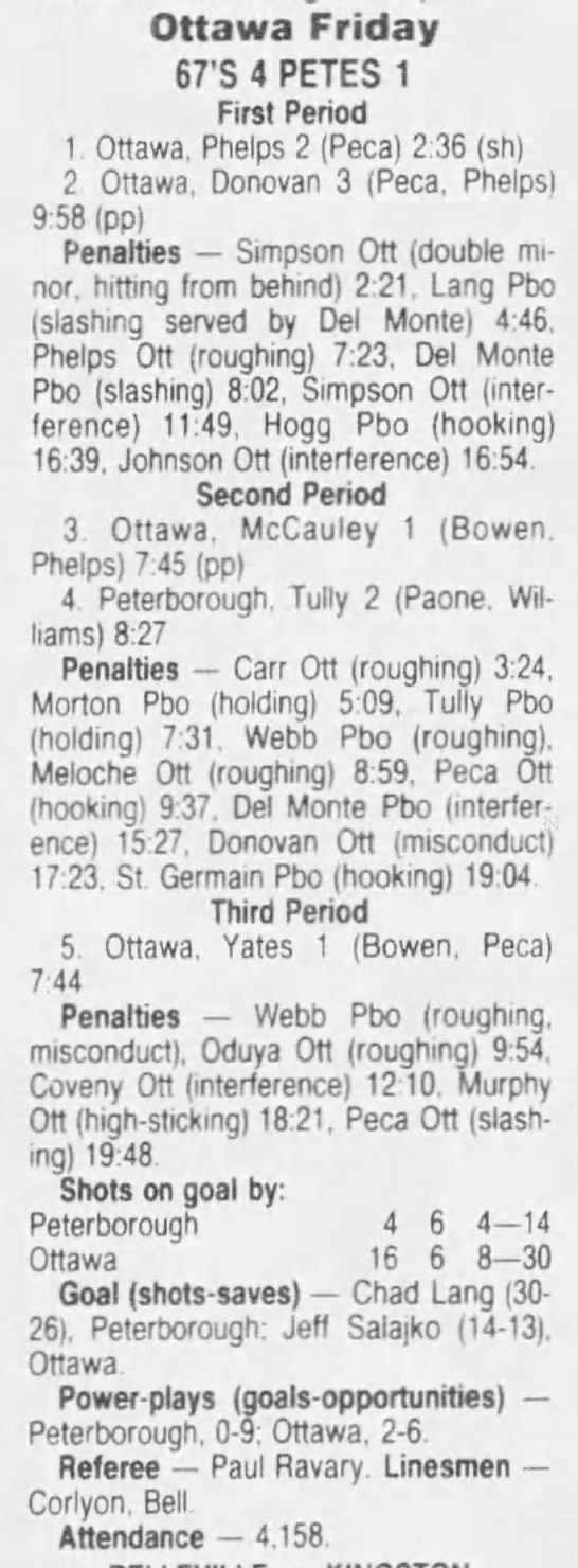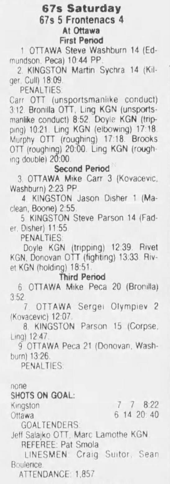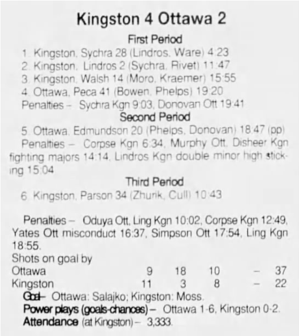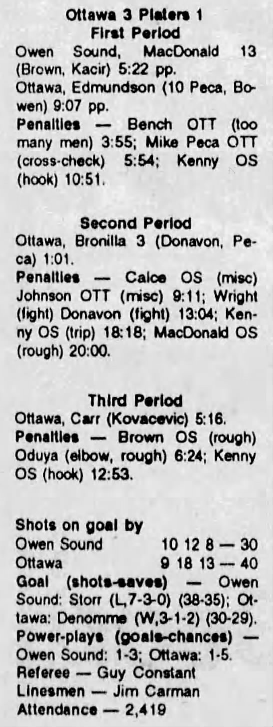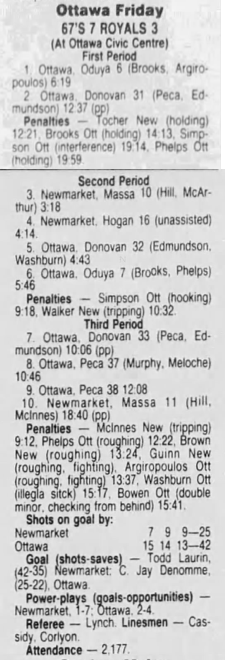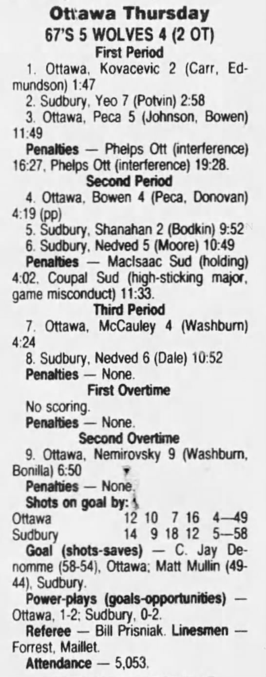 December 9 1993- Ottawa @ Peterborough (8-5 Peterborough)