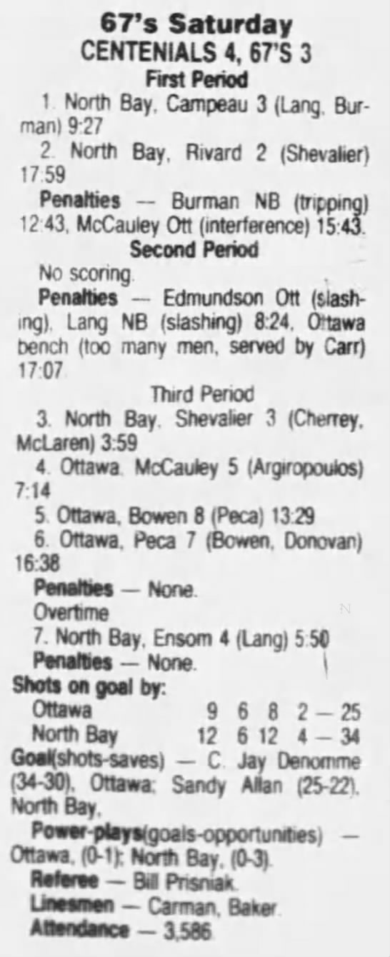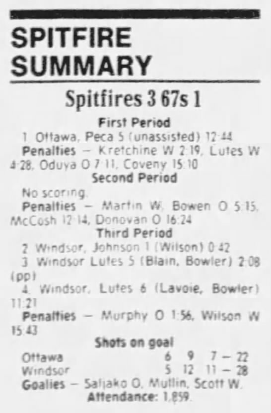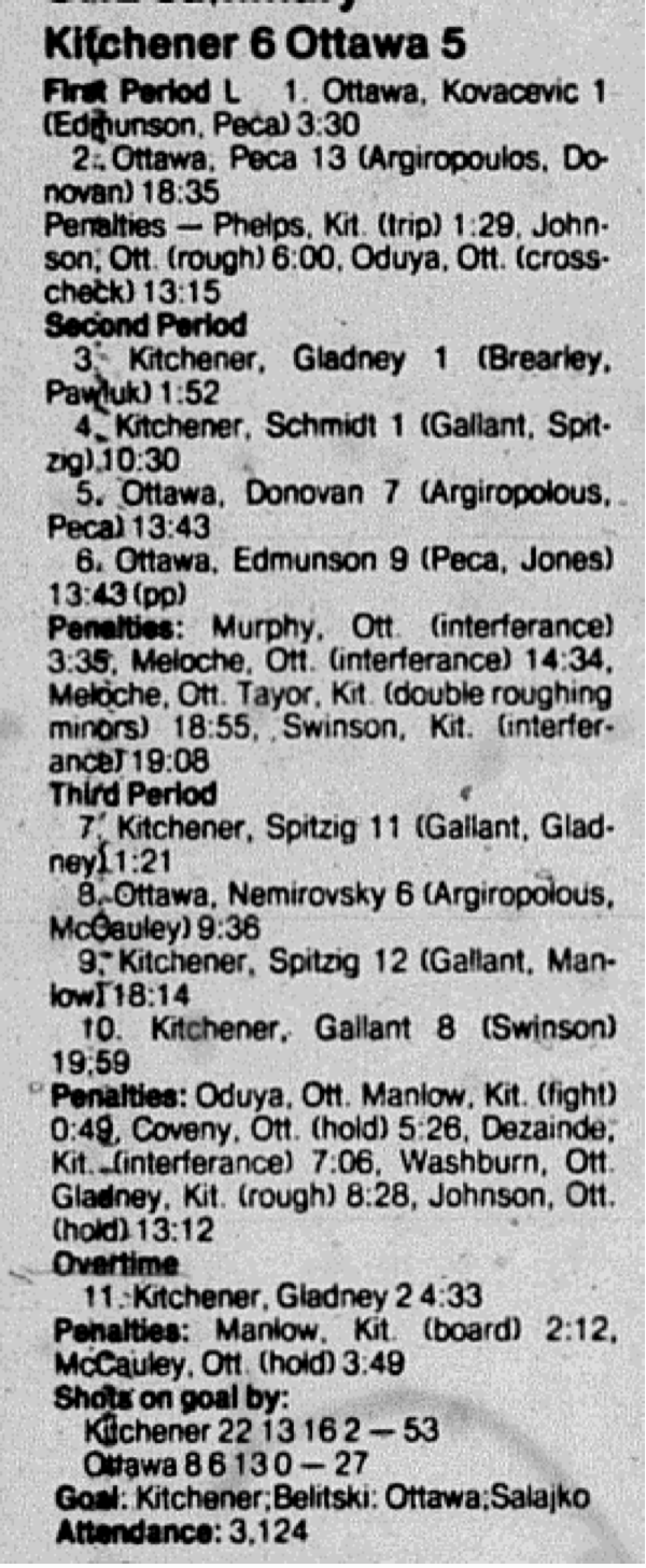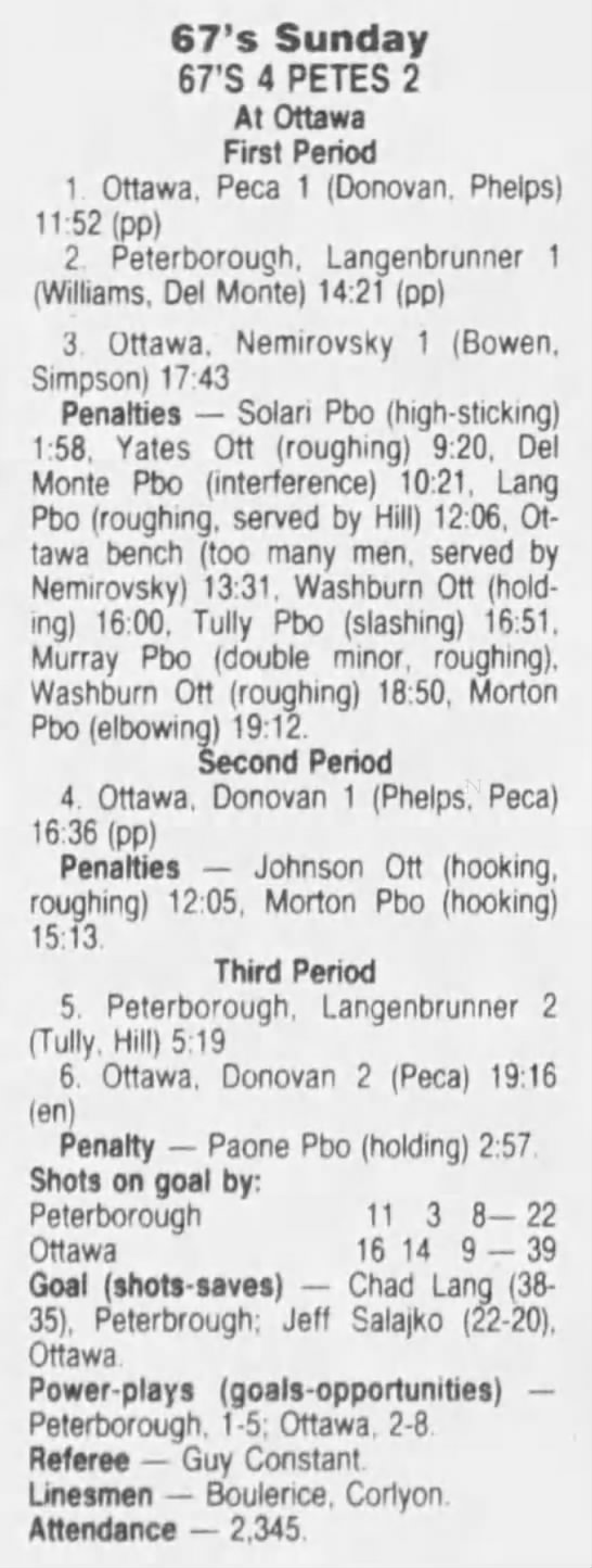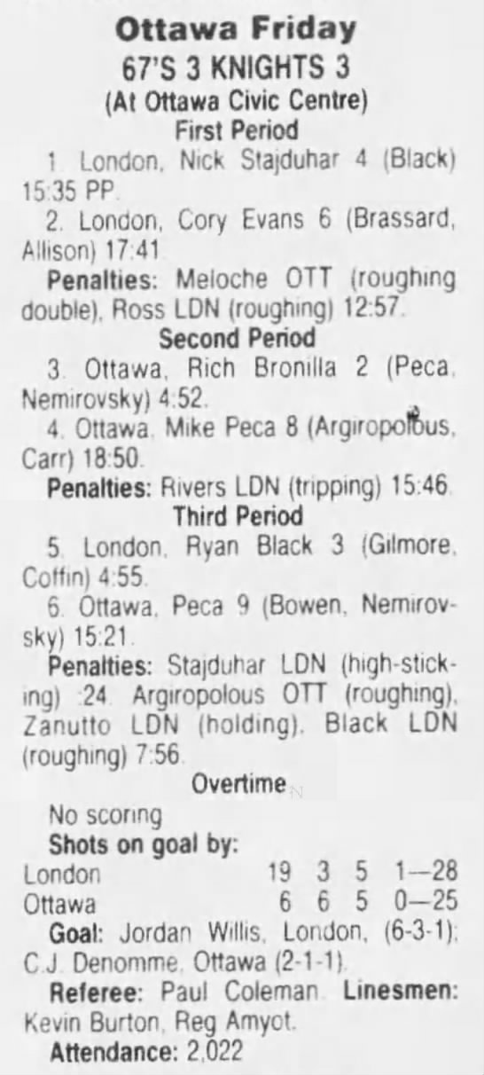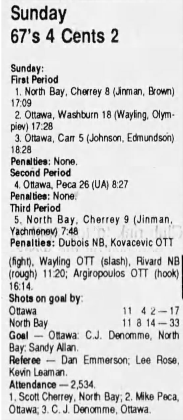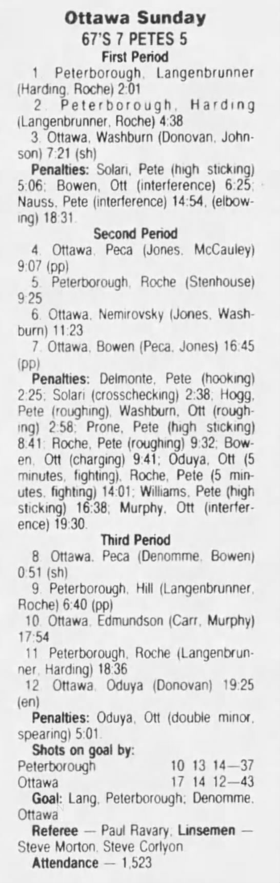 December 9 1993- Ottawa @ Peterborough (8-5 Peterborough)