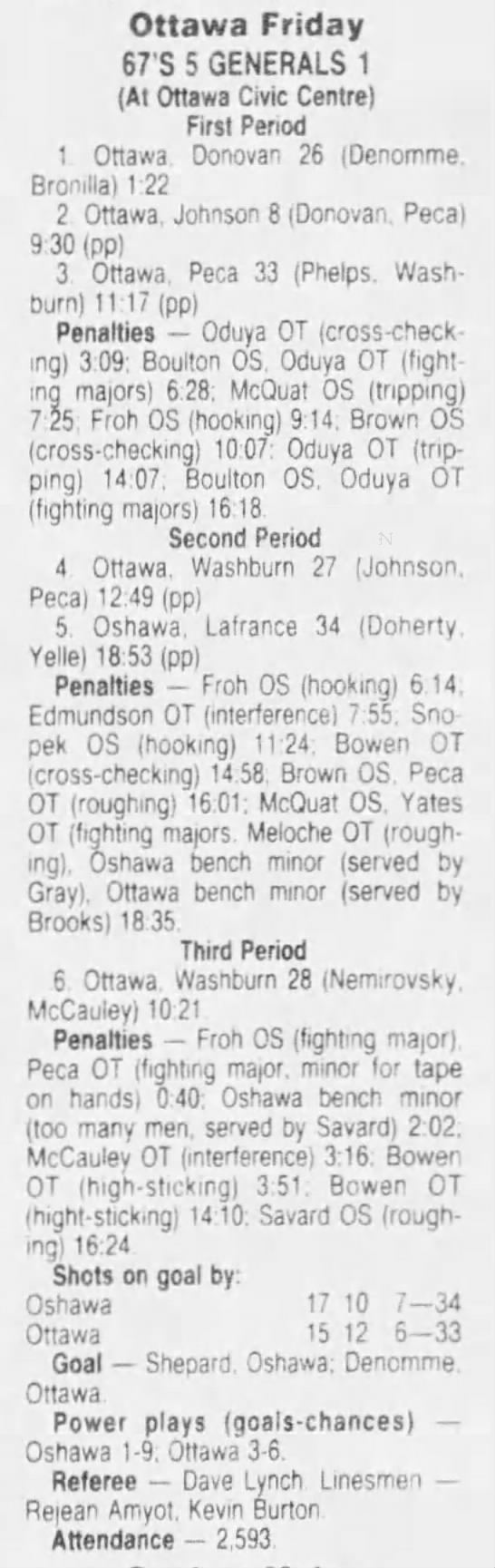 September 26 1993- Ottawa @ Oshawa (6-2 Oshawa)