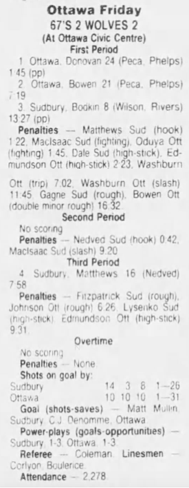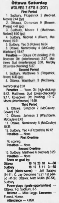 February 18 1994- Ottawa @ Sudbury (7-3 Sudbury)