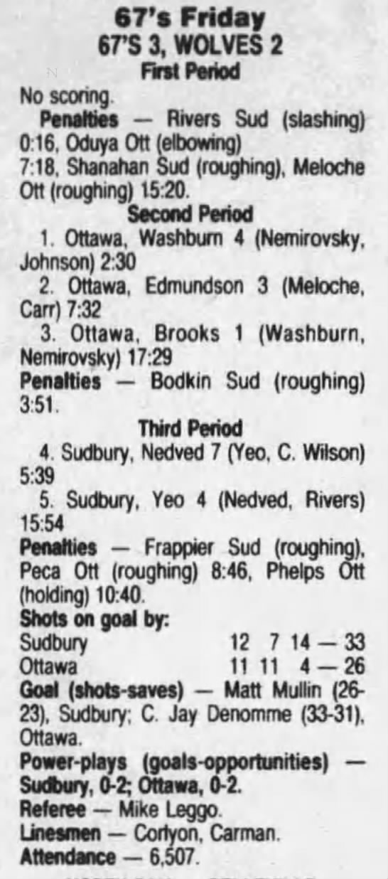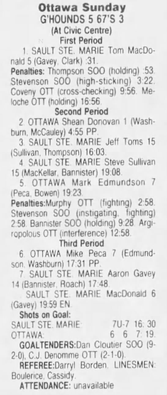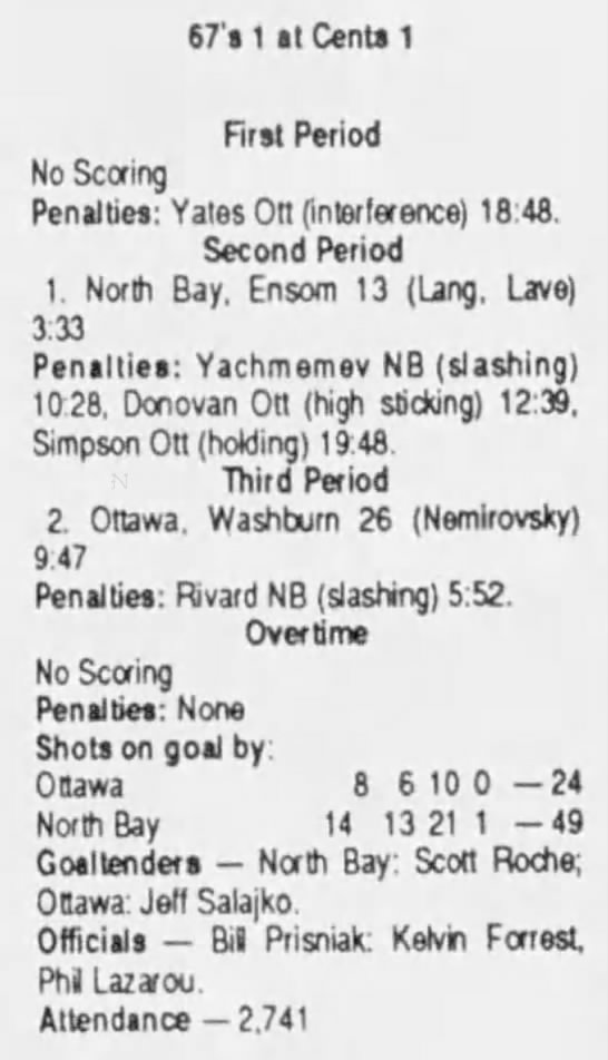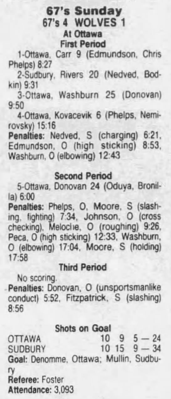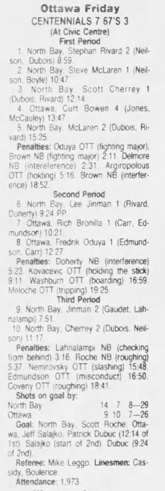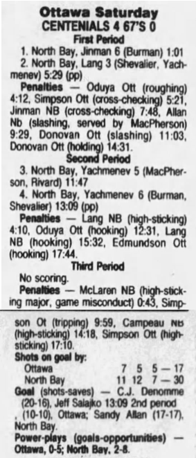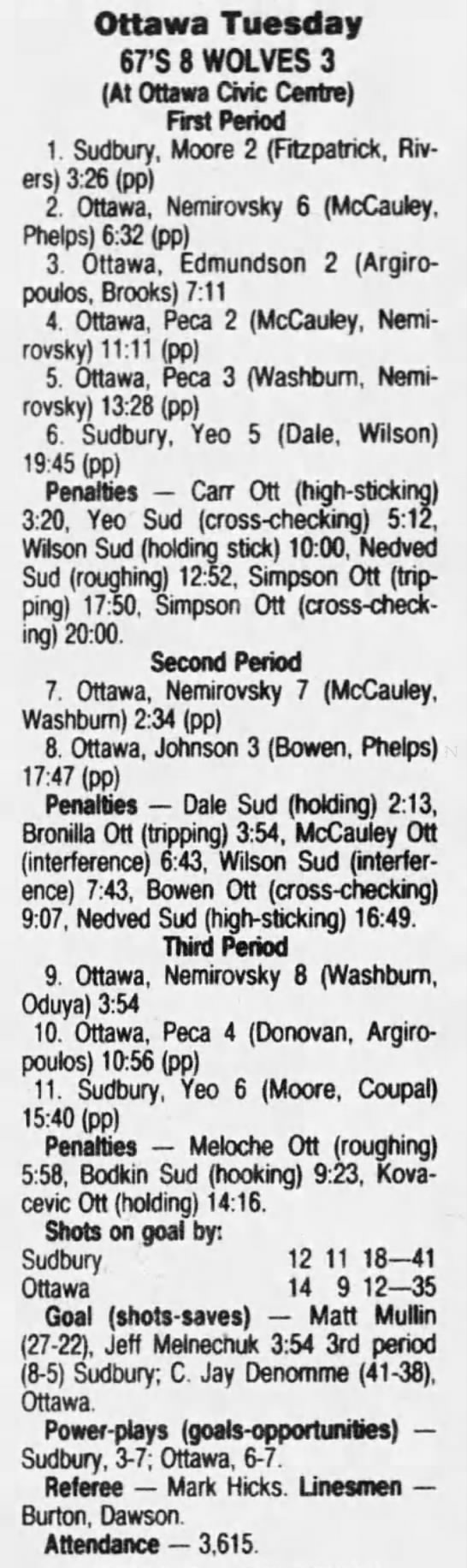 November 21 1993- Ottawa @ Sudbury (7-5 Ottawa)