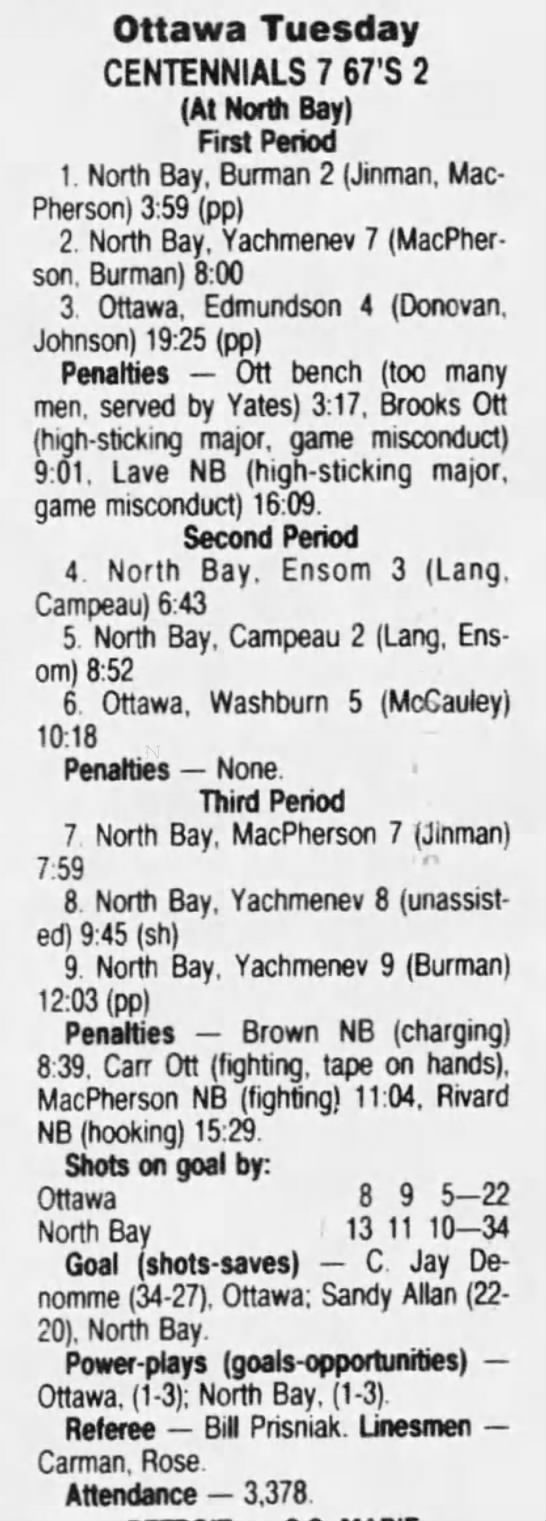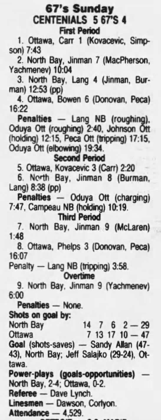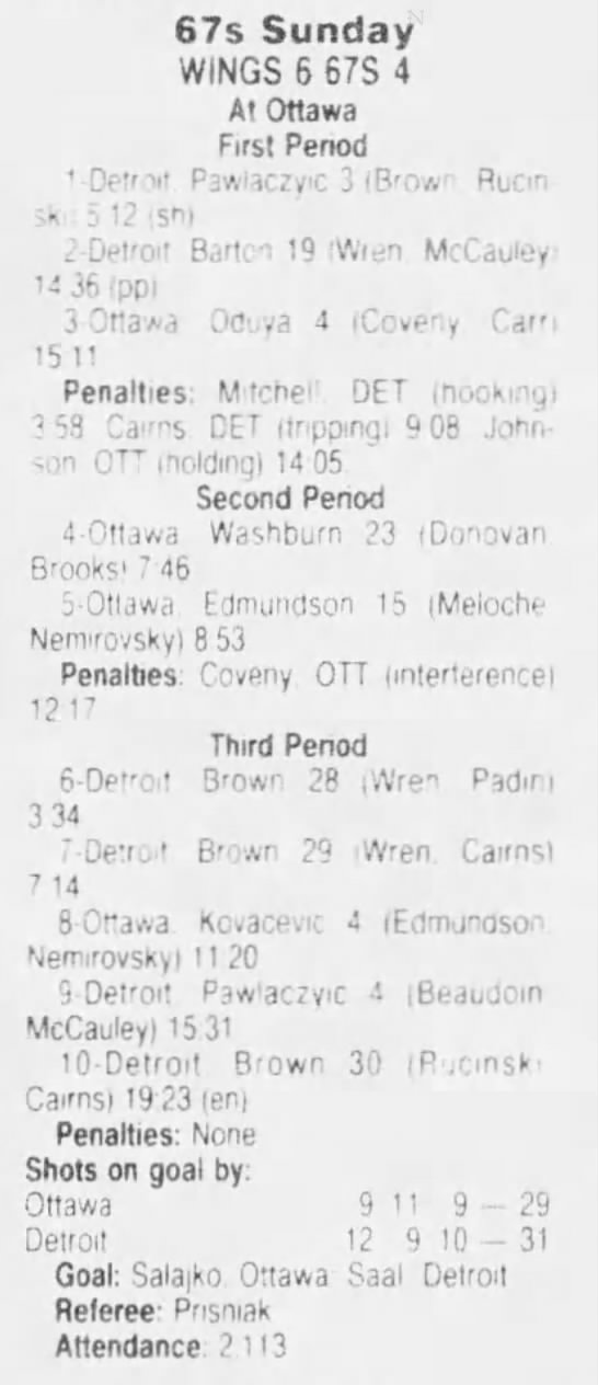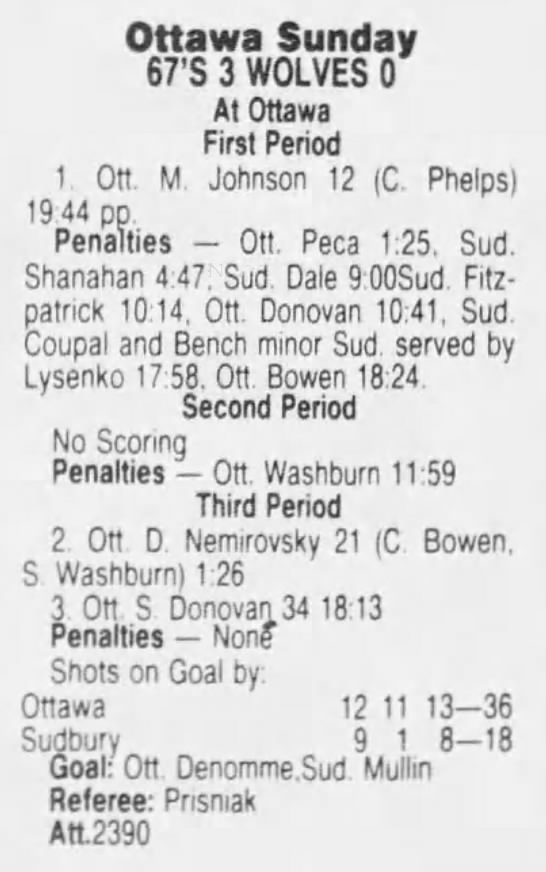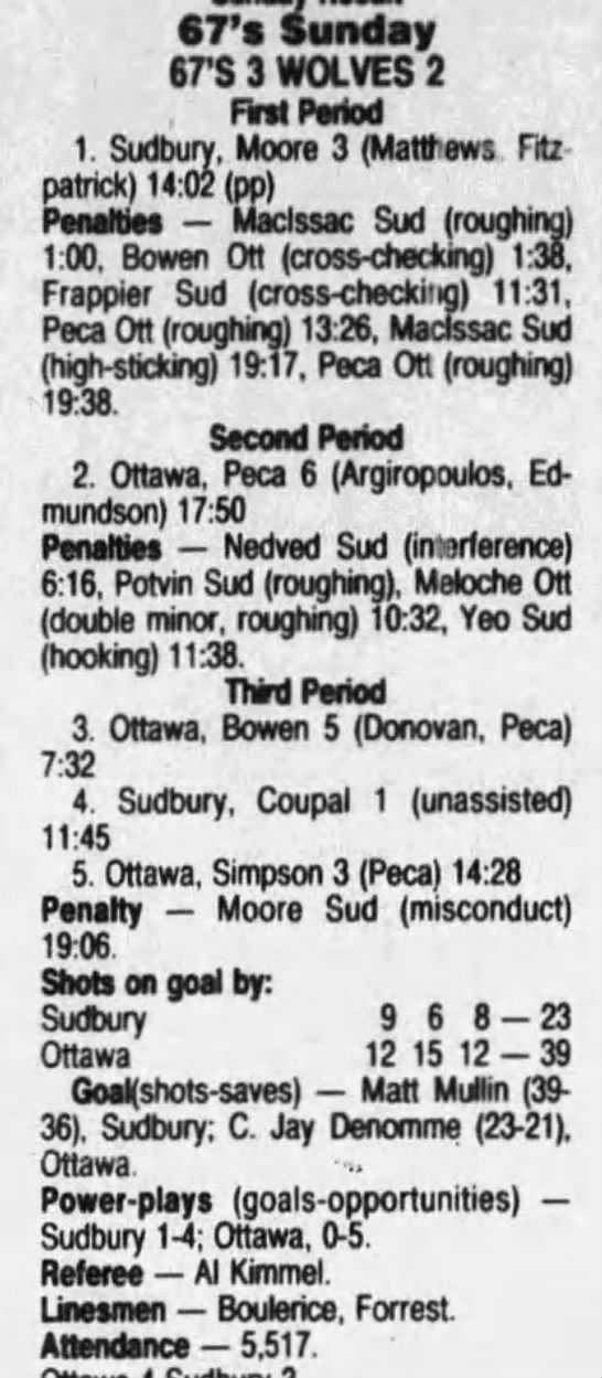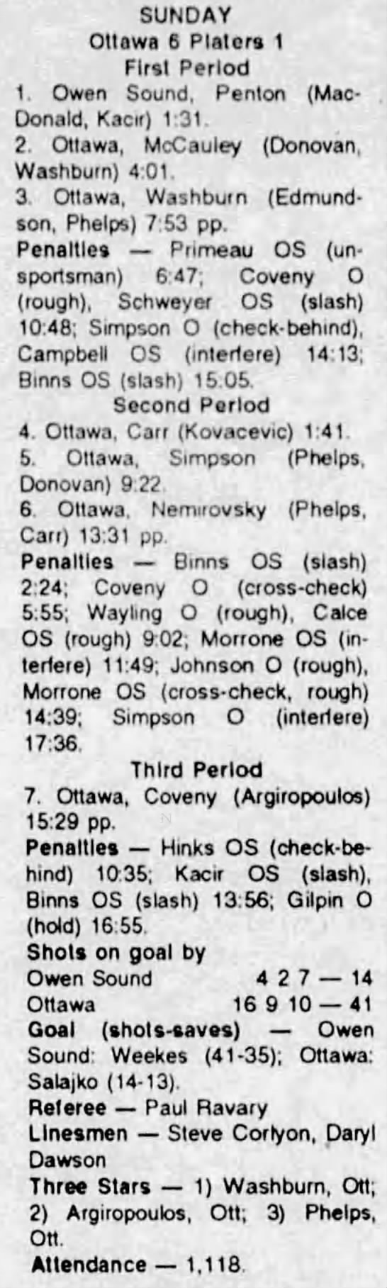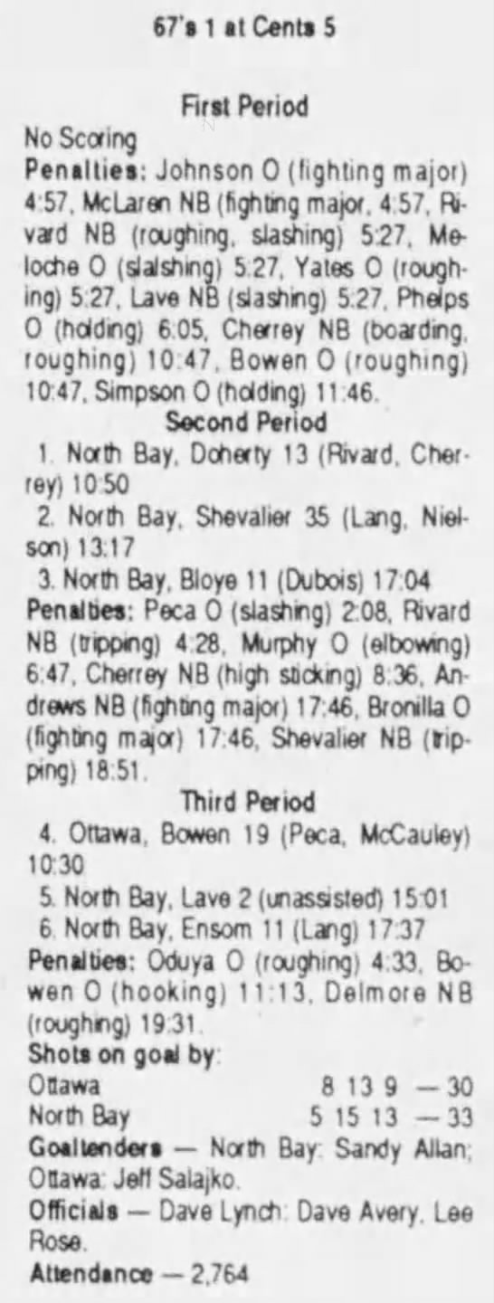 November 21 1993- Ottawa @ Sudbury (7-5 Ottawa)