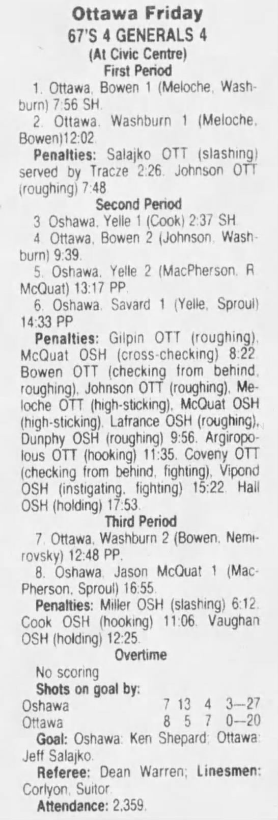 November 7 1993- Ottawa @ Oshawa (4-4 Tie)