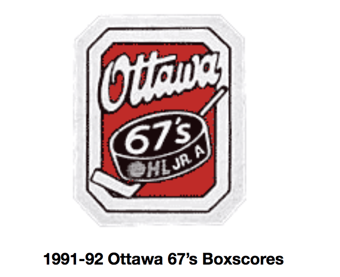 Here are the boxscores from the 1991-92 Ottawa 67’s season. There are some that are missing, but any of the scores that were posted in the Ottawa Citizen are here (56/77 boxscores). If you have any of the games that are missing, please send them my way.