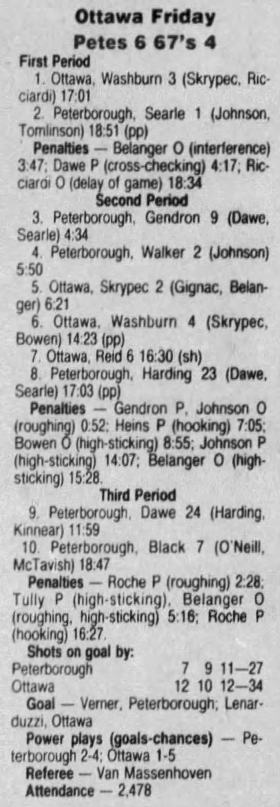October 31 1991- Ottawa @ Peterborough (6-5 Ottawa)