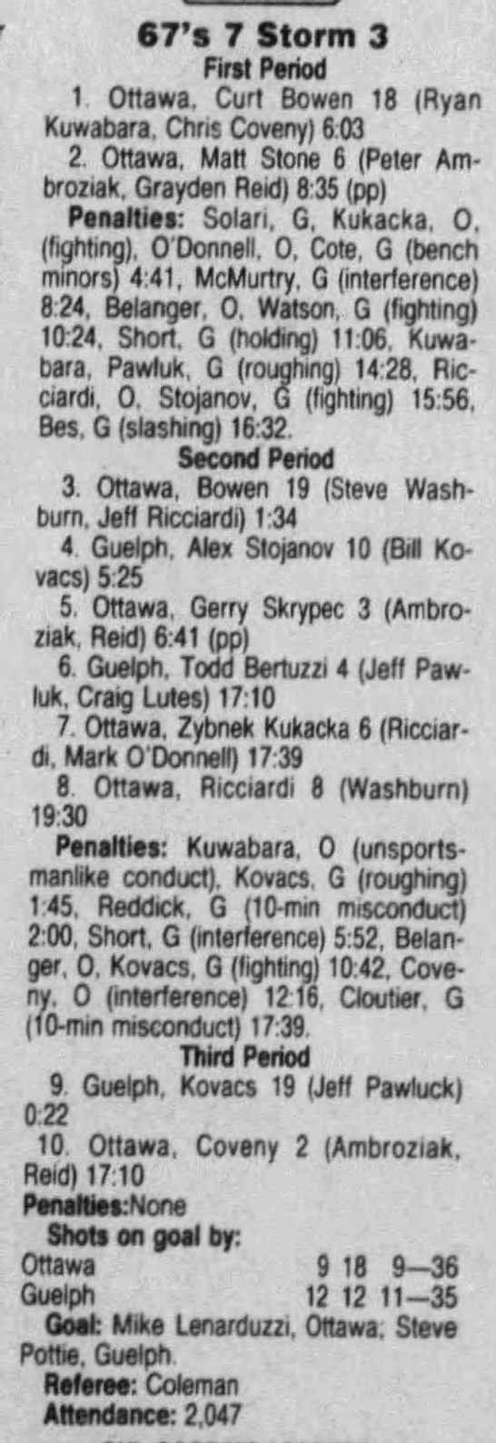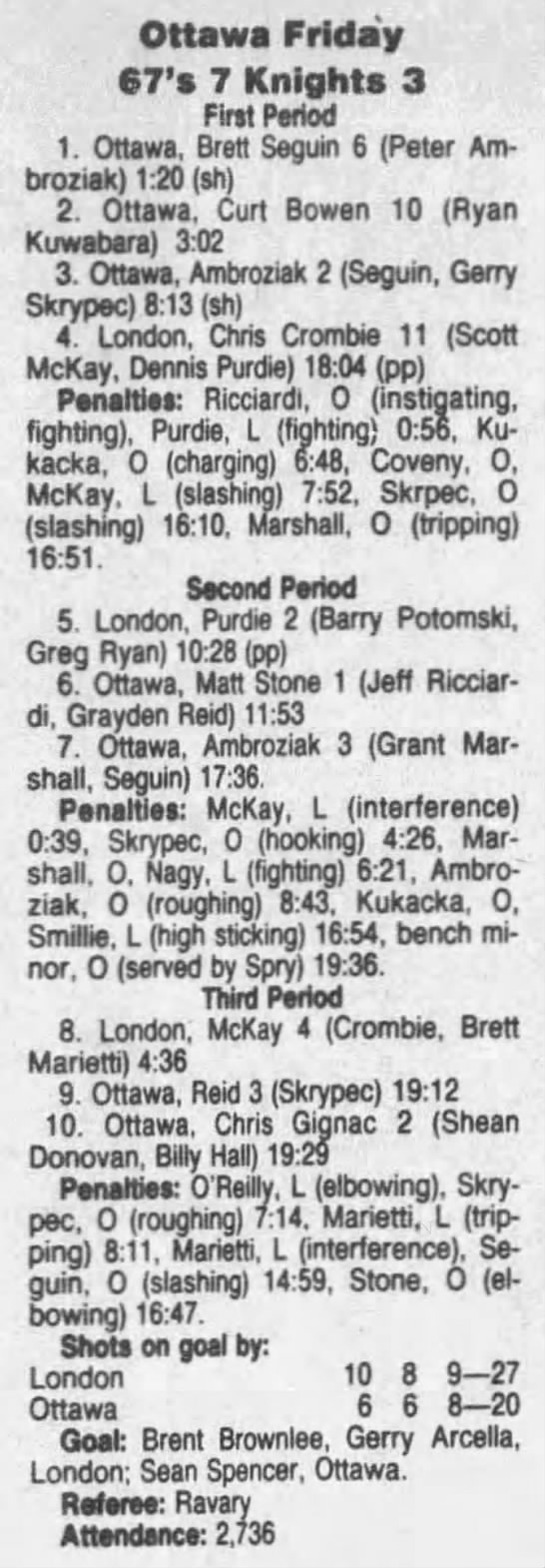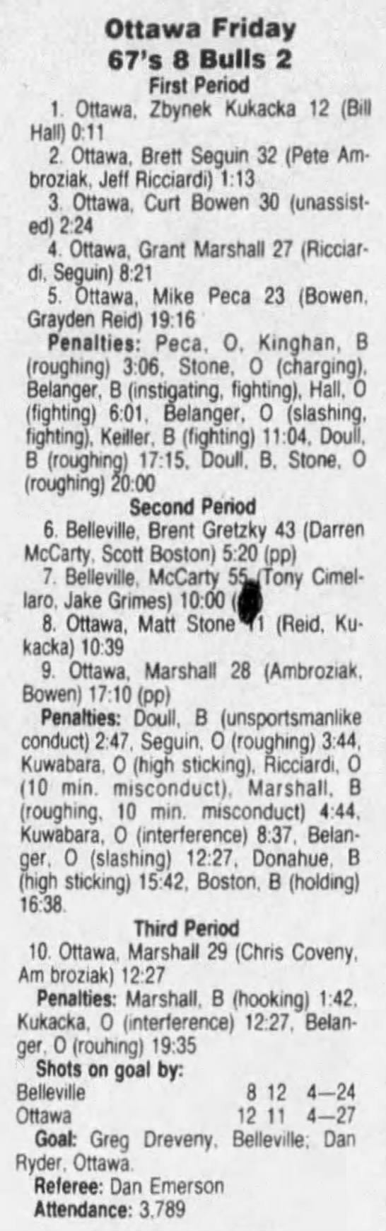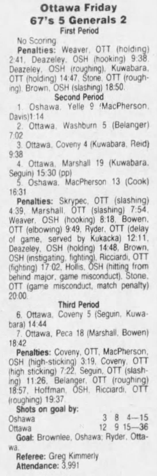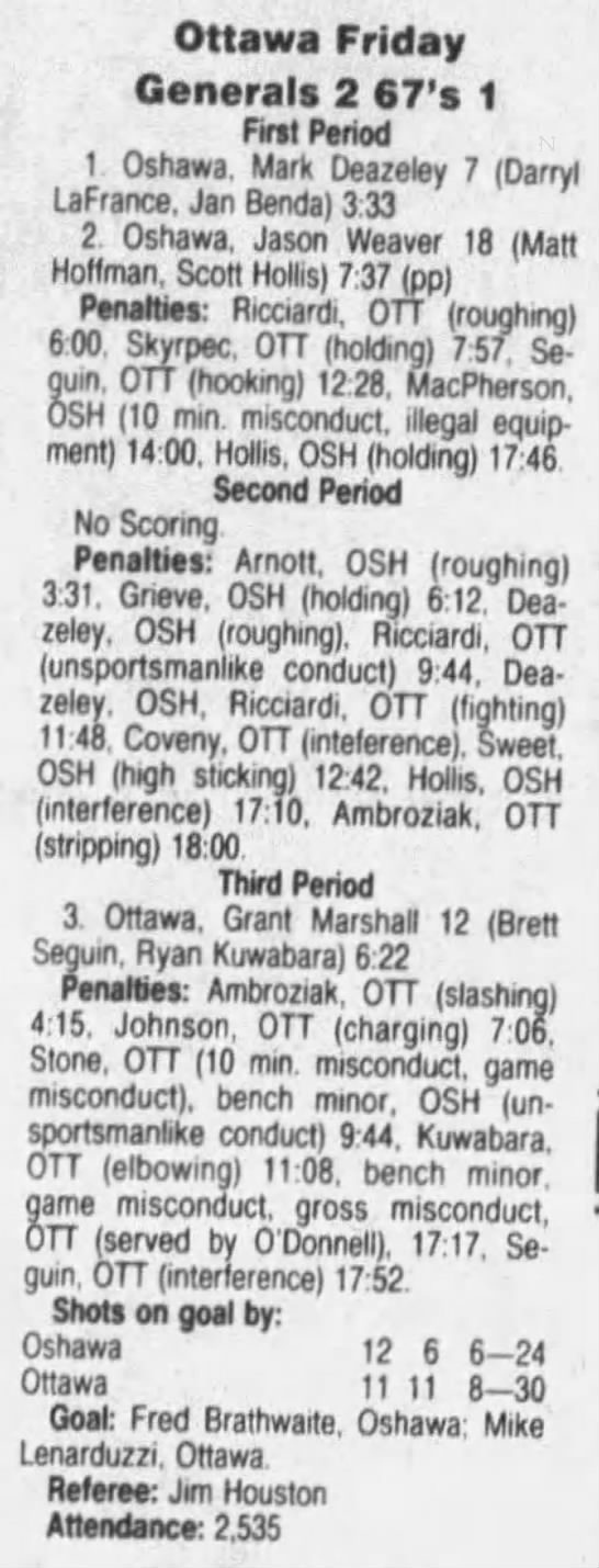March 7 1992- Ottawa @ Oshawa (7-4 Oshawa)