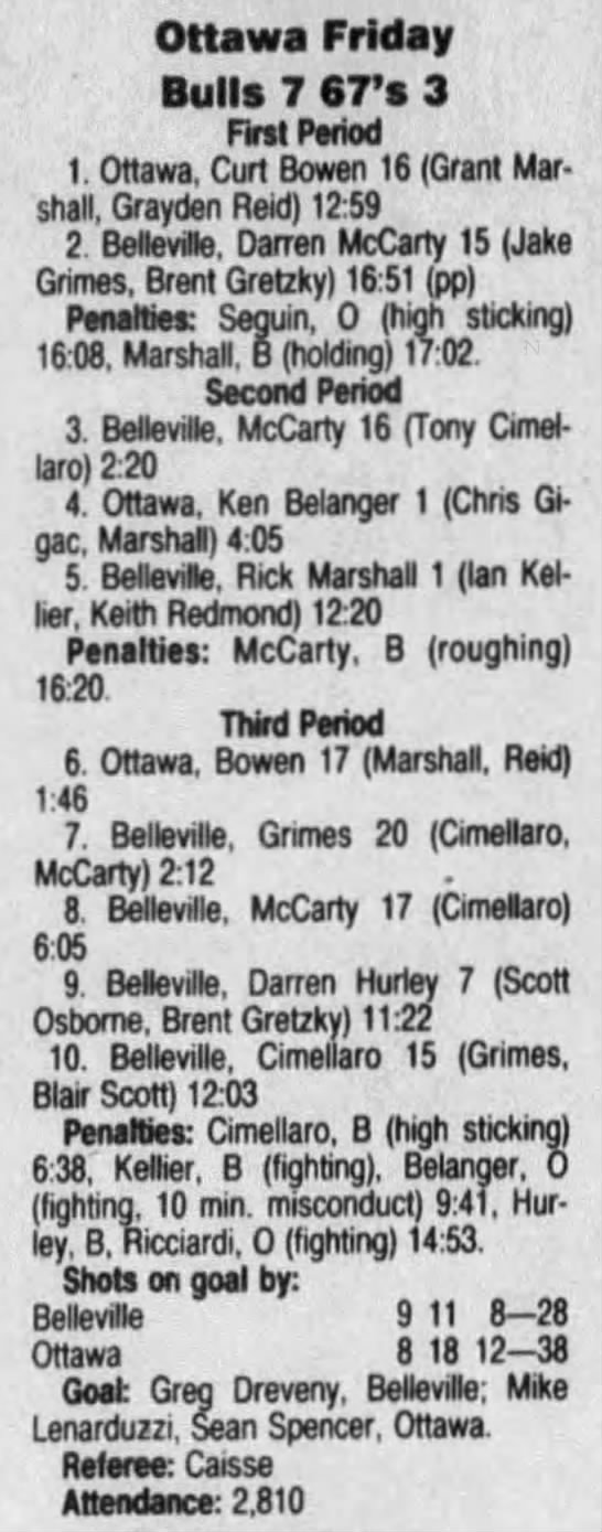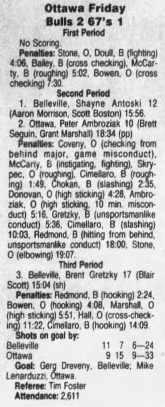 January 1 1992- Ottawa @ Belleville (4-3 Belleville)