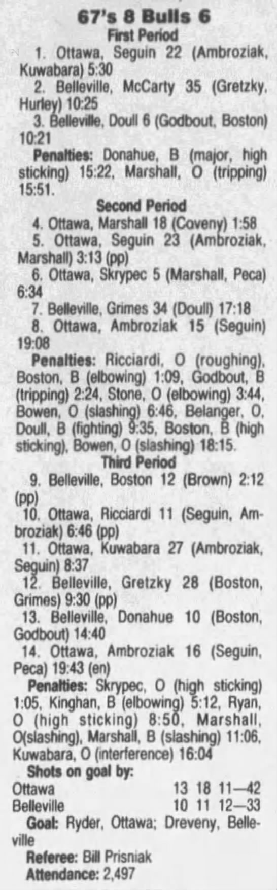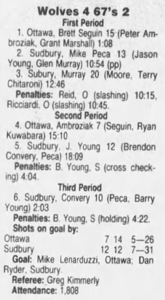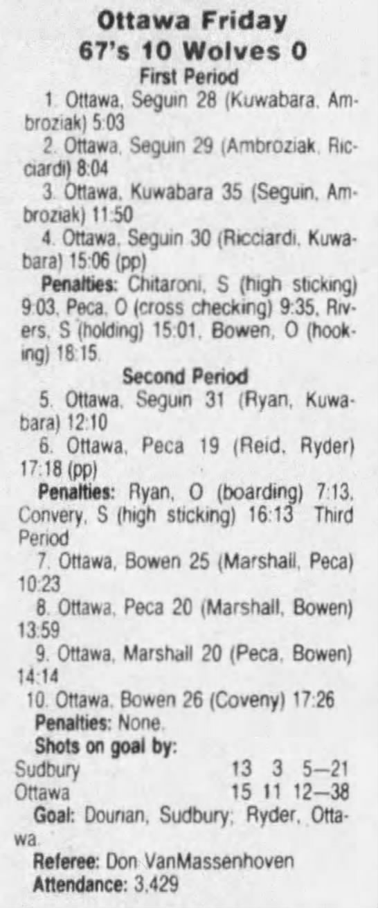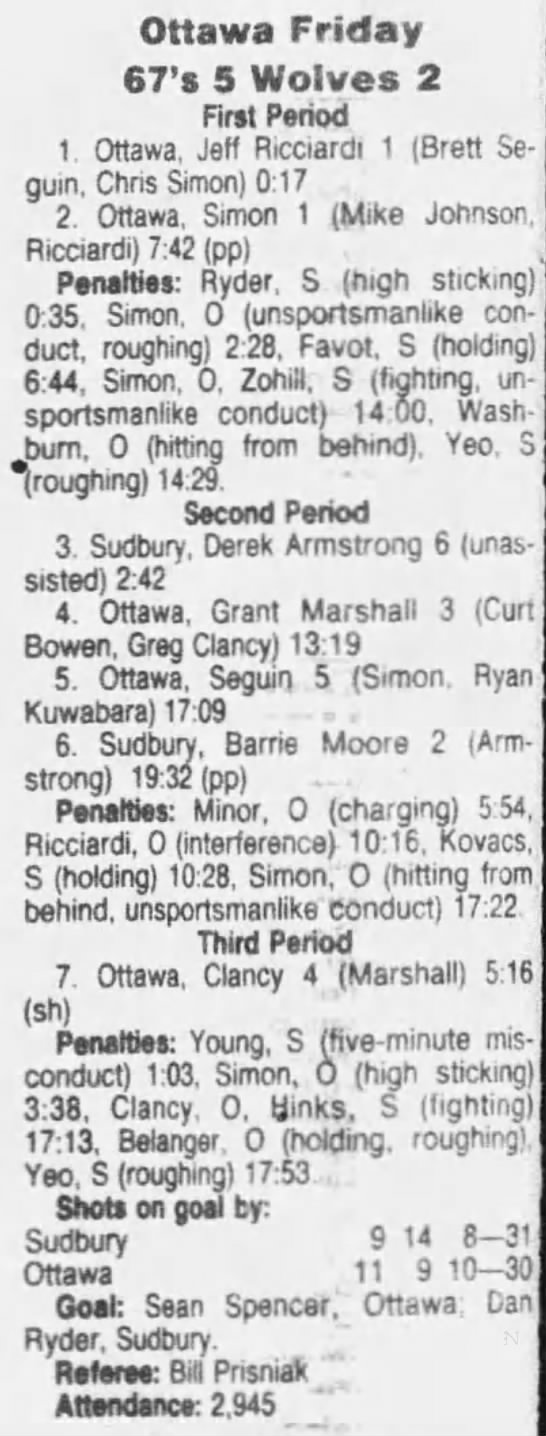 September 29 1991- Ottawa @ Sudbury (9-8 Sudbury)