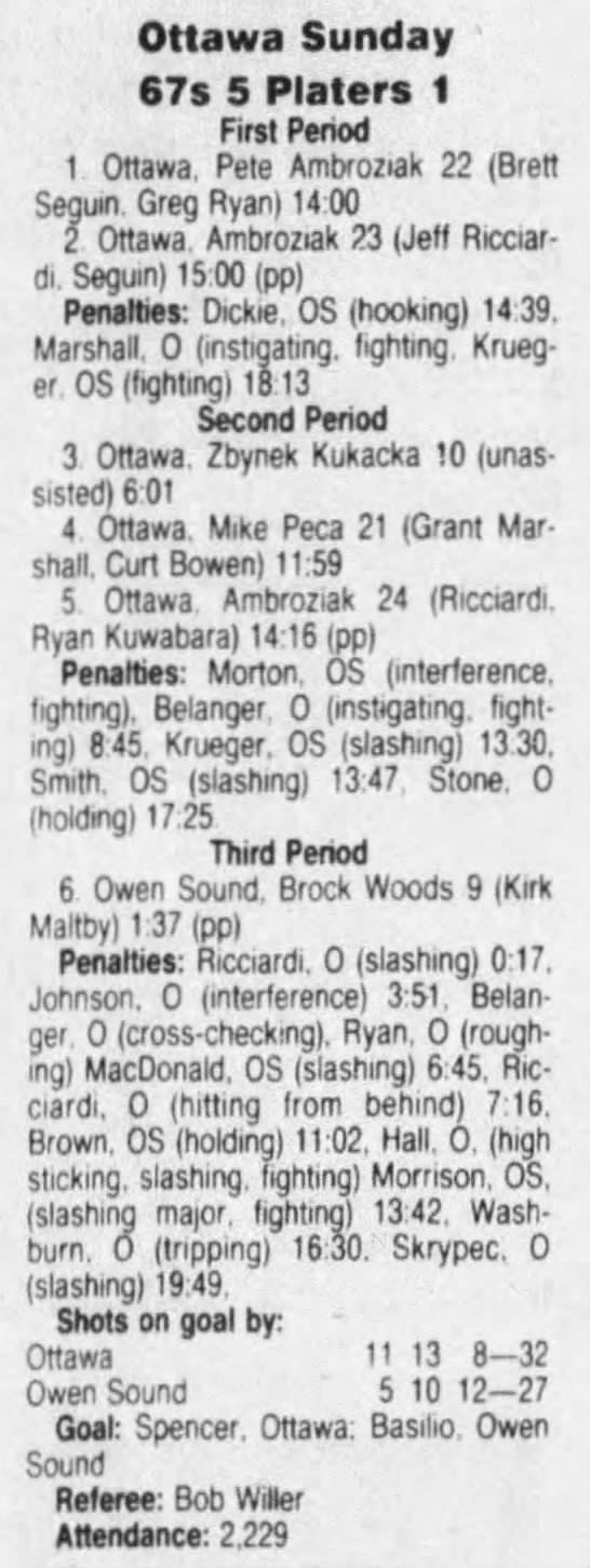 February 16 1992- Owen Sound @ Ottawa
