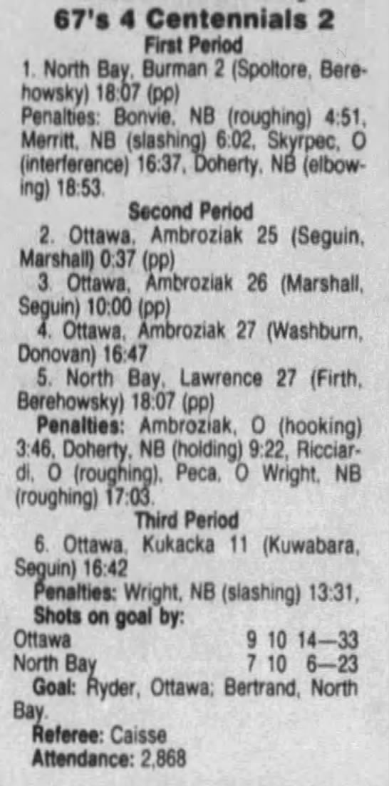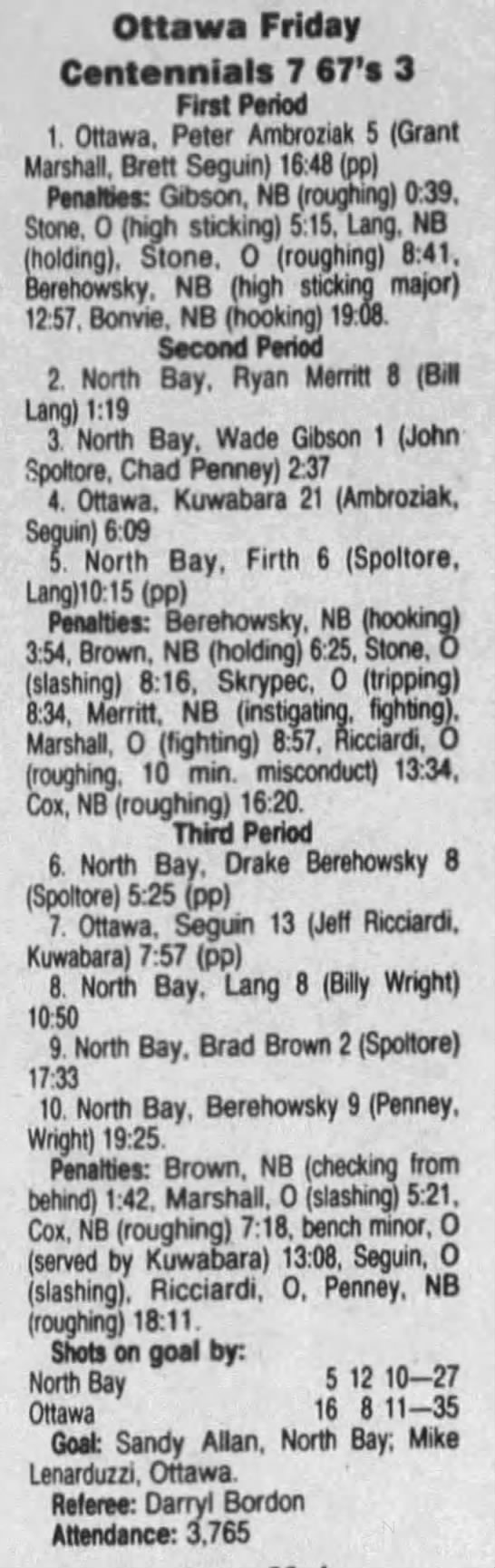 October 14 1991- Ottawa @ North Bay (7-5 North Bay)