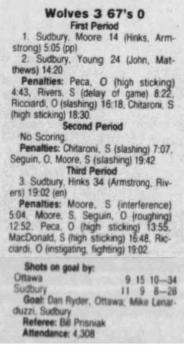 November 3 1991- Ottawa @ Sudbury (11-7 Sudbury)