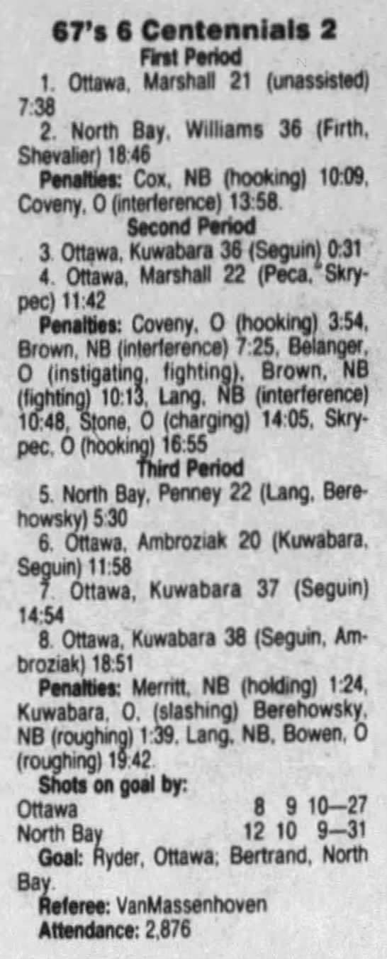 December 1 1991- Ottawa @ North Bay (10-7 Ottawa)