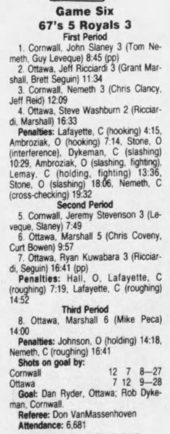 Game 5- March 22 1992- Ottawa @ Cornwall
