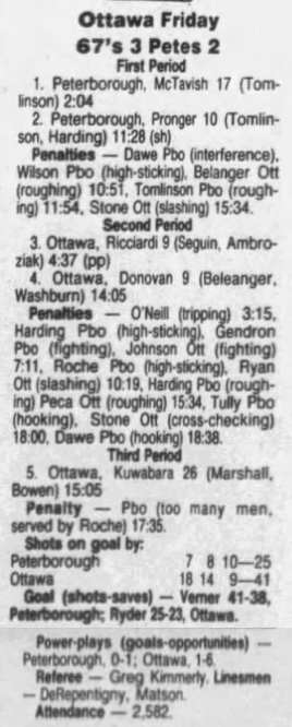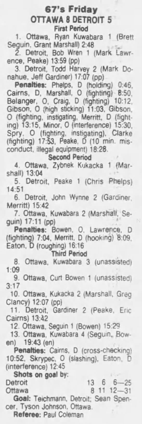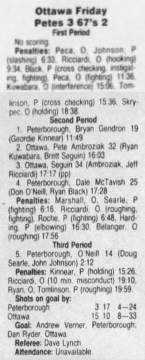 November 9 1991- Ottawa @ Peterborough (7-3 Peterborough)