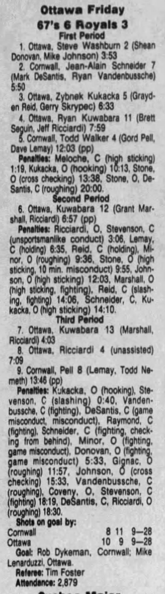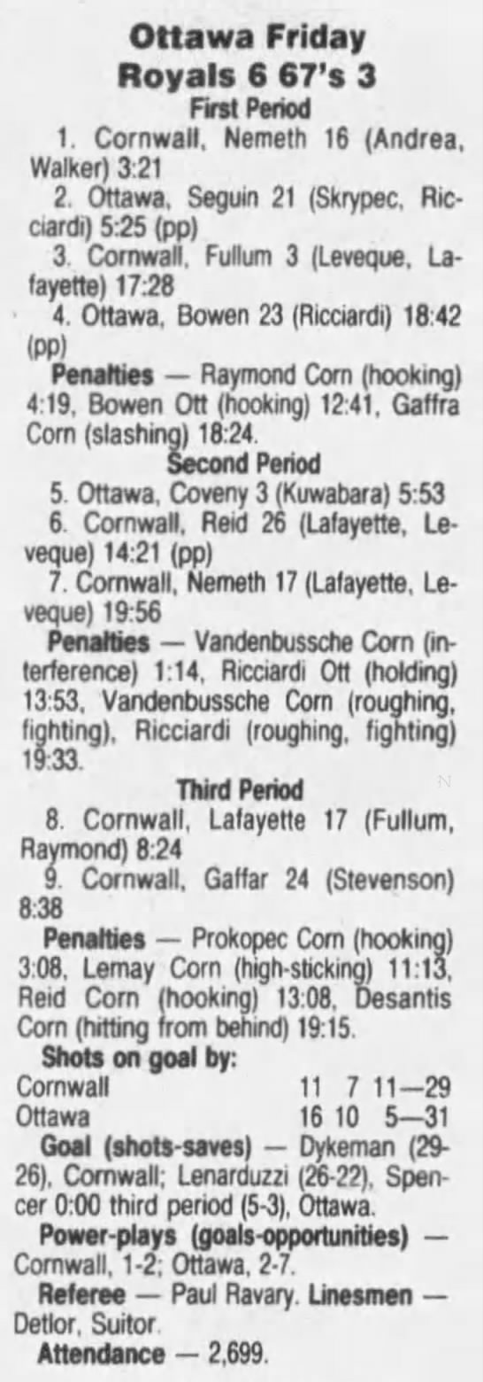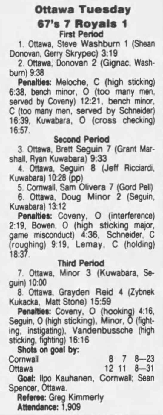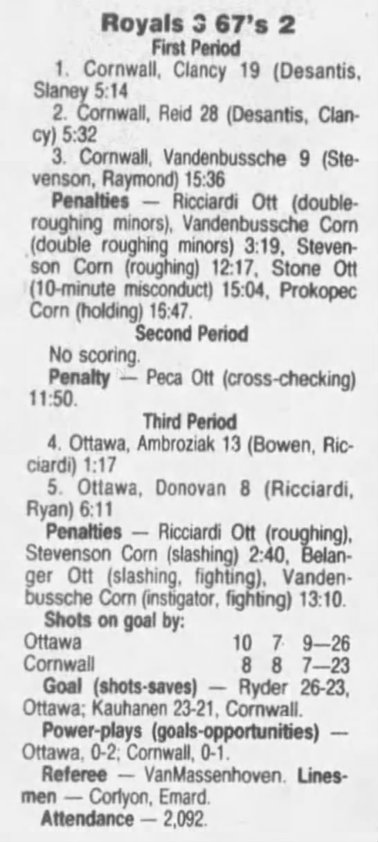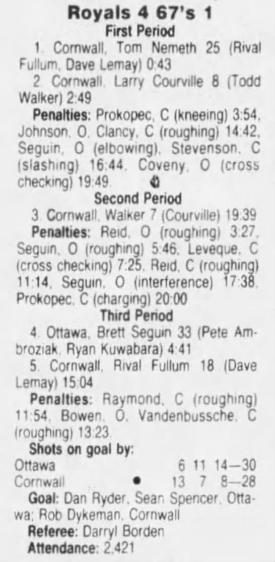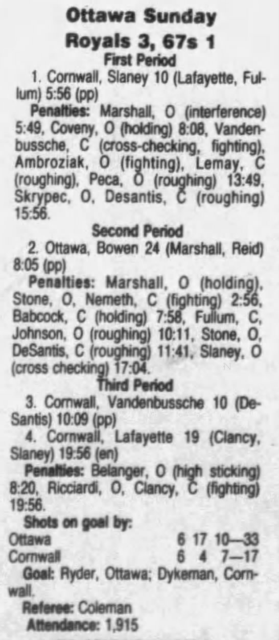February 27 1992- Ottawa @ Cornwall (6-3 Cornwall)