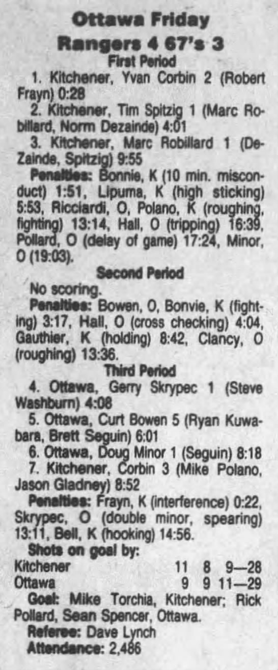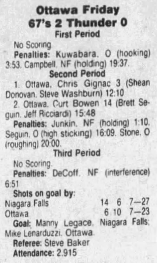 October 6 1991- Ottawa @ Oshawa (3-2 Ottawa)