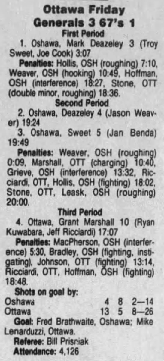December 6 1991- Oshawa @ Ottawa