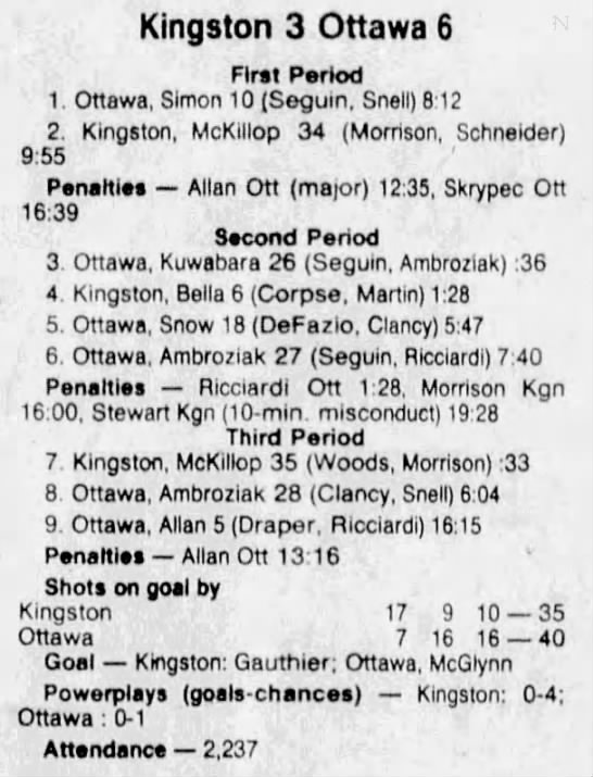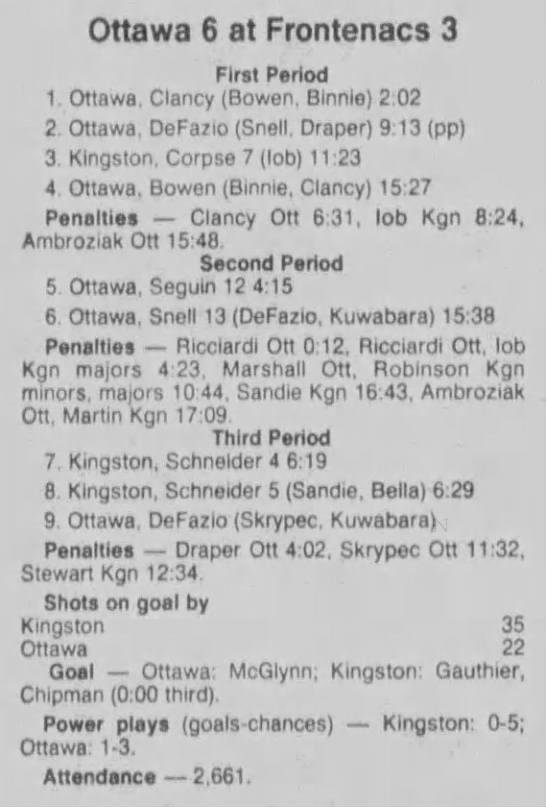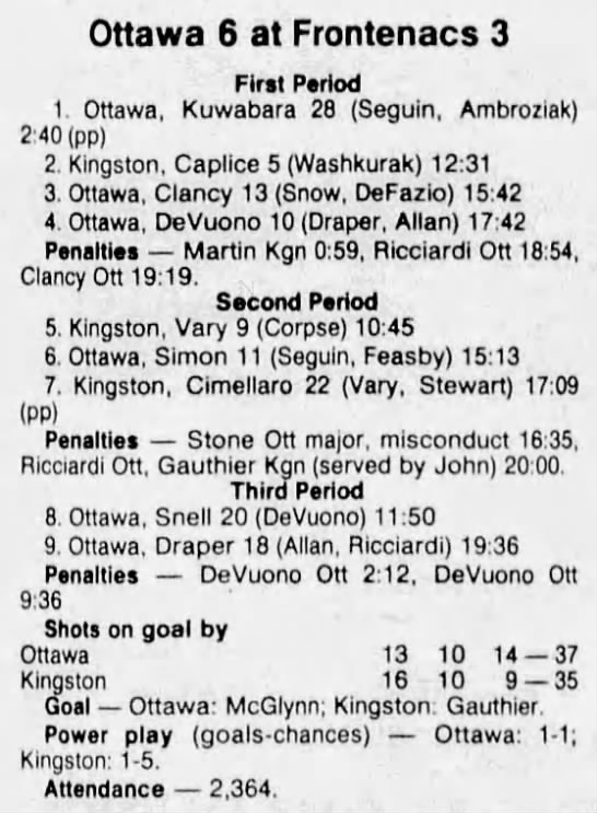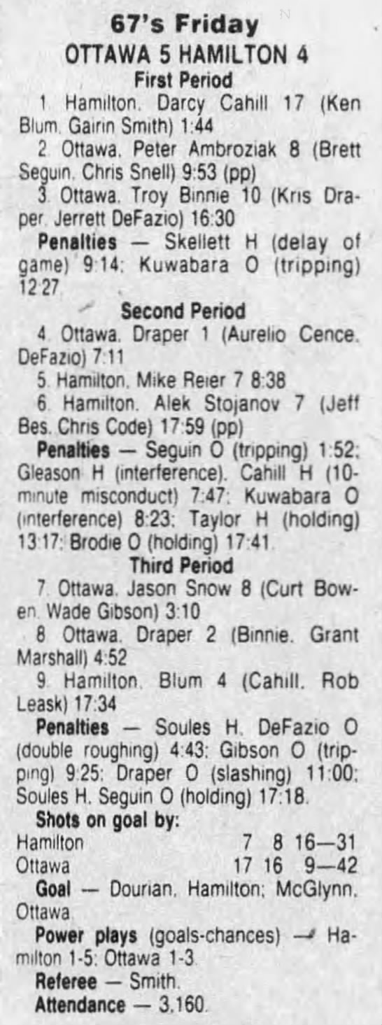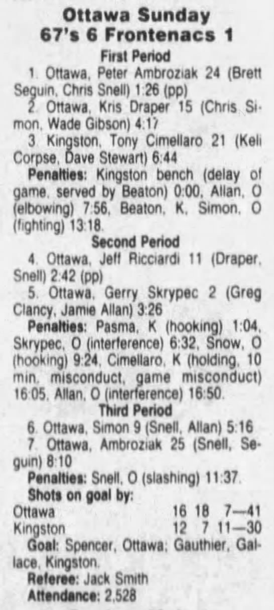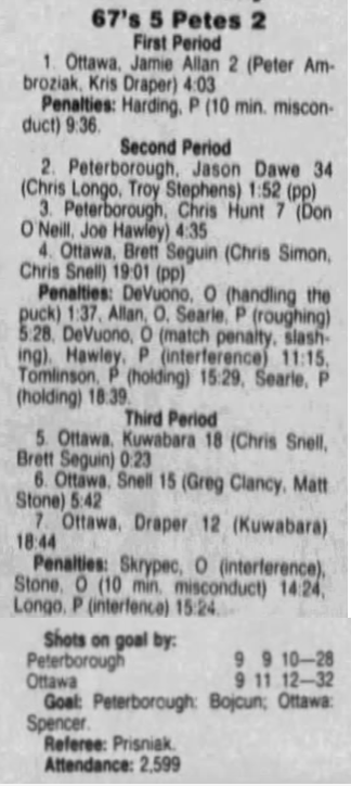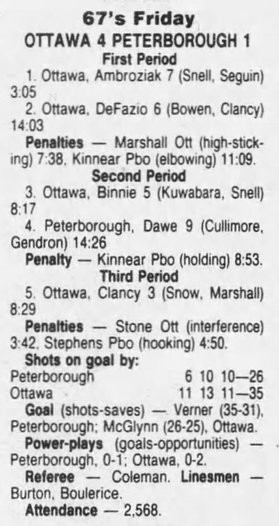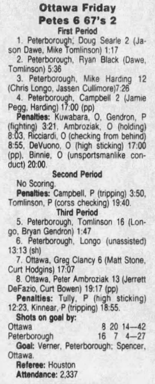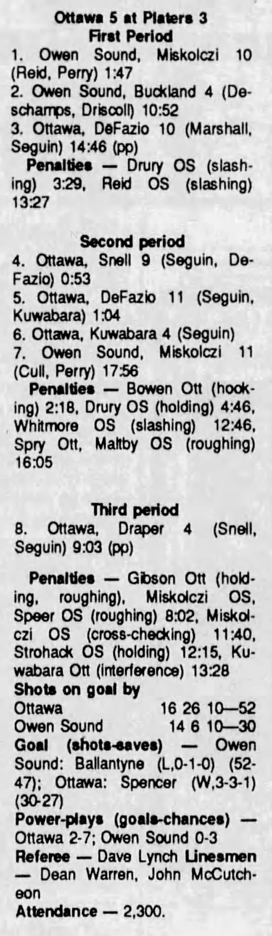September 20 1990- Ottawa @ Peterborough (7-2 Peterborough)