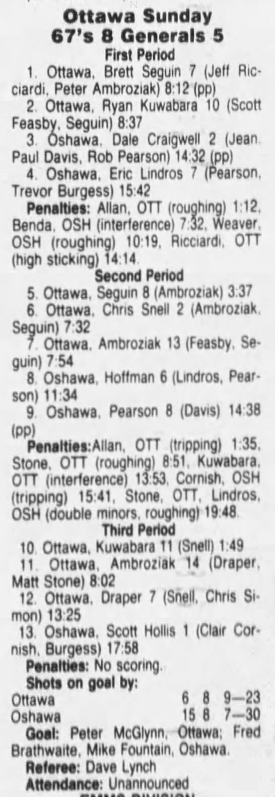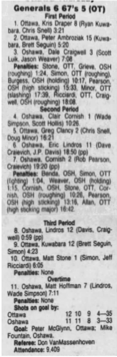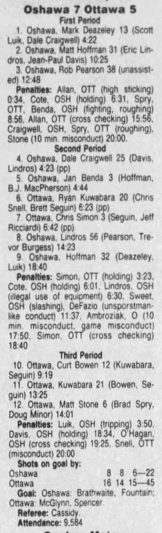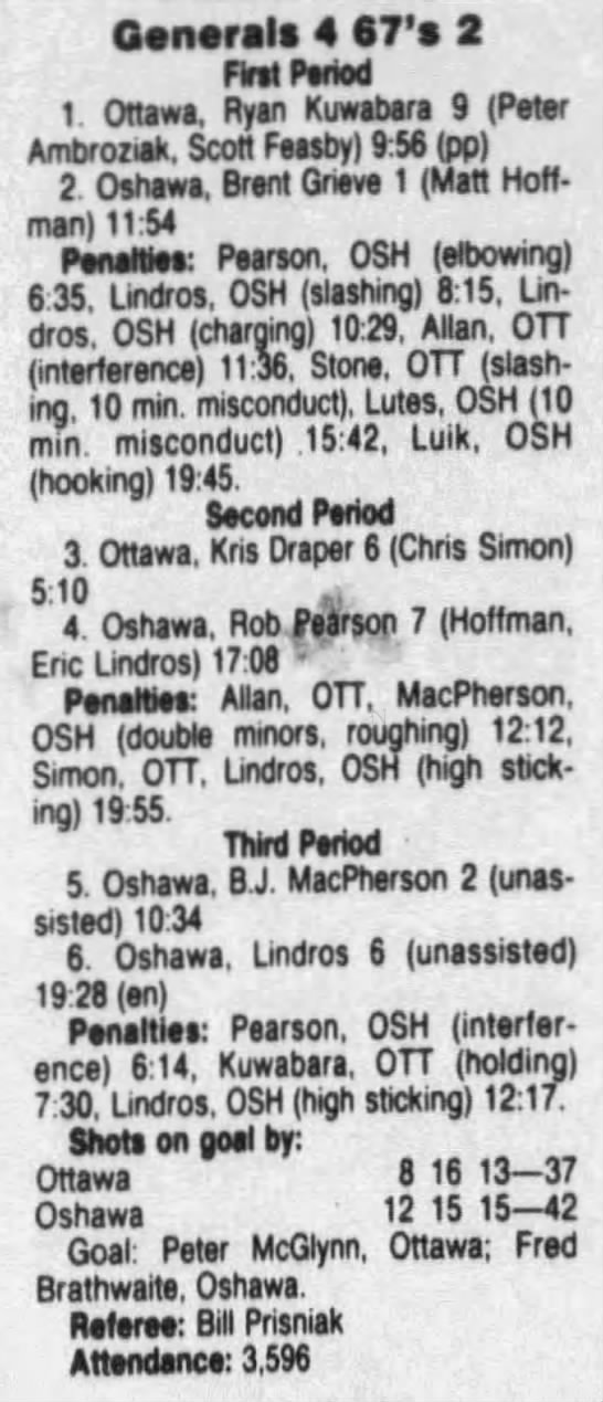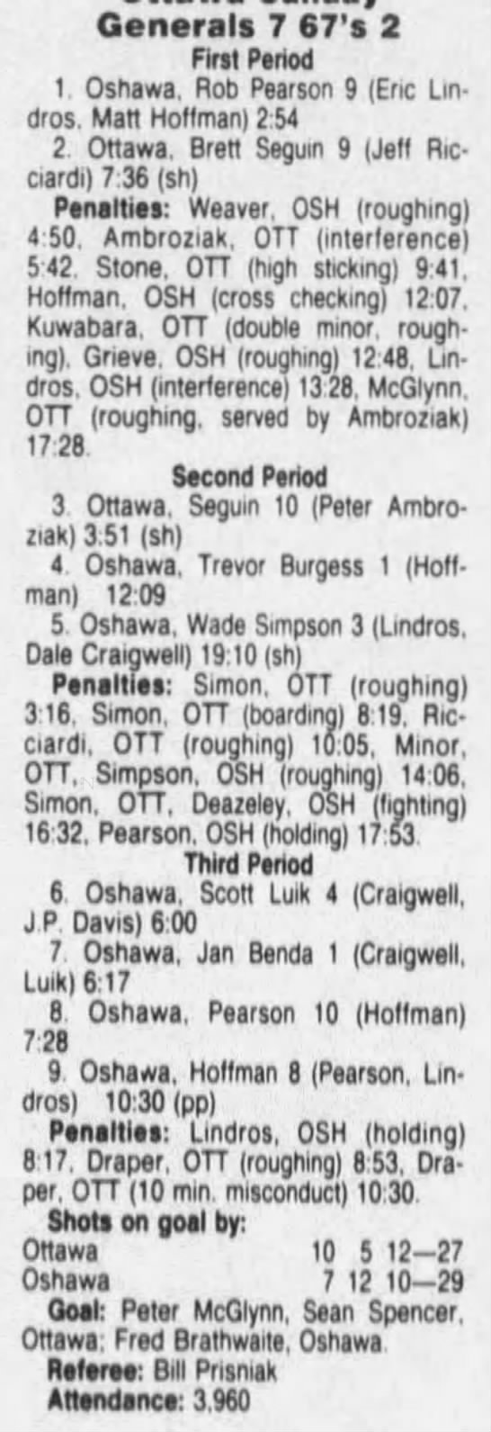 October 28 1990- Ottawa @ Oshawa (4-1 Oshawa)