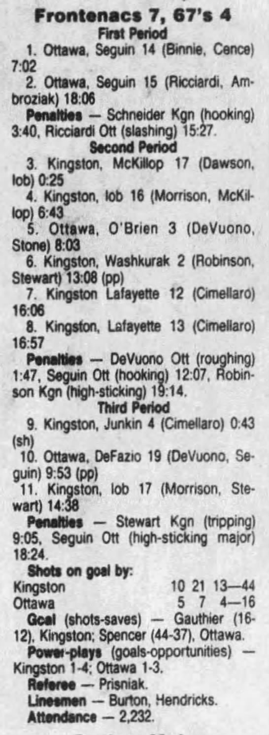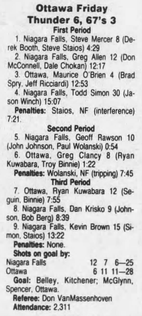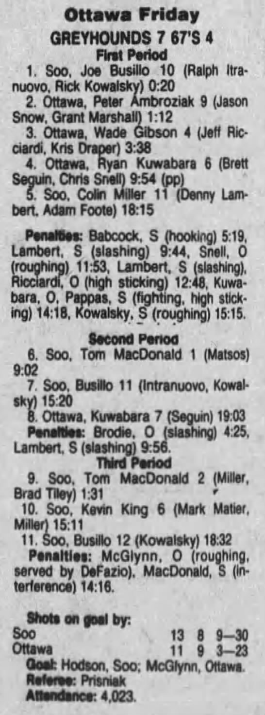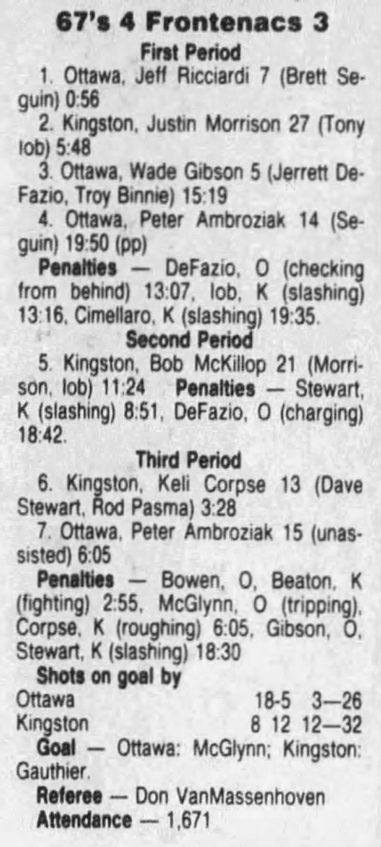 October 28 1990- Ottawa @ Oshawa (4-1 Oshawa)