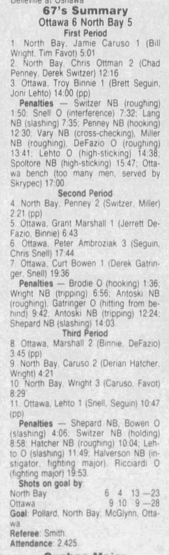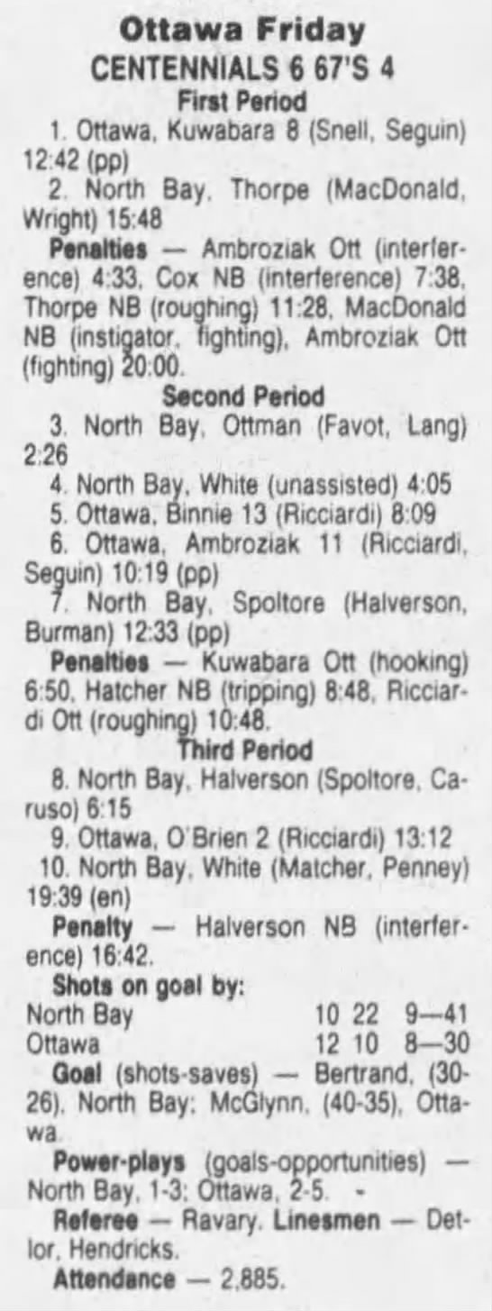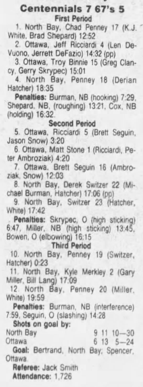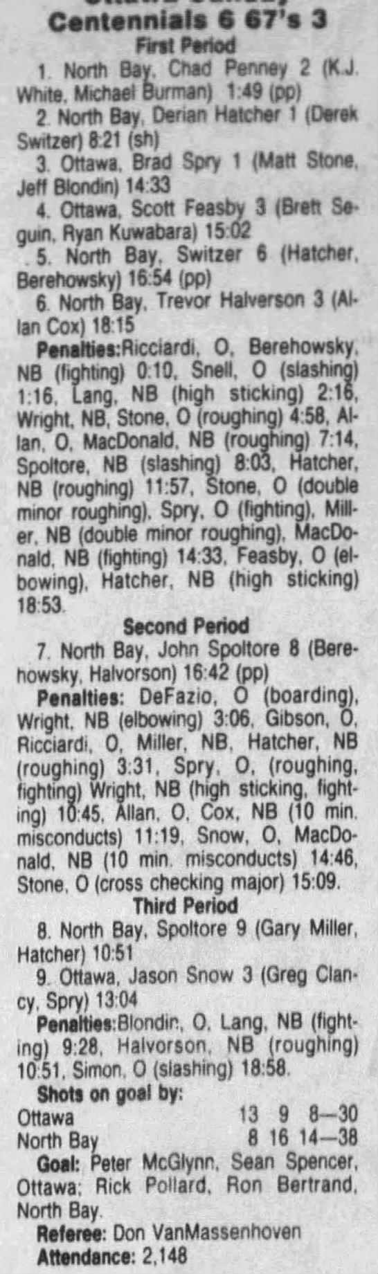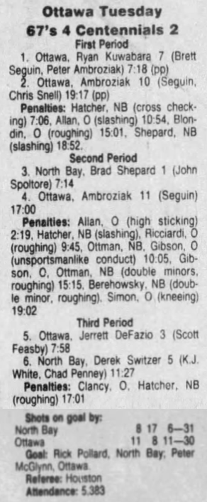 February 17 1991- Ottawa @ North Bay (6-4 North Bay)