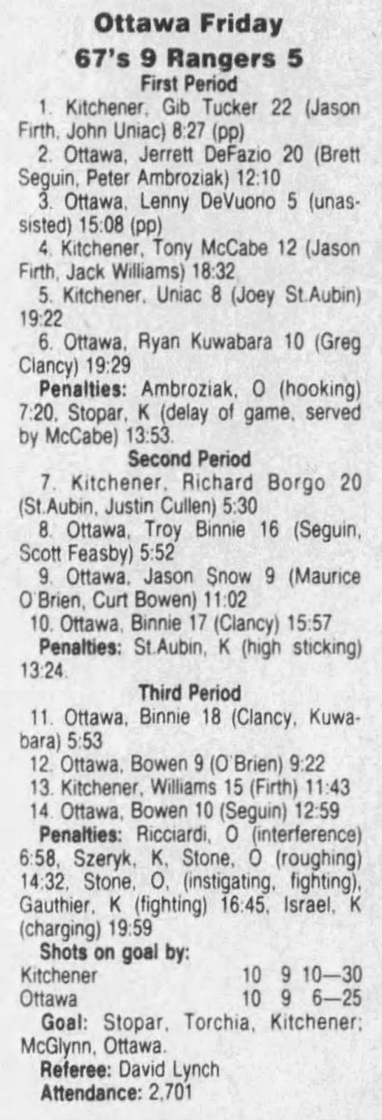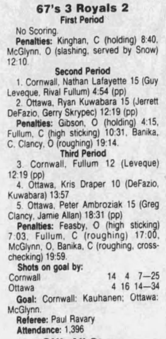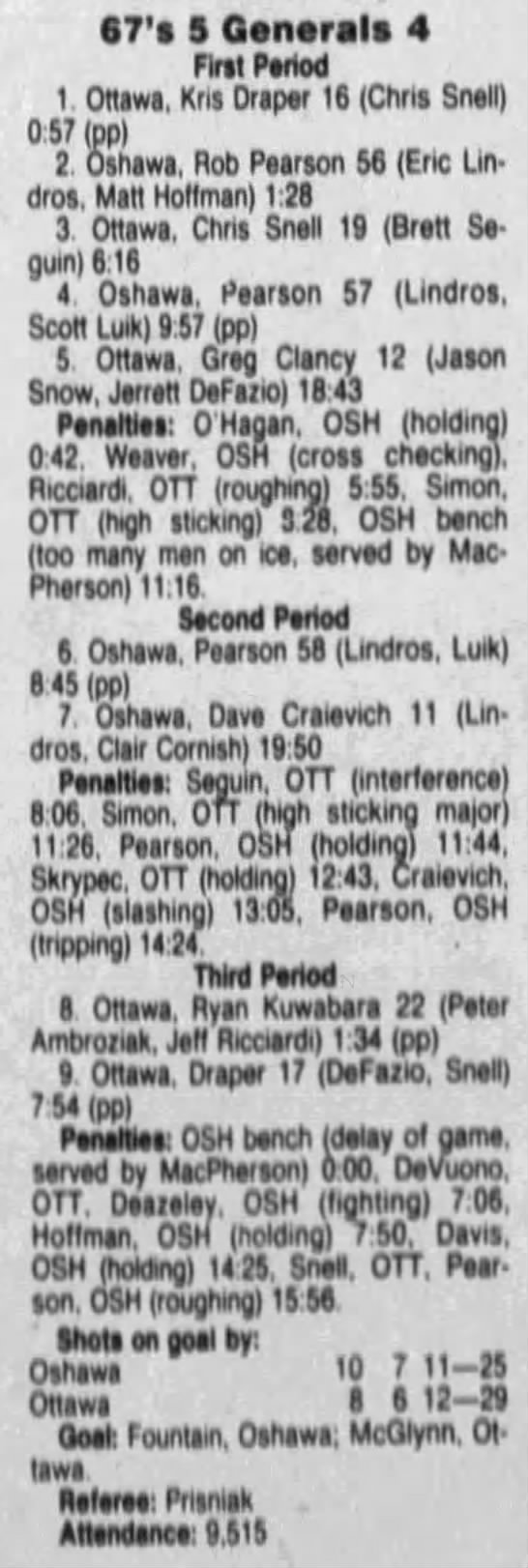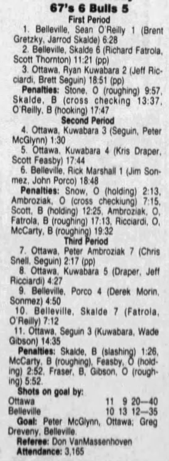 December 9 1990- Ottawa @ Oshawa (4-3 Ottawa)