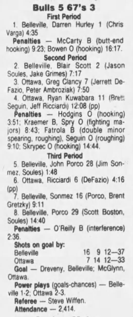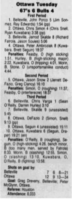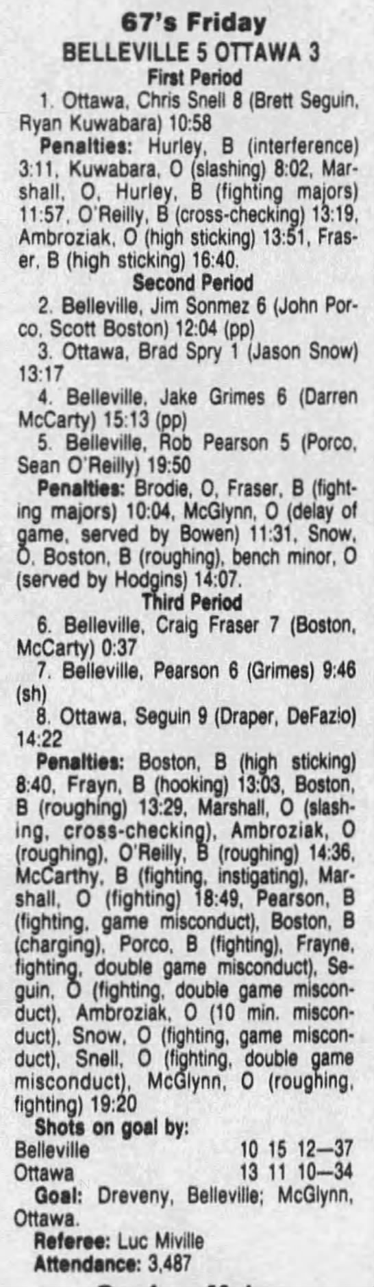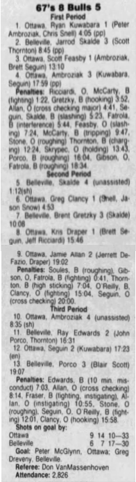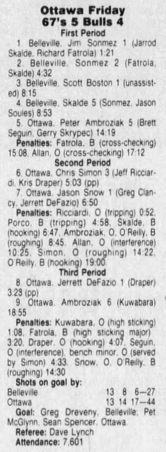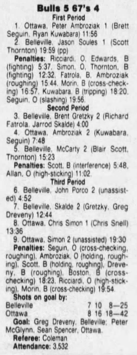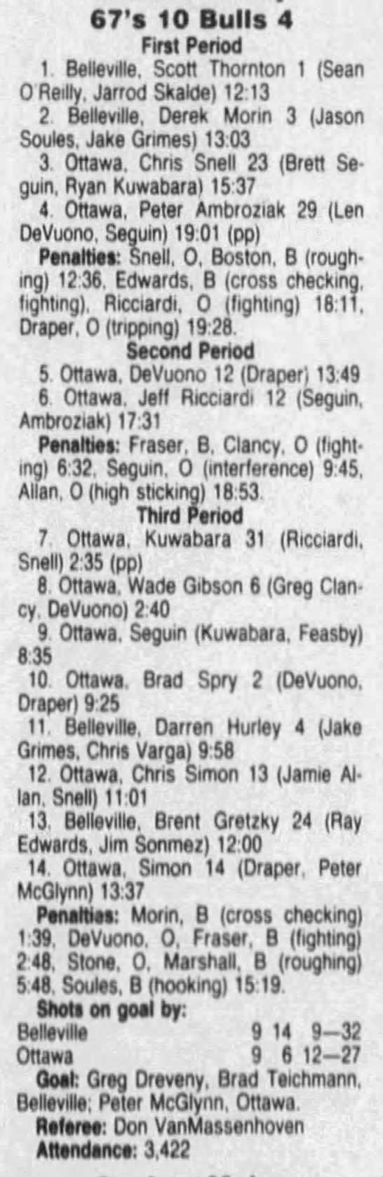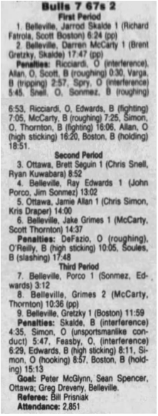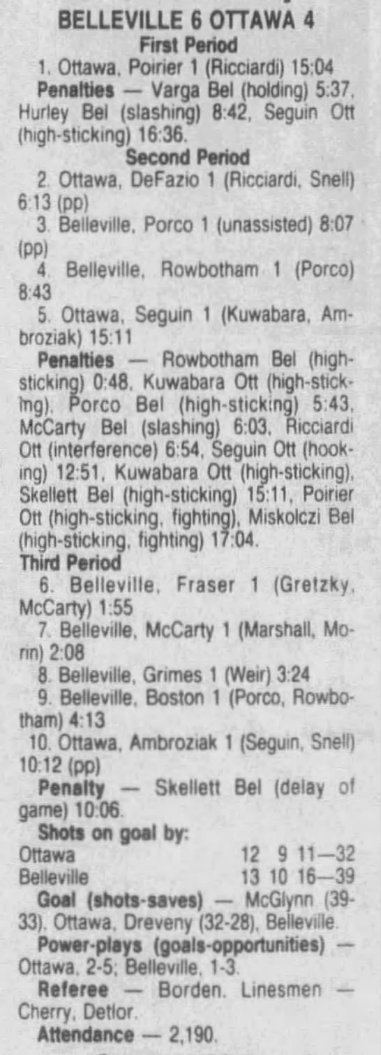 January 1 1991- Ottawa @ Belleville (7-0 Belleville)