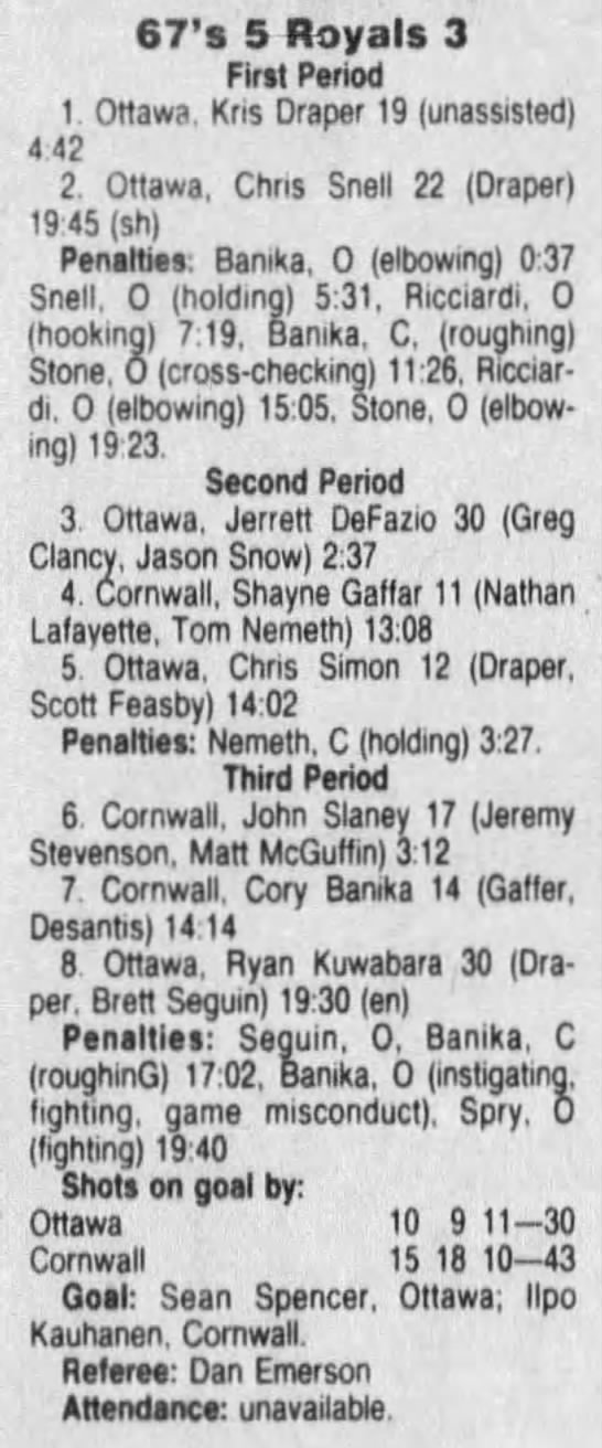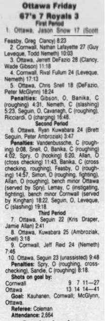 October 4 1990- Ottawa @ Cornwall (4-3 Cornwall)
