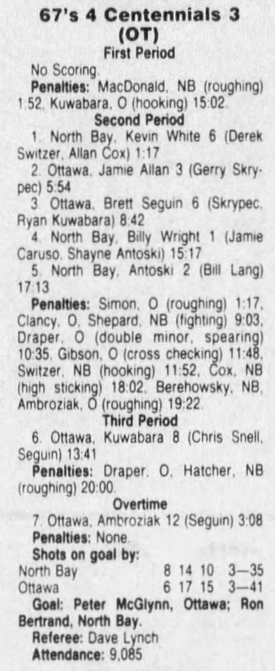 September 30 1990- Ottawa @ North Bay (4-1 Ottawa)